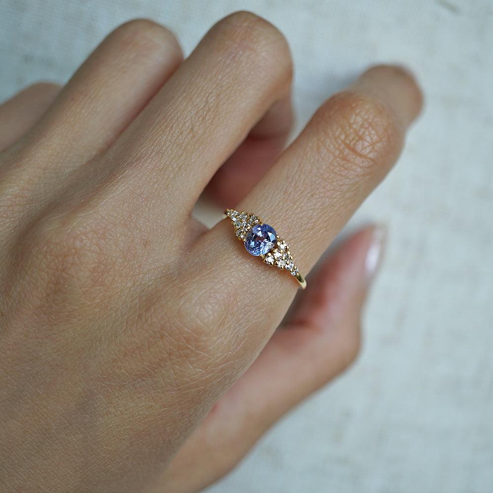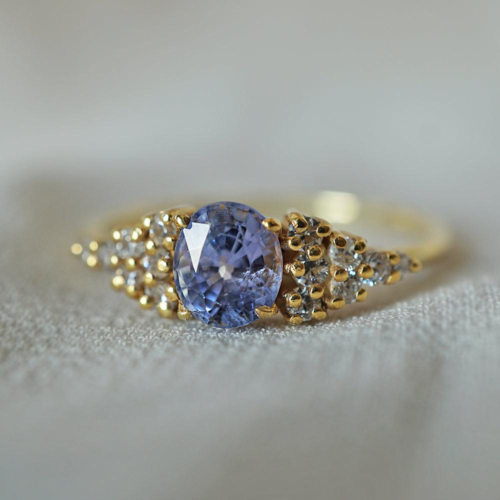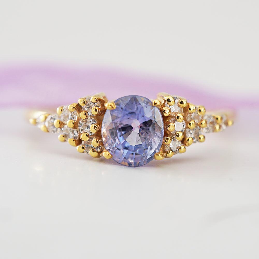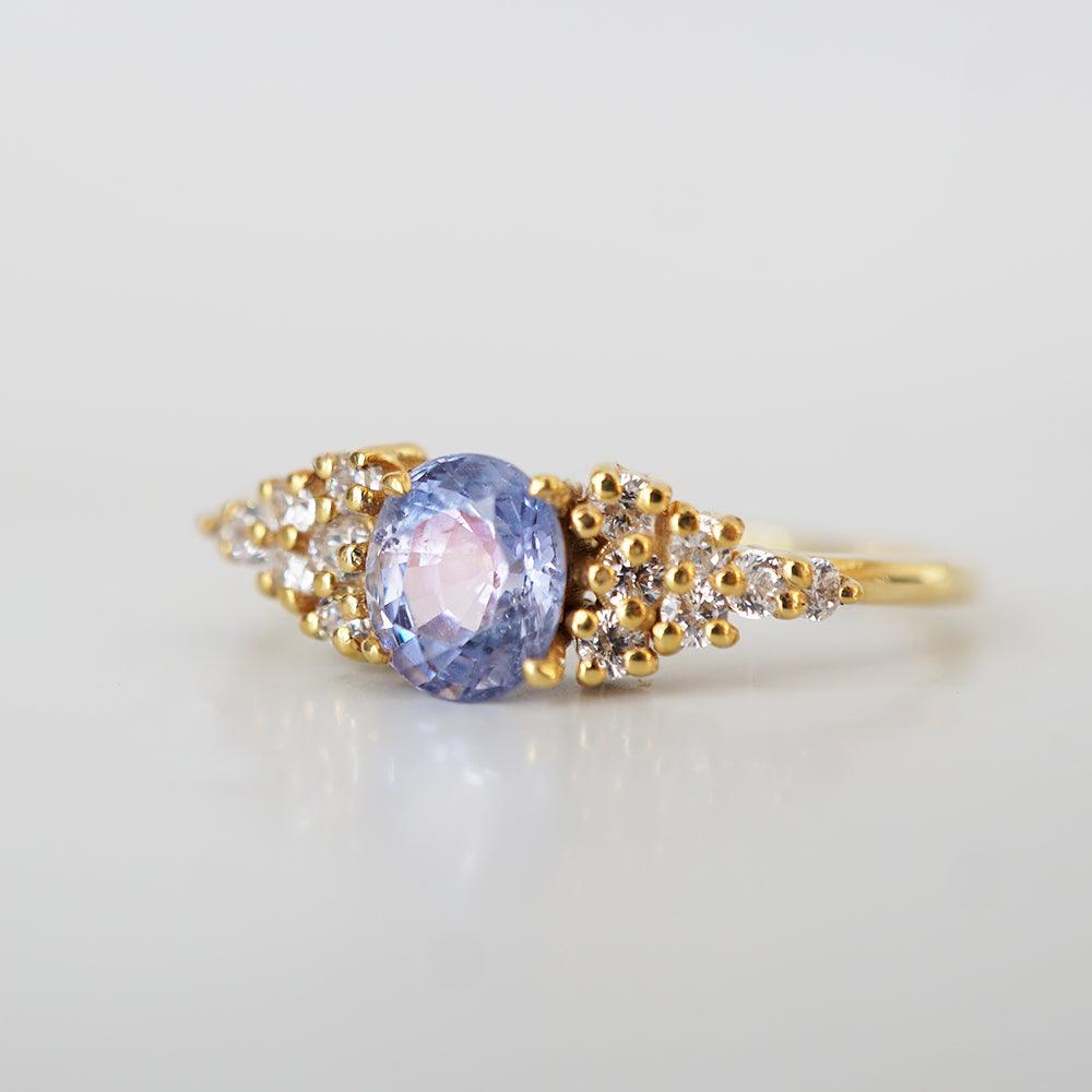 One Of A Kind: Periwinkle Lavender Sapphire Diamond Ring in 14K Gold