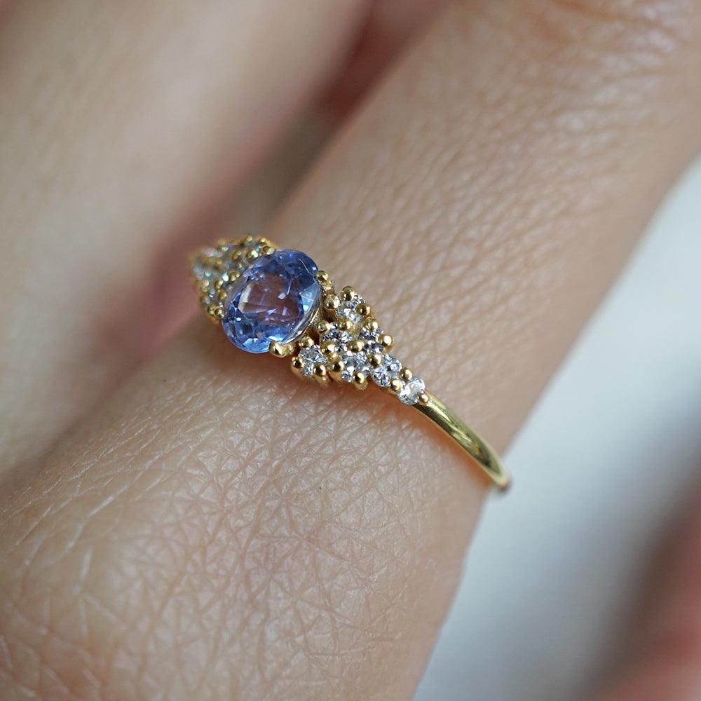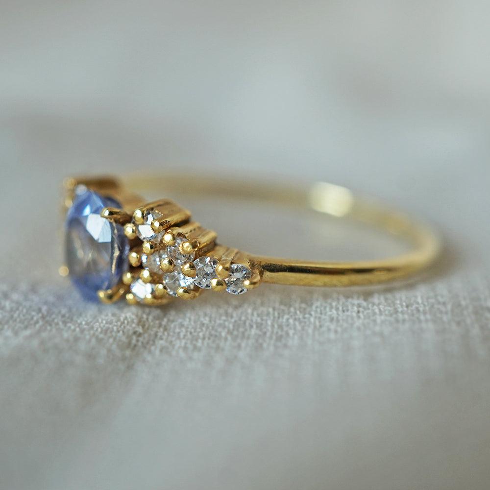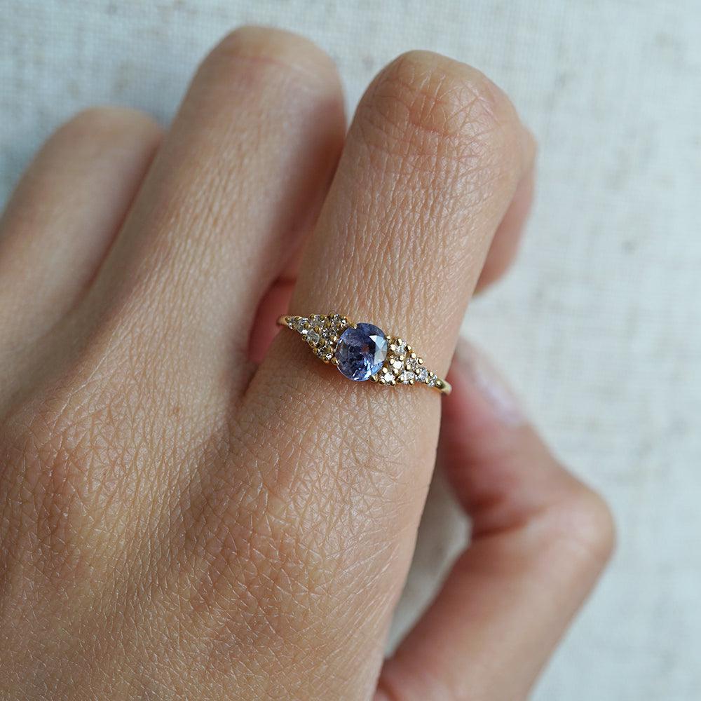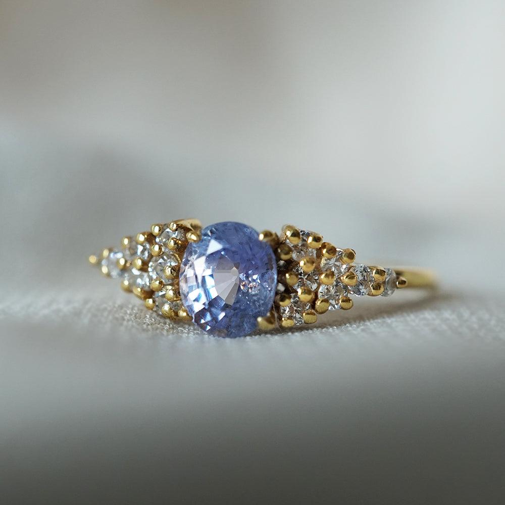 One Of A Kind: Periwinkle Lavender Sapphire Diamond Ring in 14K Gold