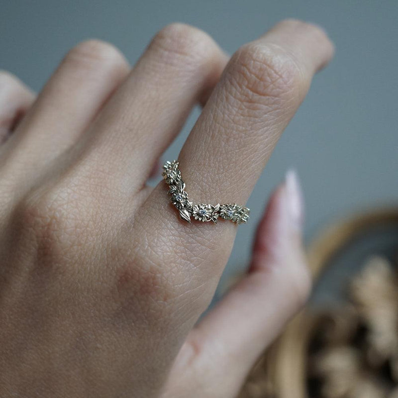 Mahogany Snow Flower Ring Band in 14K and 18K Gold