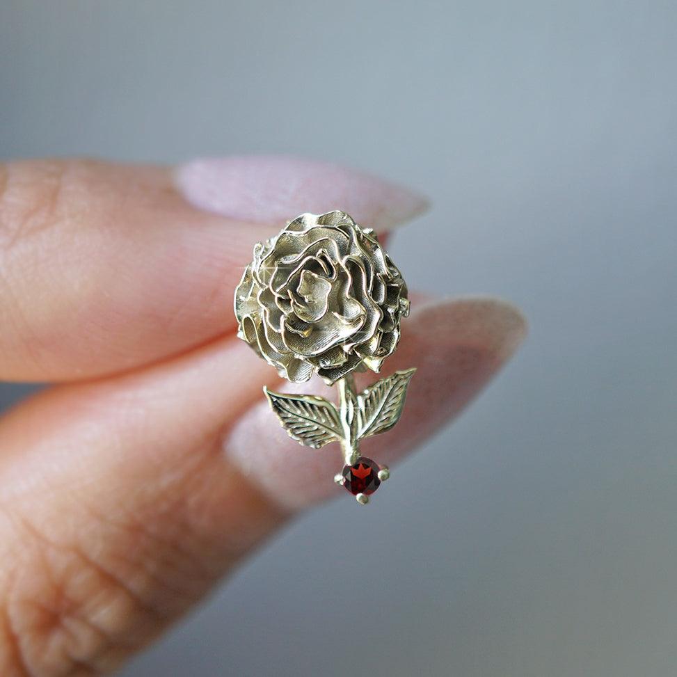 For January, the Carnation represents admiration and affection, while the Garnet — its birthstone — glows with deep warmth and strength. Together, they create a timeless expression of devotion and resilience.