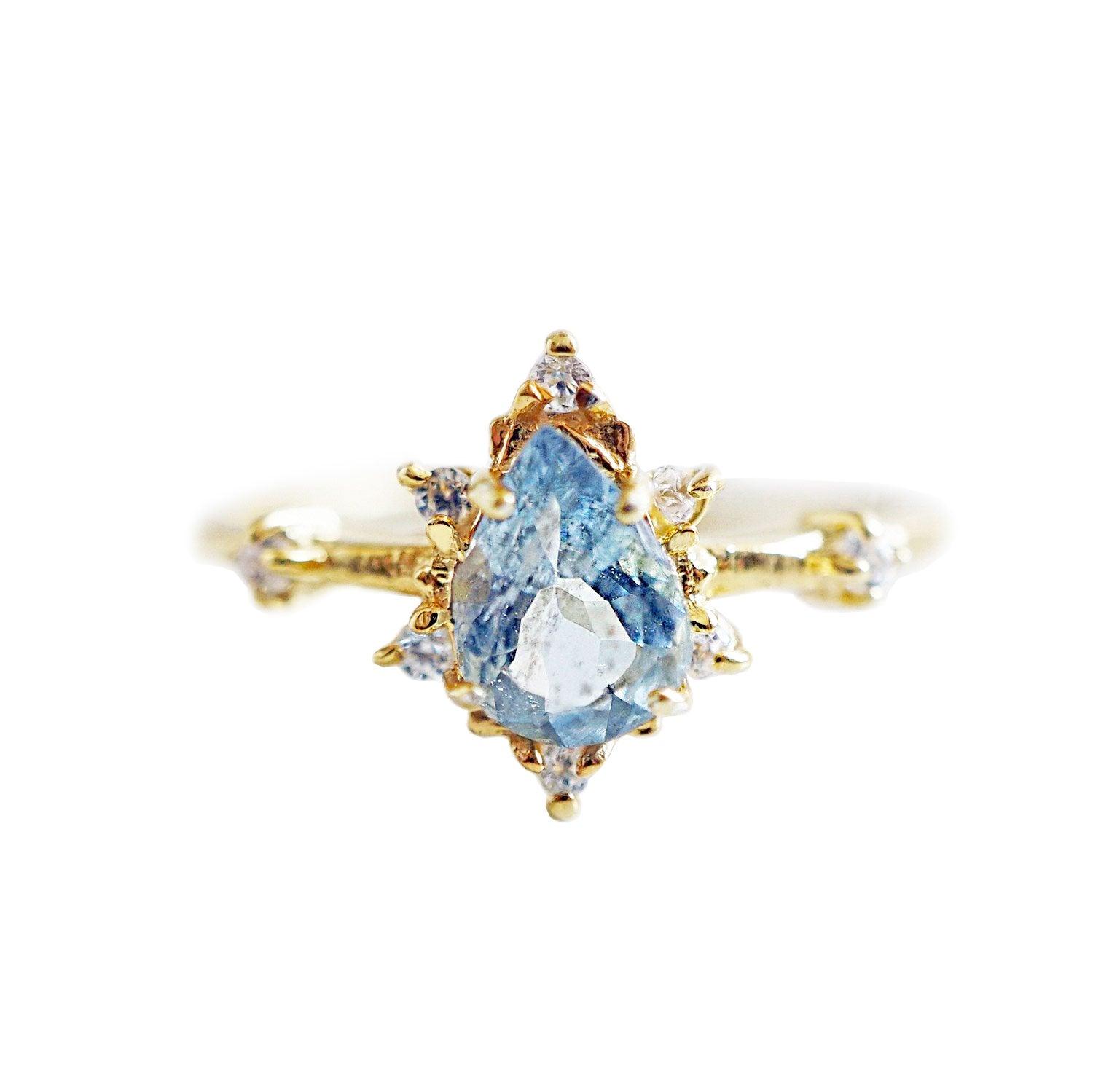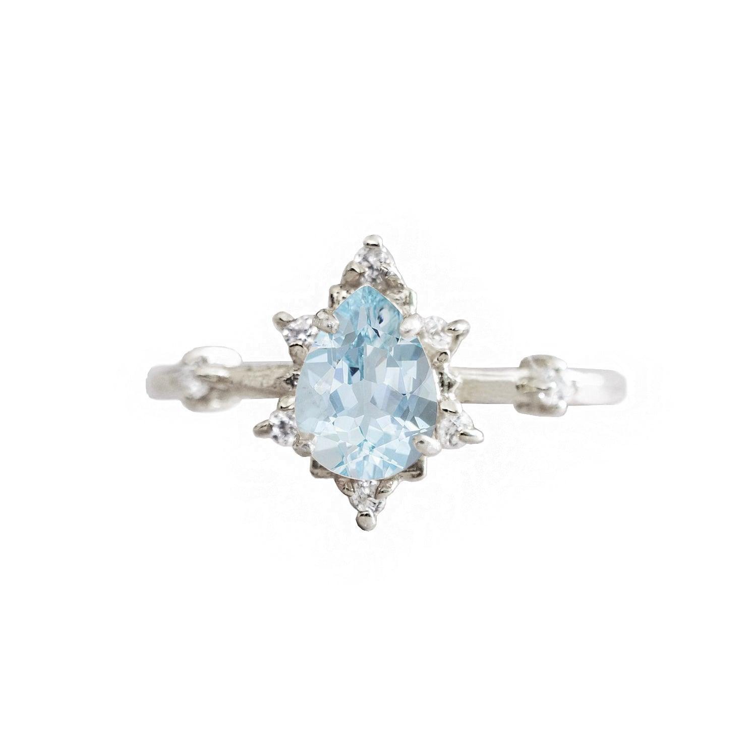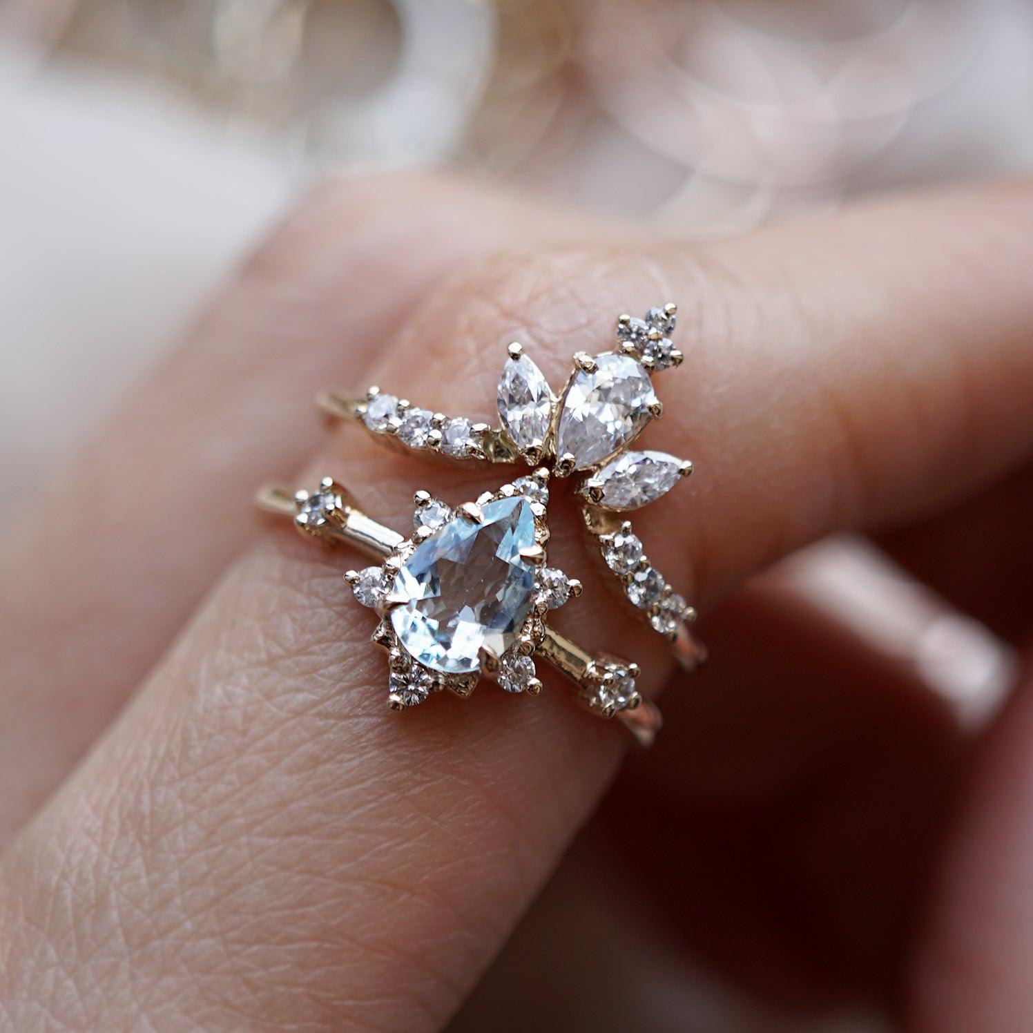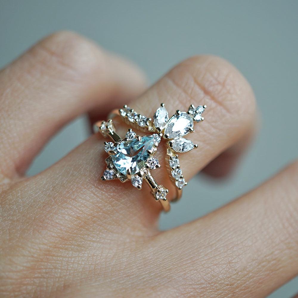 The Aquamarine Crush Ring with Venice Pear Marquise Band is a vision of serenity and grace — a ring set made for a modern-day princess. At its heart glows a luminous natural aquamarine, paired with the Venice Pear Marquise band adorned with sparkling white stones that dance with light.