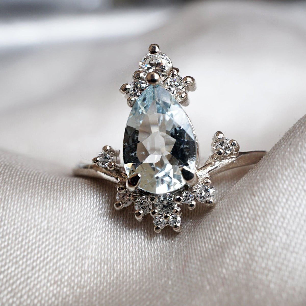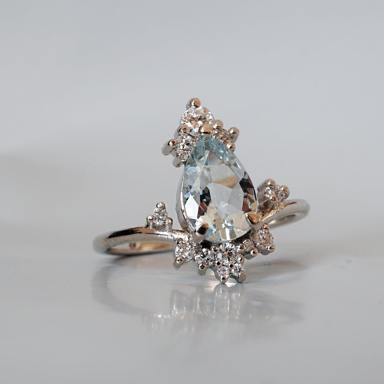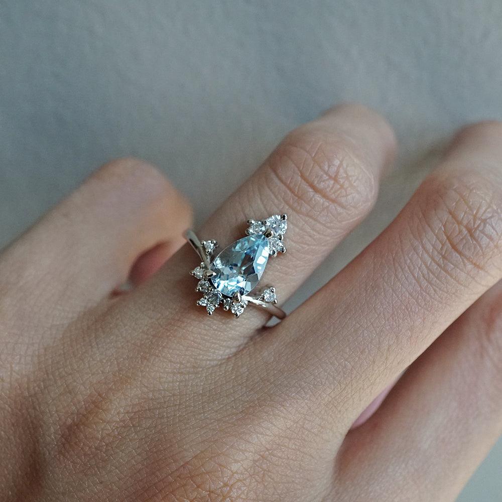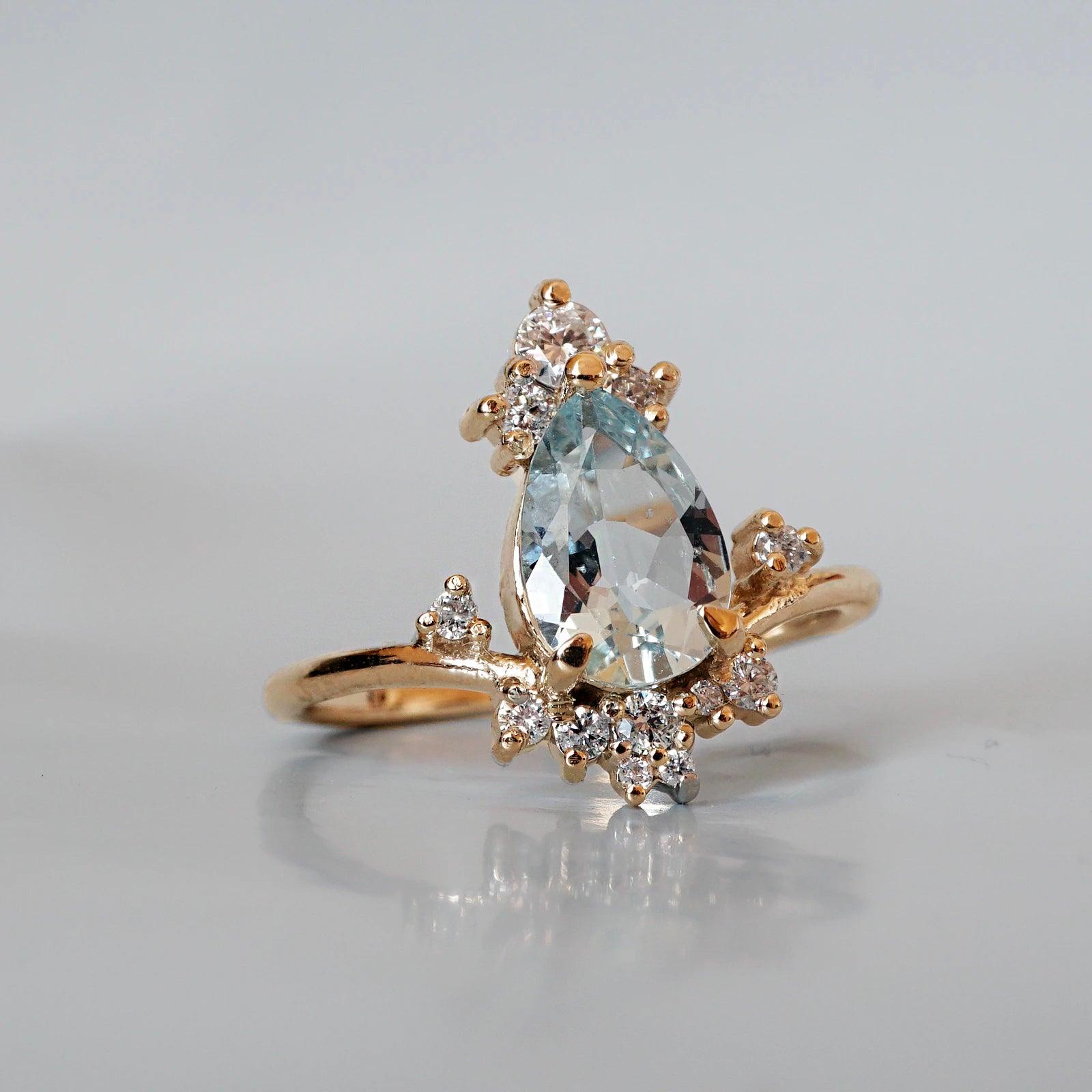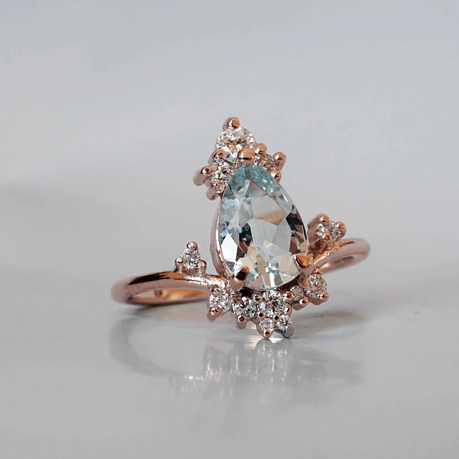Freya Aquamarine Diamond Ring in 14K and 18K Gold