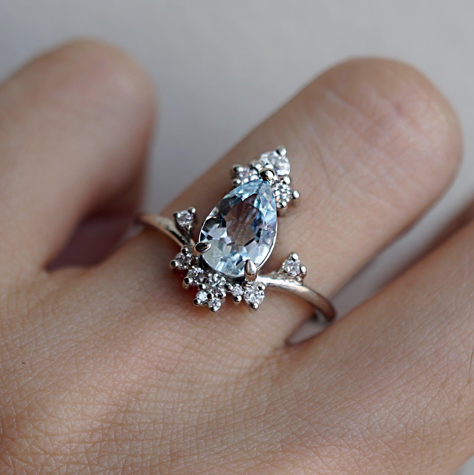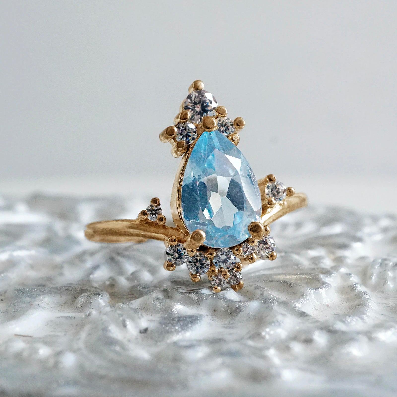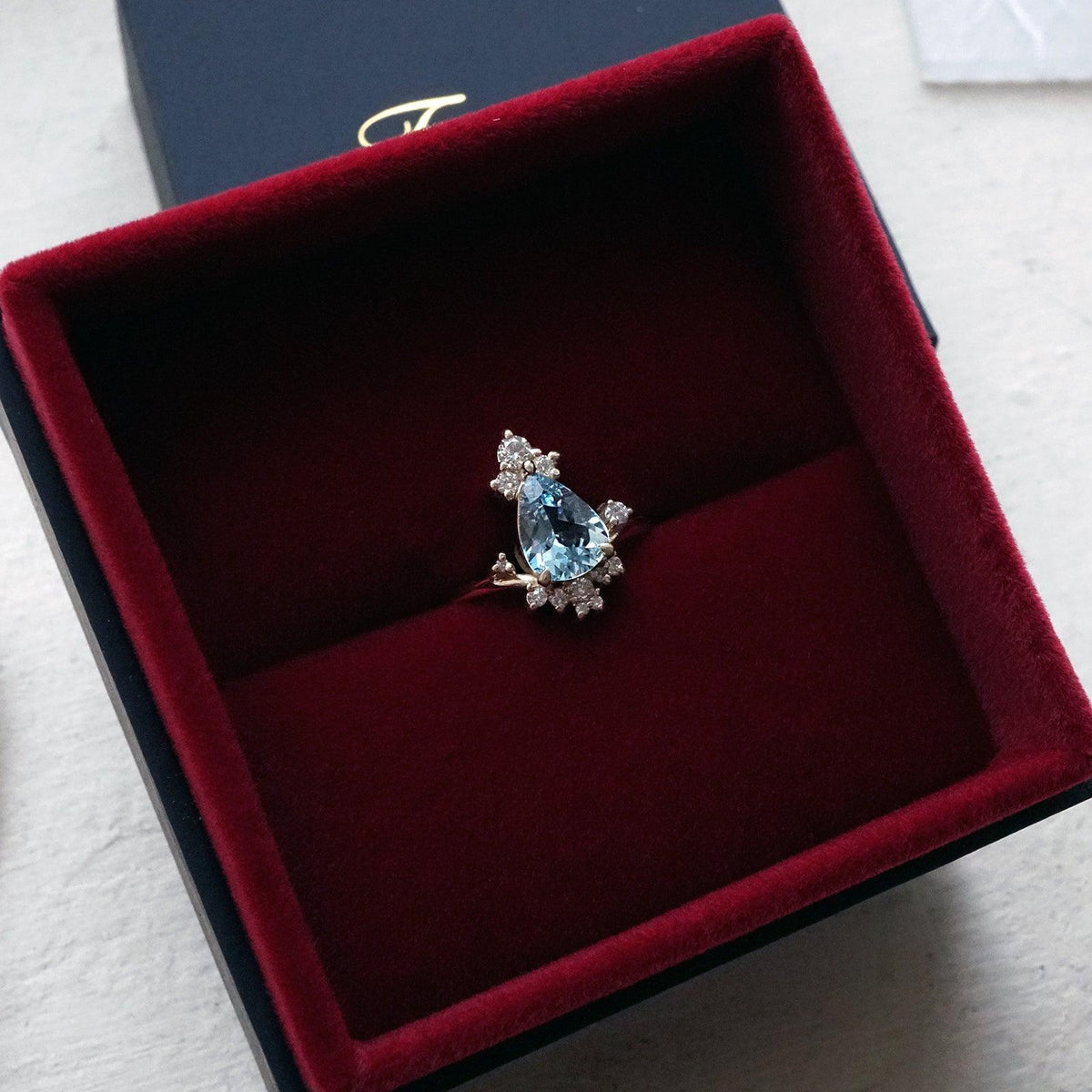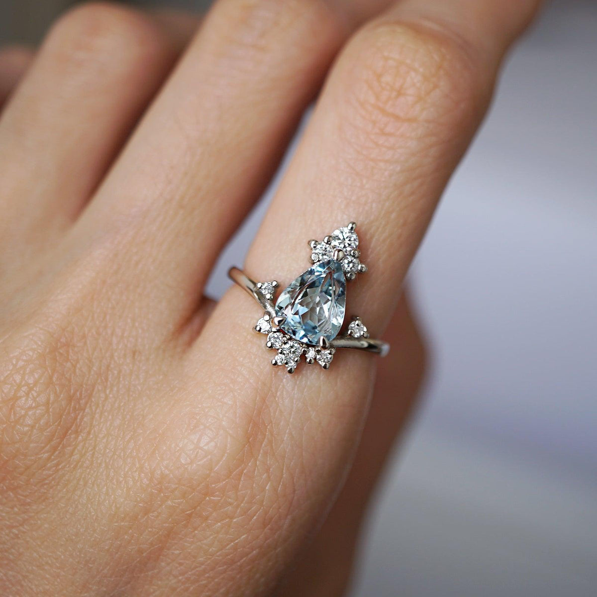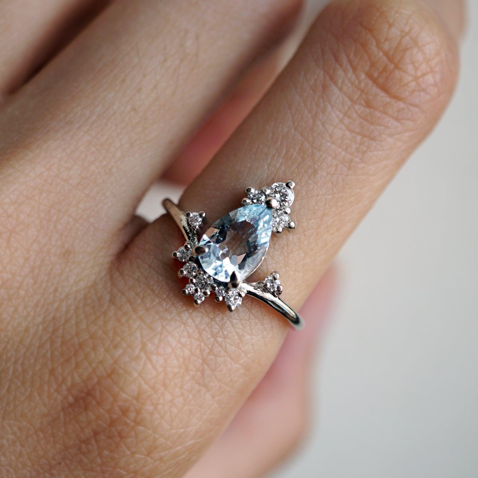 Freya Aquamarine Diamond Ring in 14K and 18K Gold