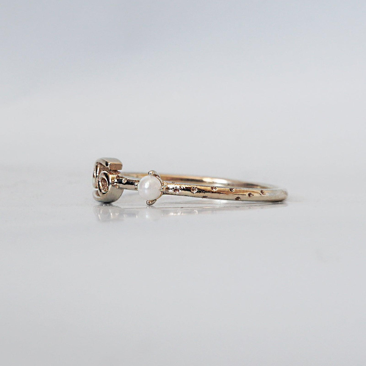 14K Cancer Horoscope Birthstone Ring (Pearl + Ruby)