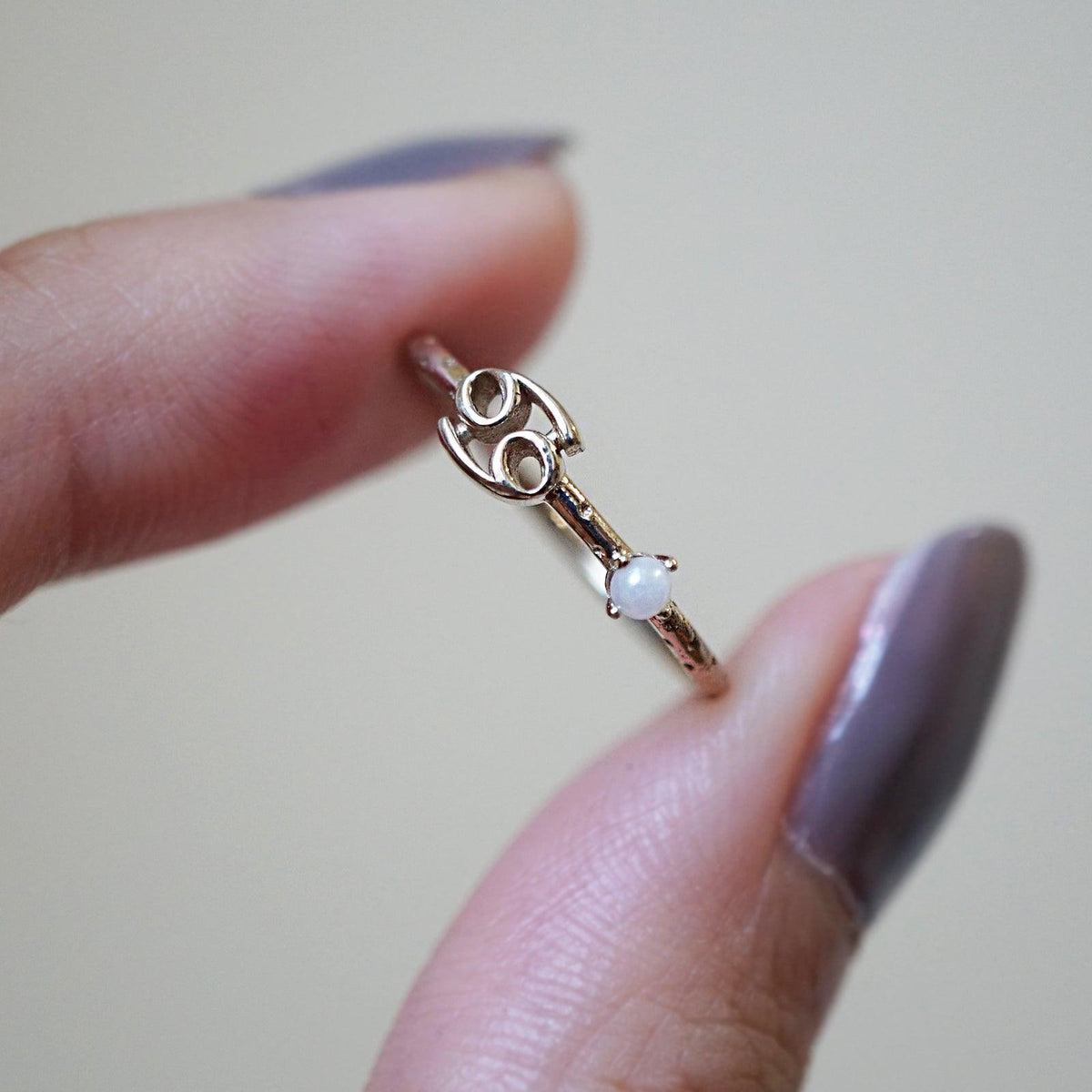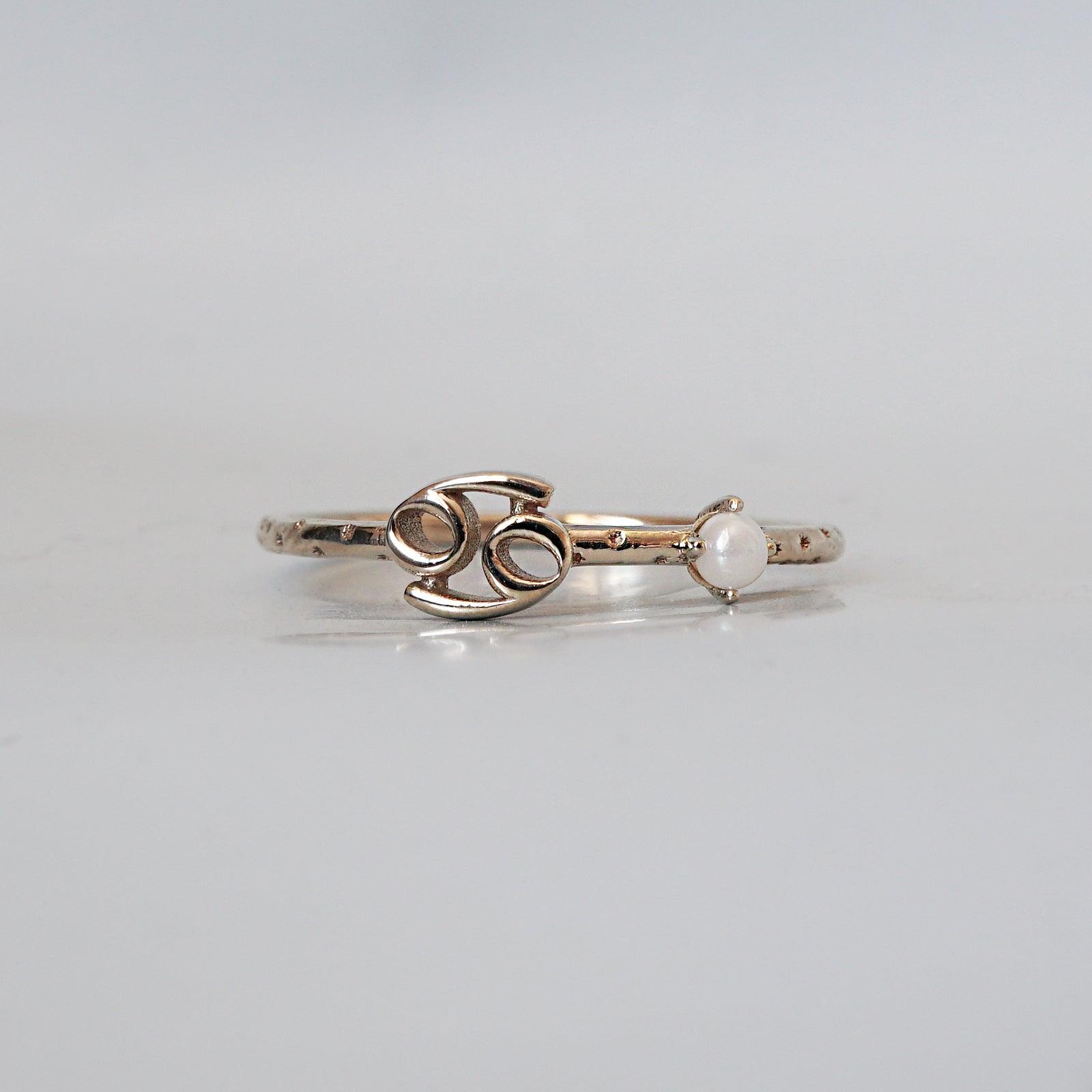 As the sign ruled by the moon, Cancer is also symbolically connected to pearls, representing purity, intuition, and emotional depth. Handcrafted with care, this ring is a delicate reflection of your inner world — radiant, nurturing, and timeless.