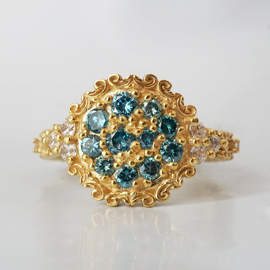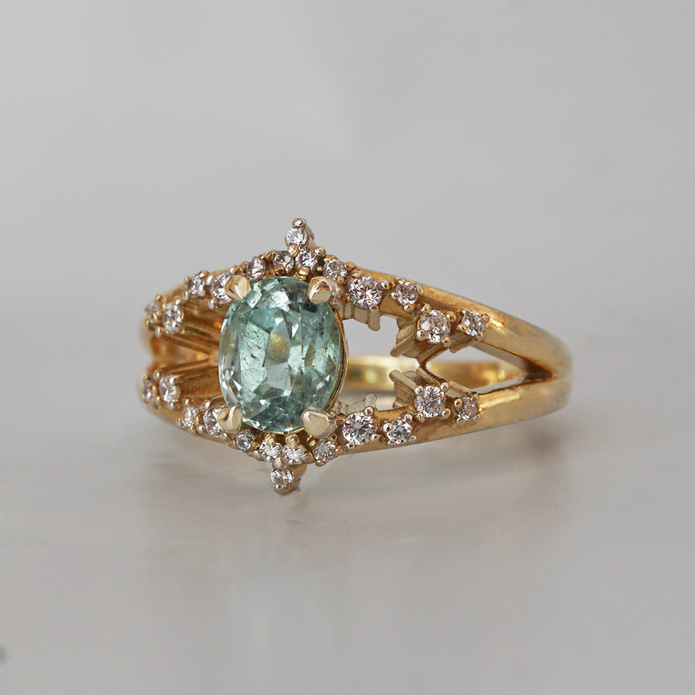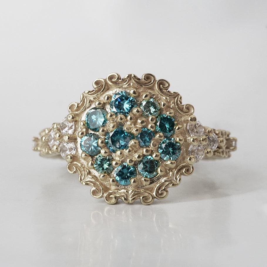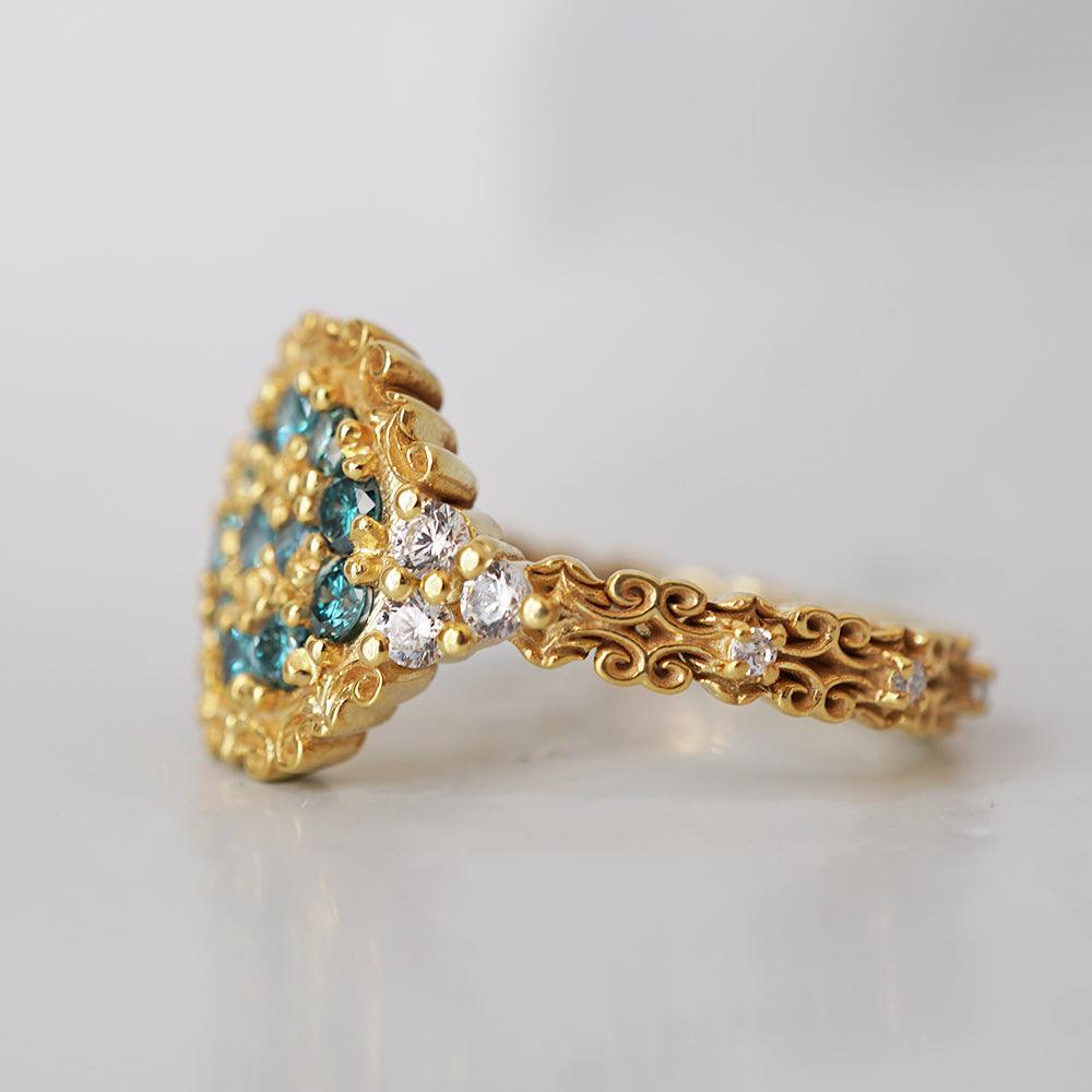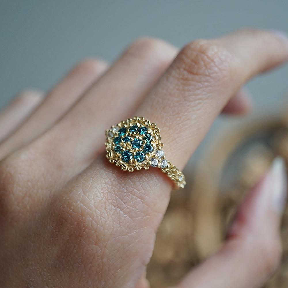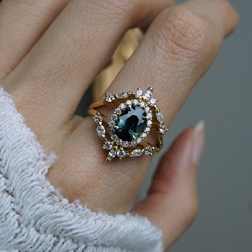 Limited Edition: Teal Sapphire Celestielle Diamond Ring in 14K and 18K Gold