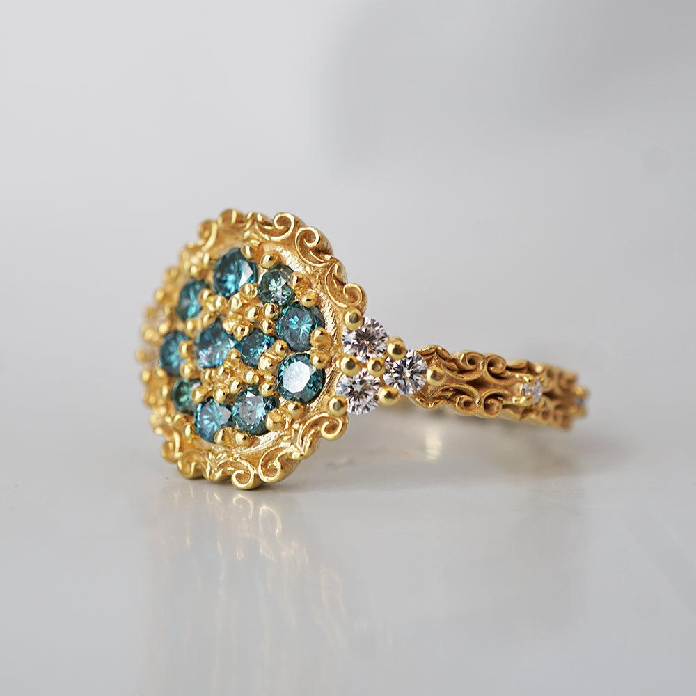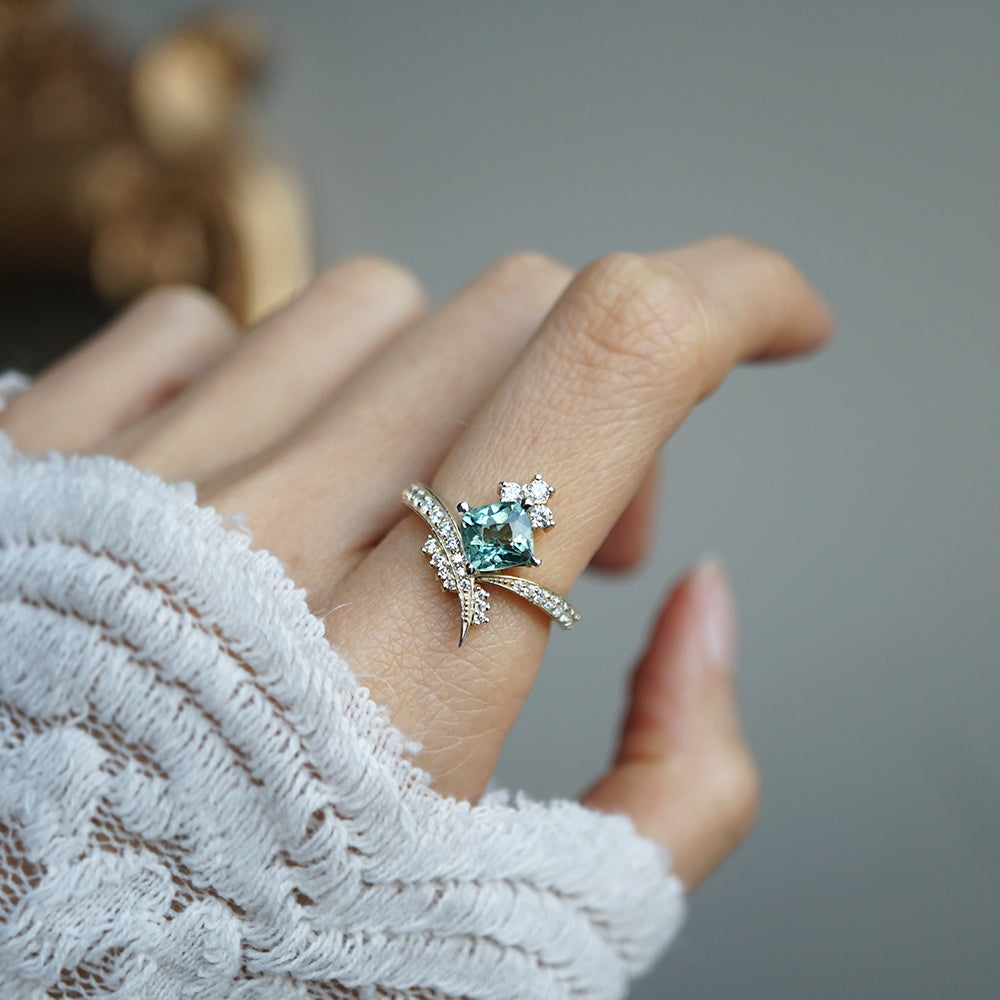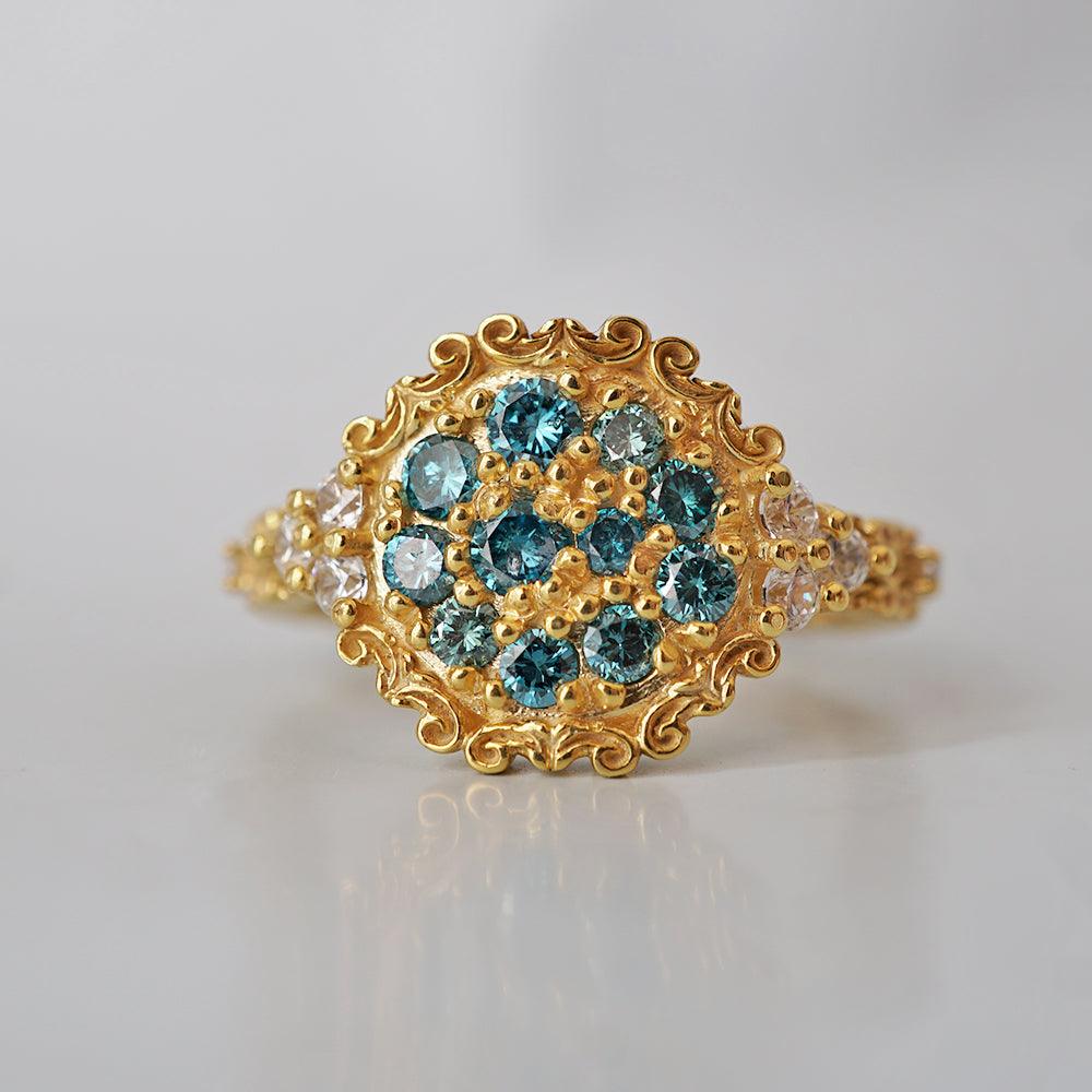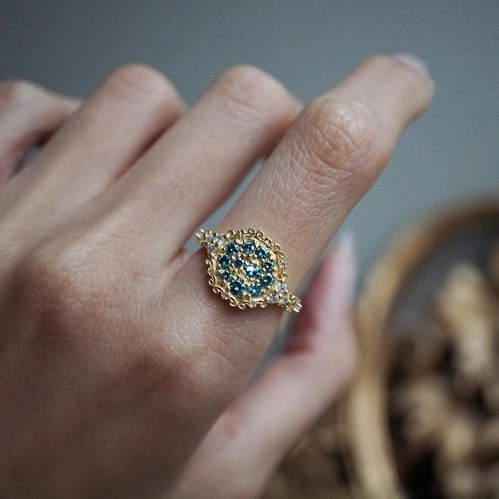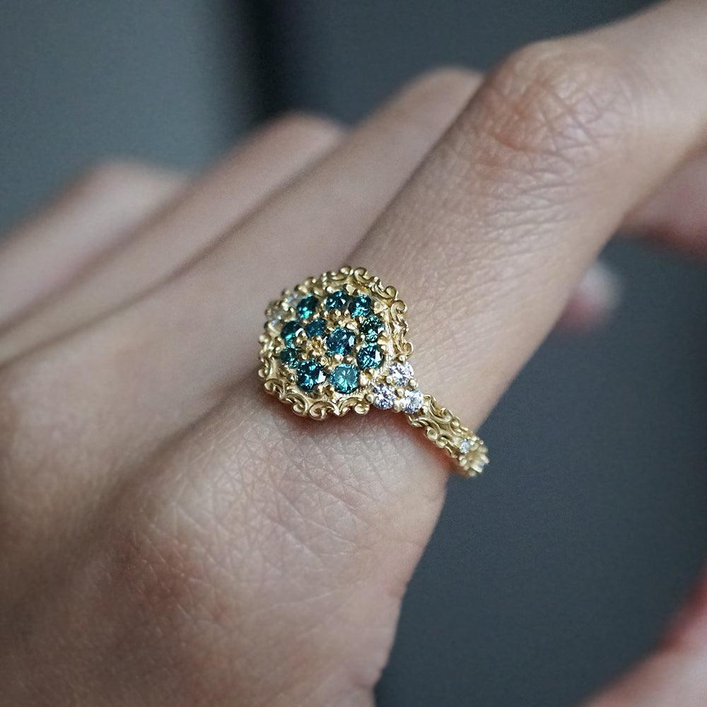 Limited Edition: Teal Sapphire Celestielle Diamond Ring in 14K and 18K Gold