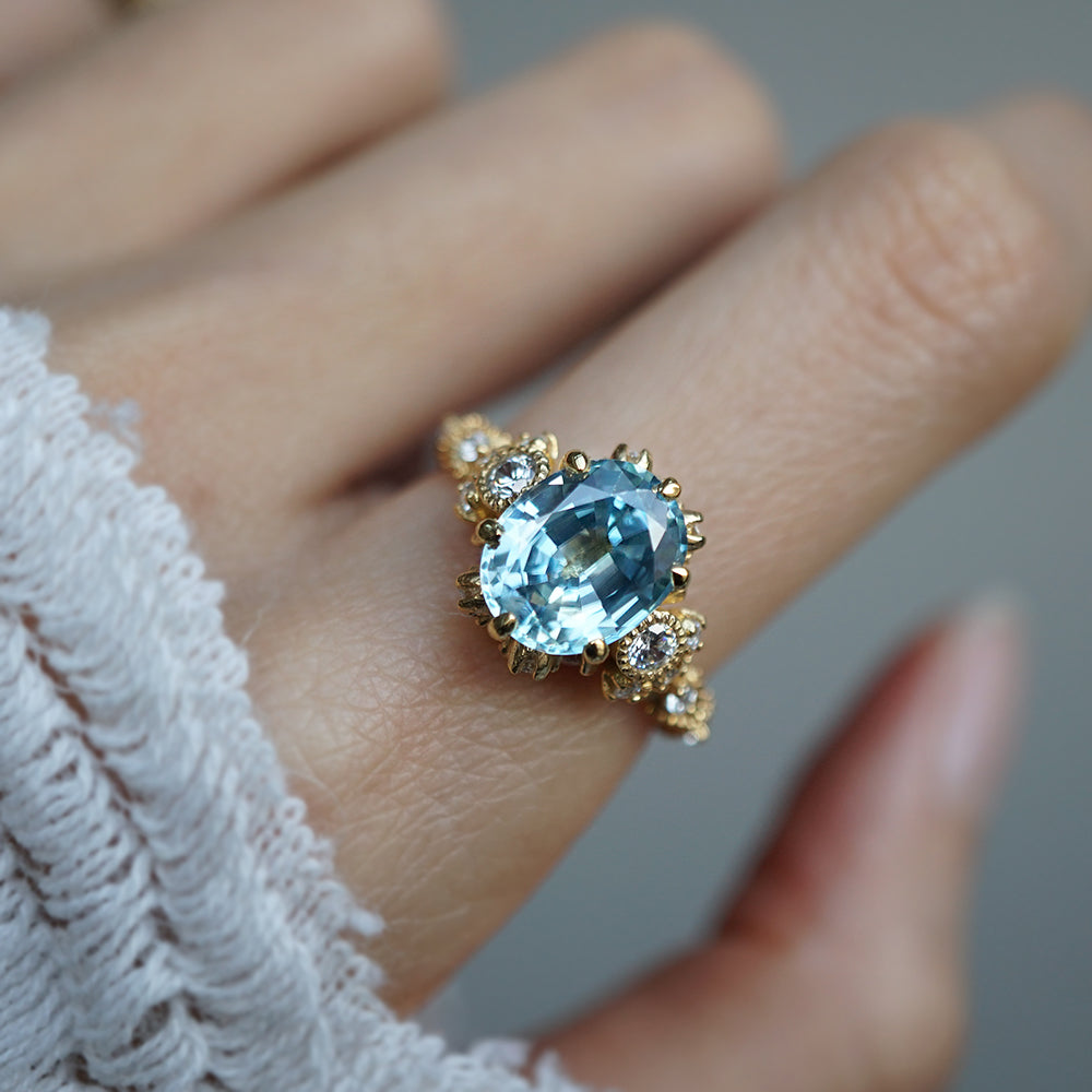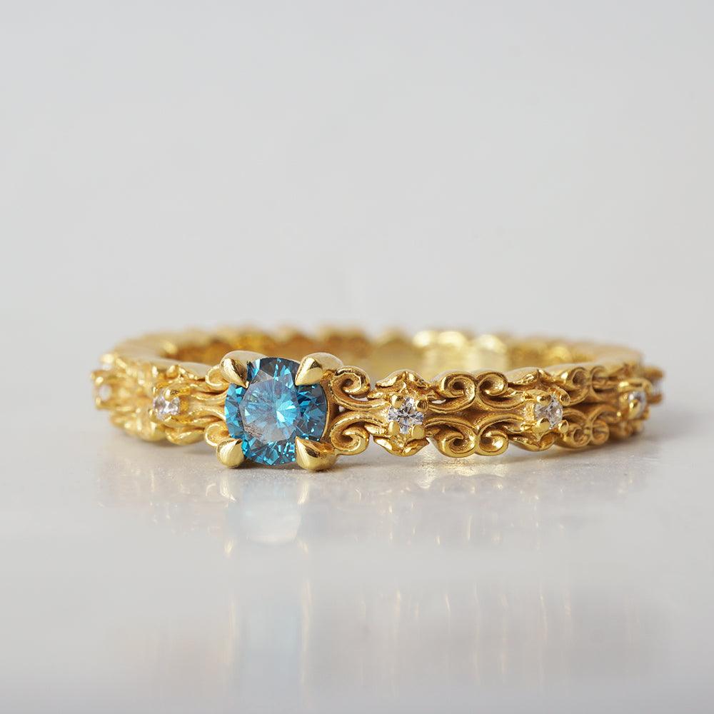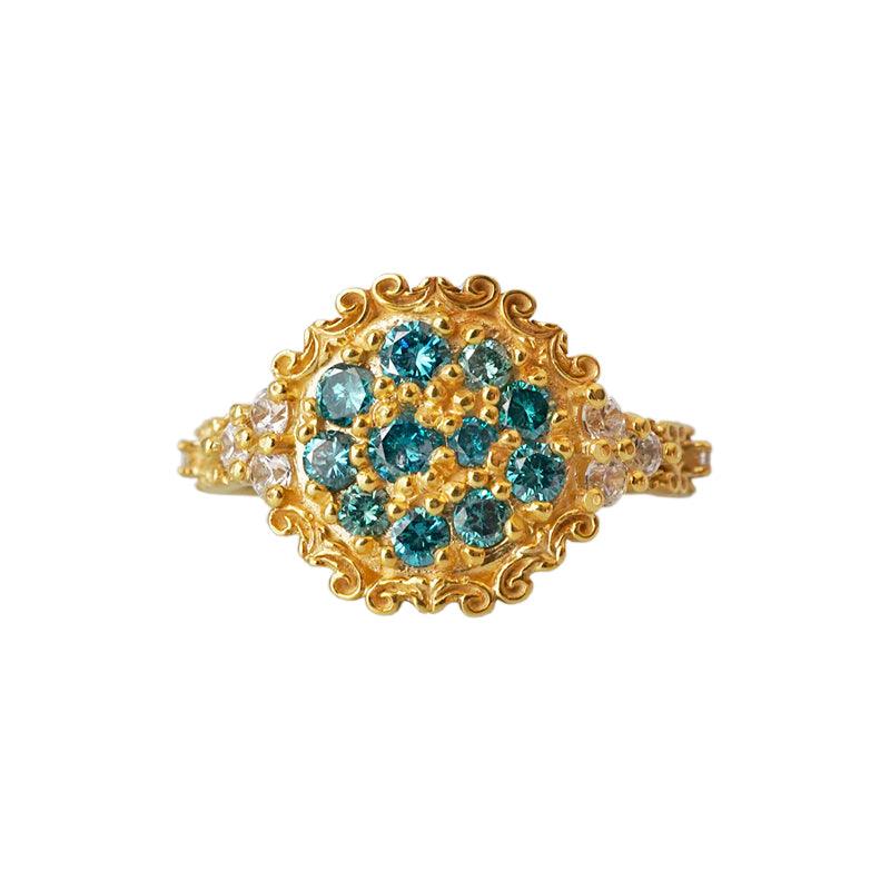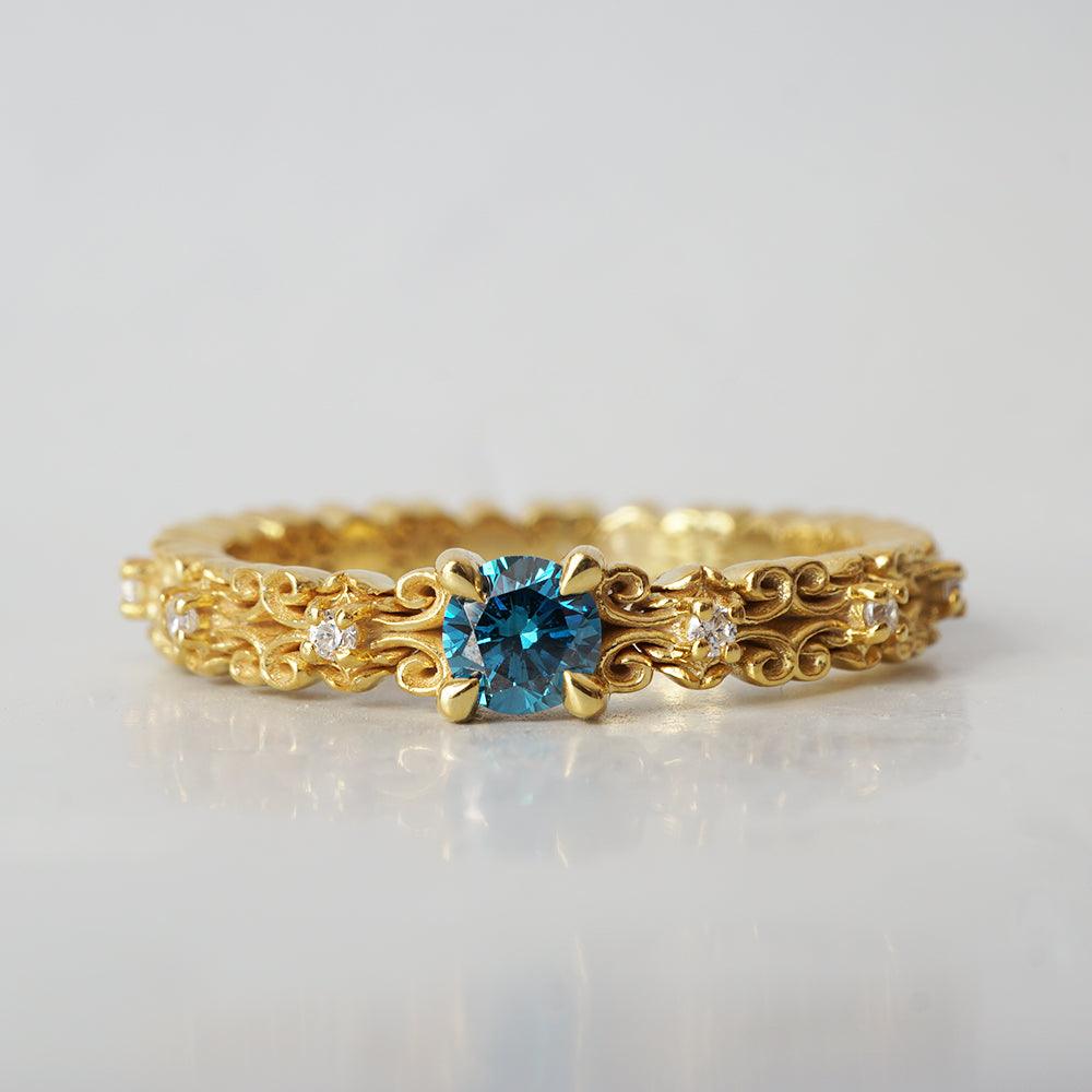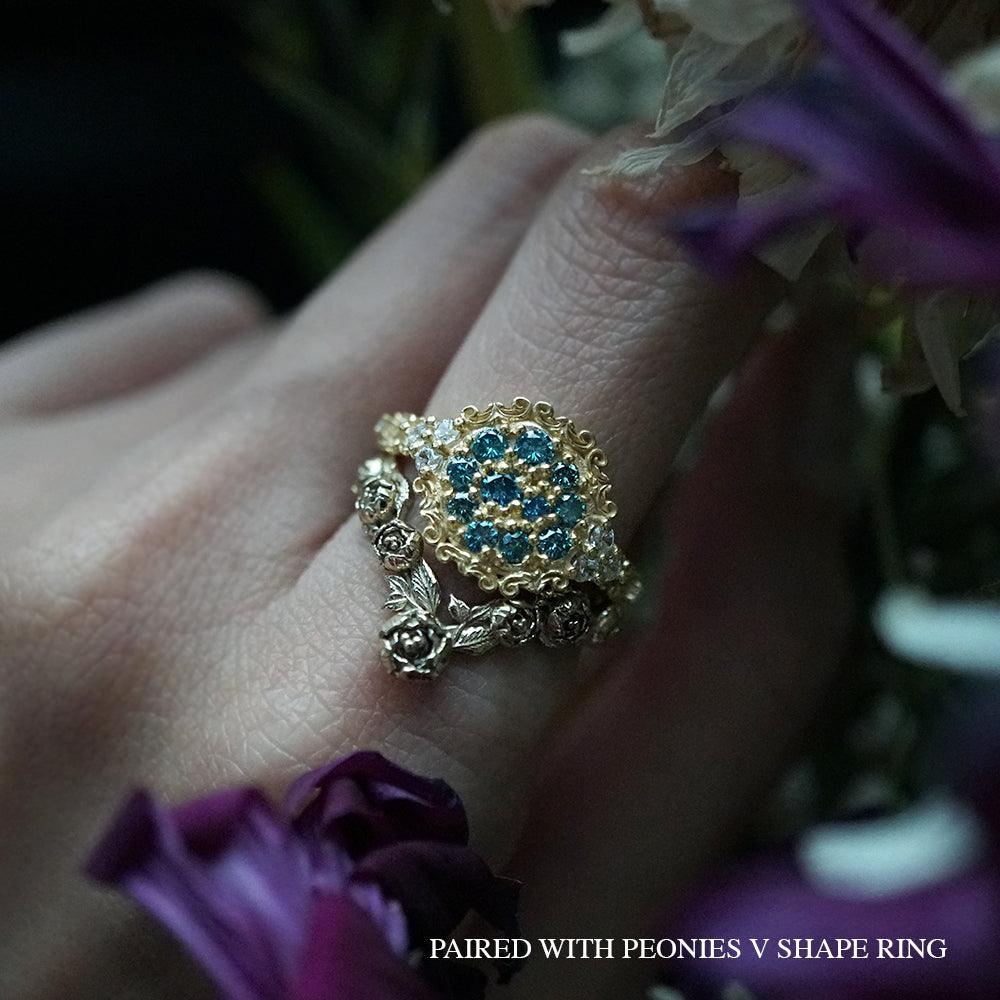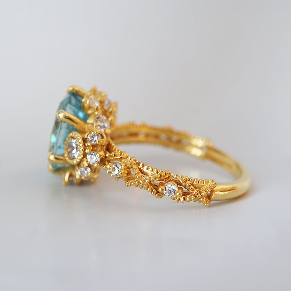 Limited Edition: Teal Sapphire Celestielle Diamond Ring in 14K and 18K Gold