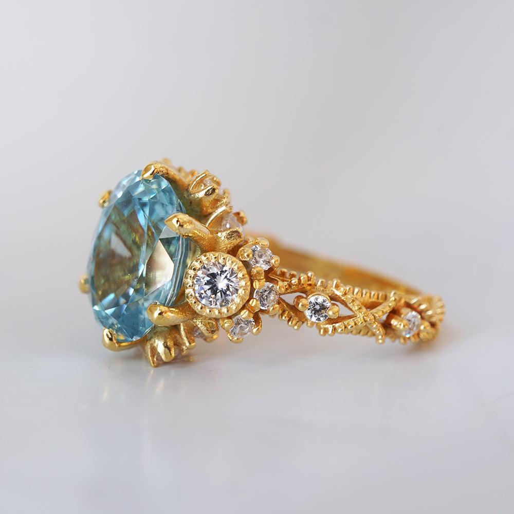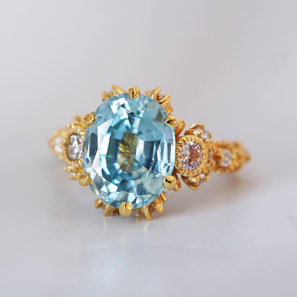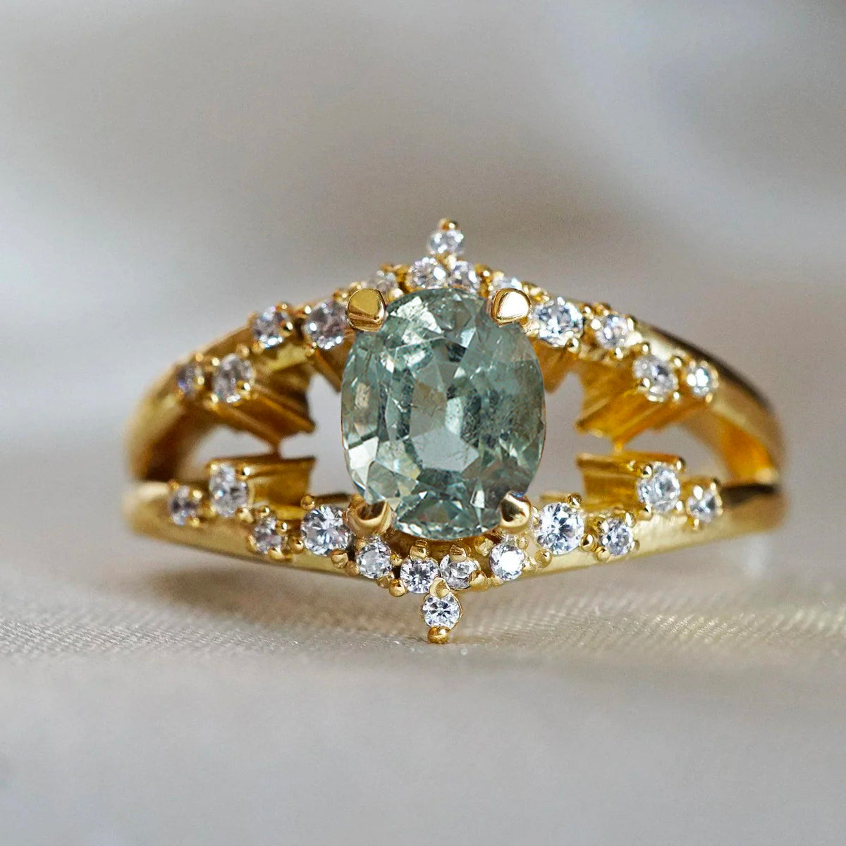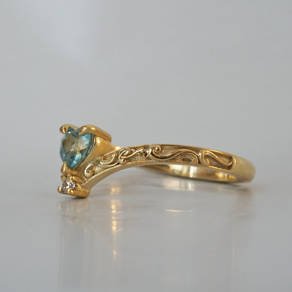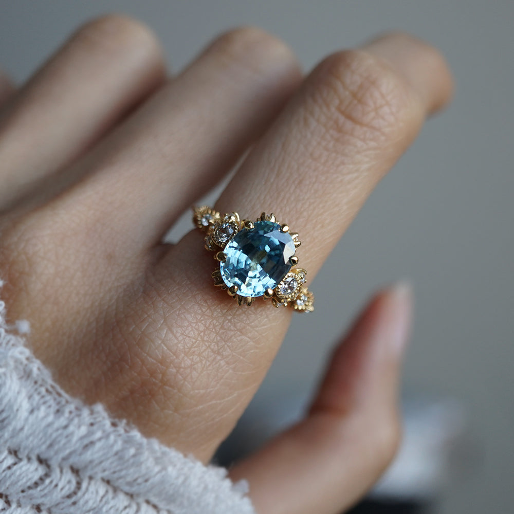 Limited Edition: Teal Sapphire Celestielle Diamond Ring in 14K and 18K Gold