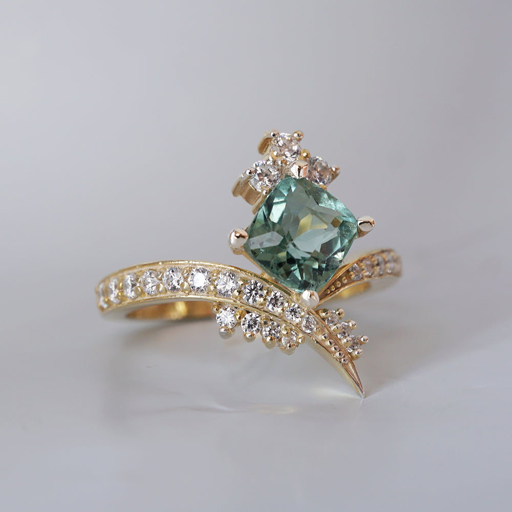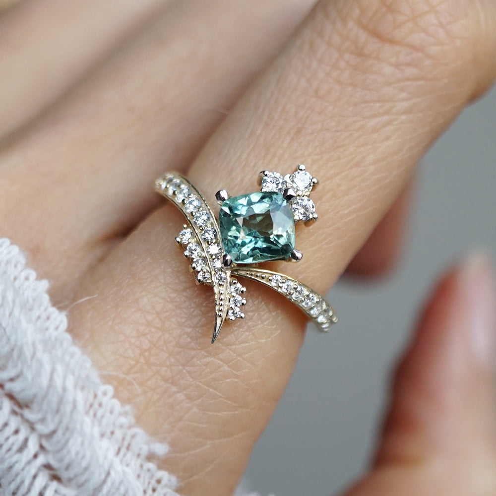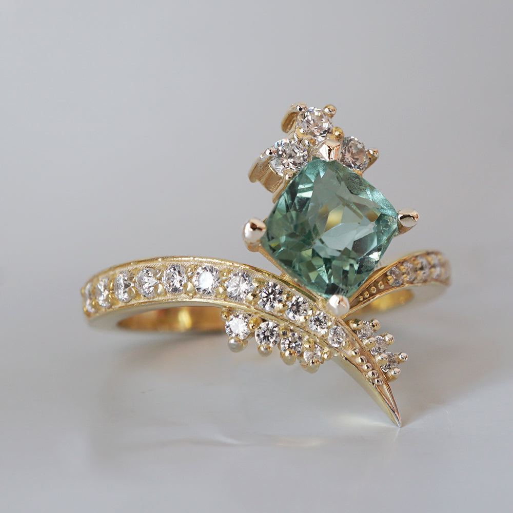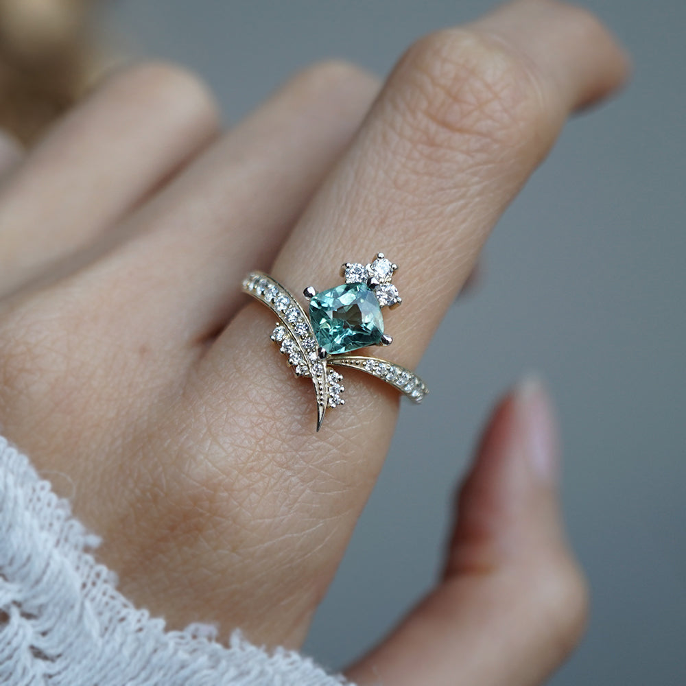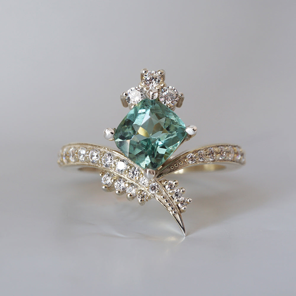 One Of A Kind: Teal Tourmaline Dusktide Diamond Ring in 14K and 18K Gold -