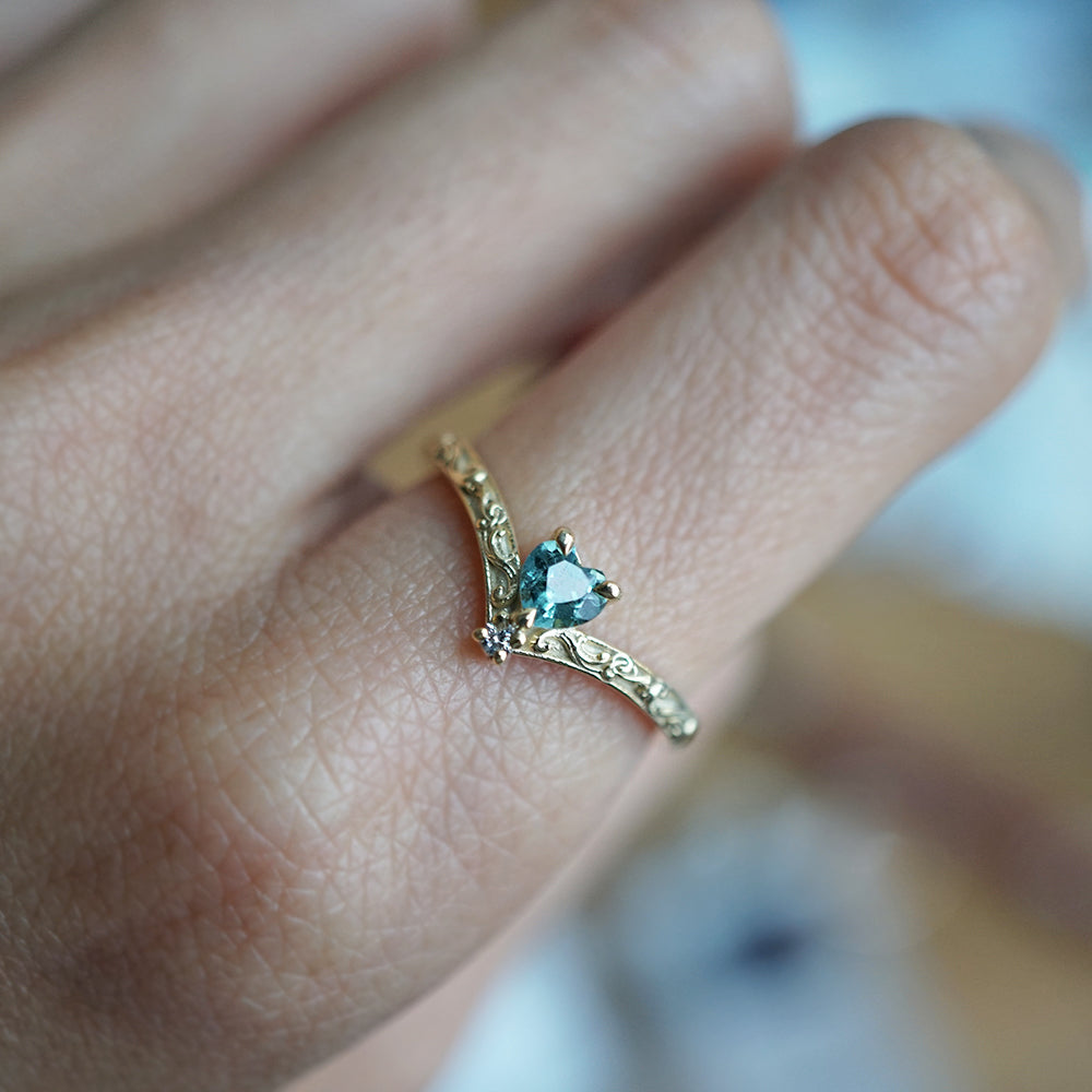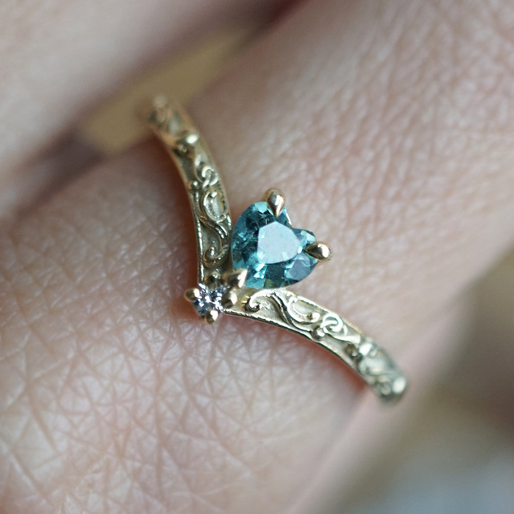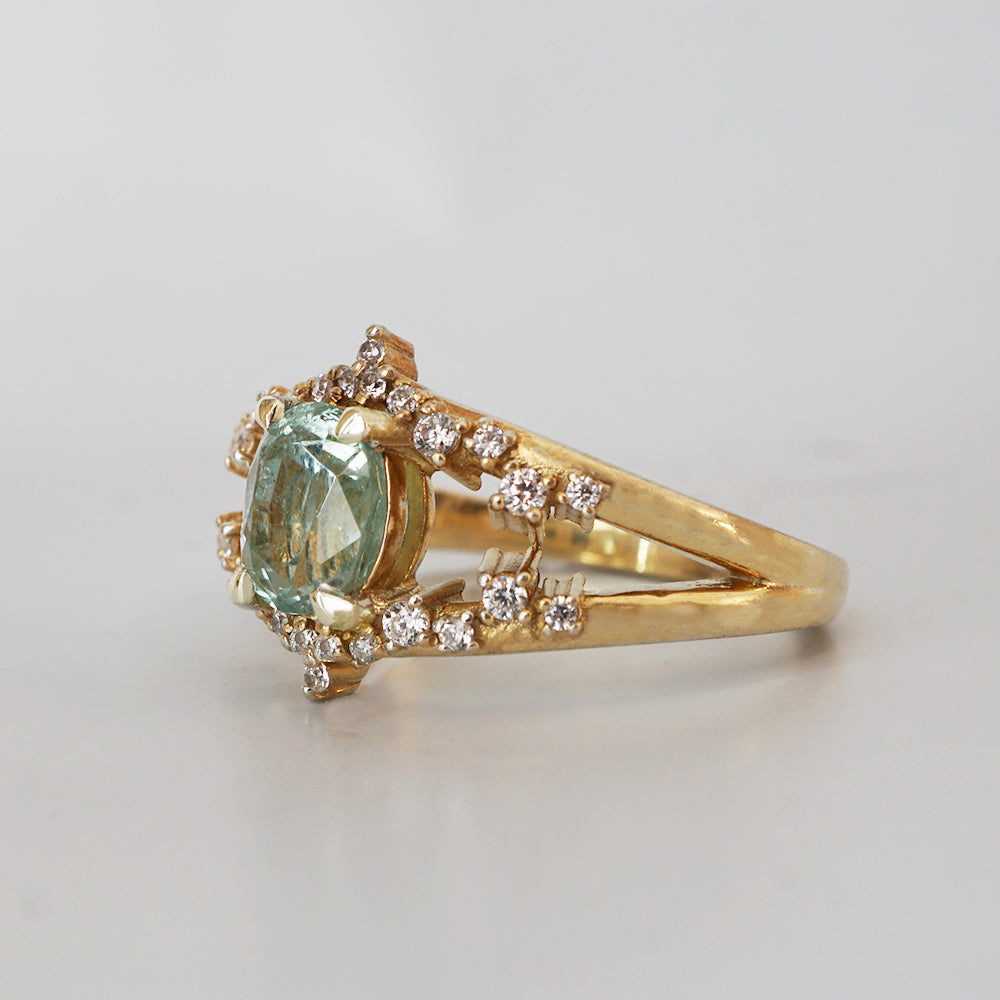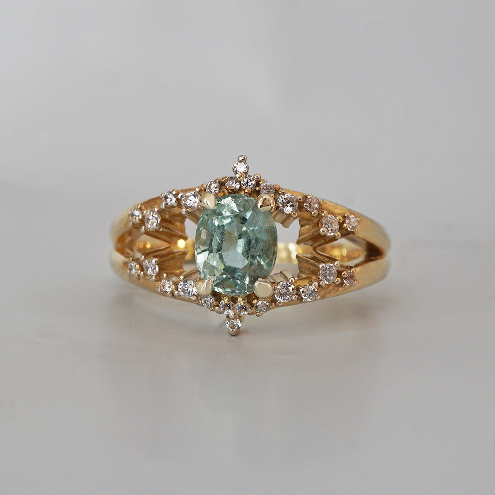 One Of A Kind: Teal Tourmaline Dusktide Diamond Ring in 14K and 18K Gold -