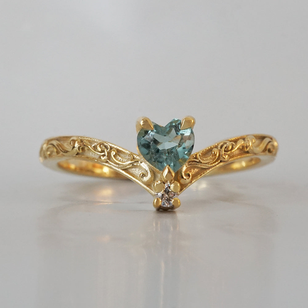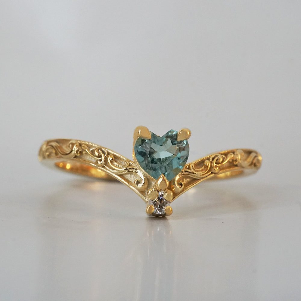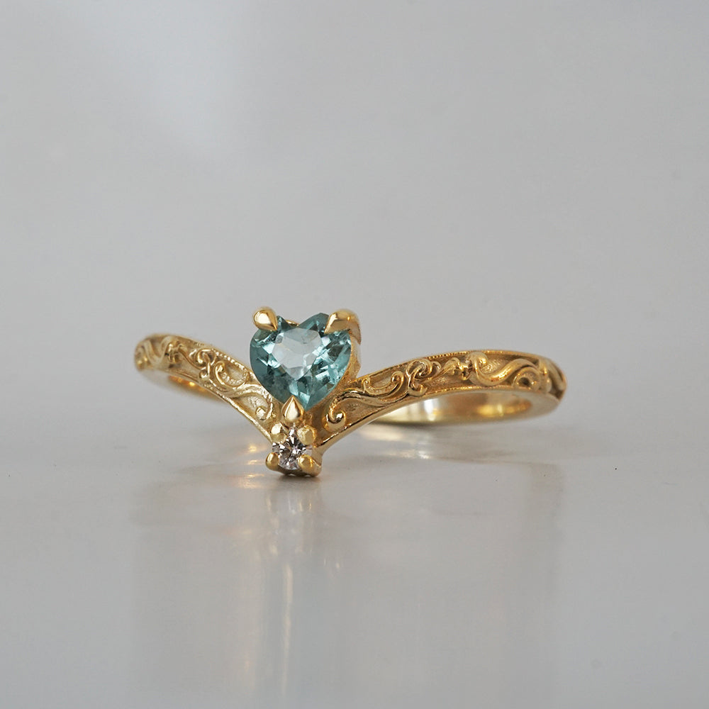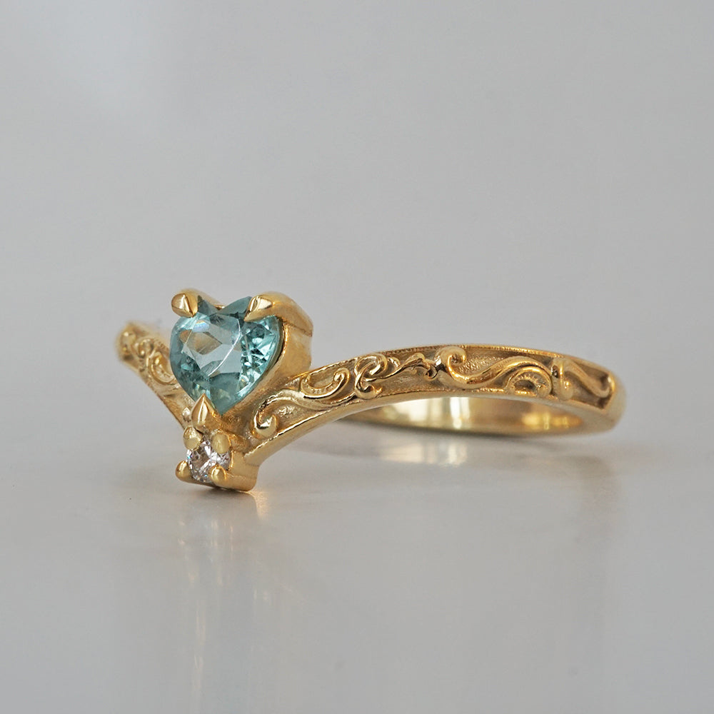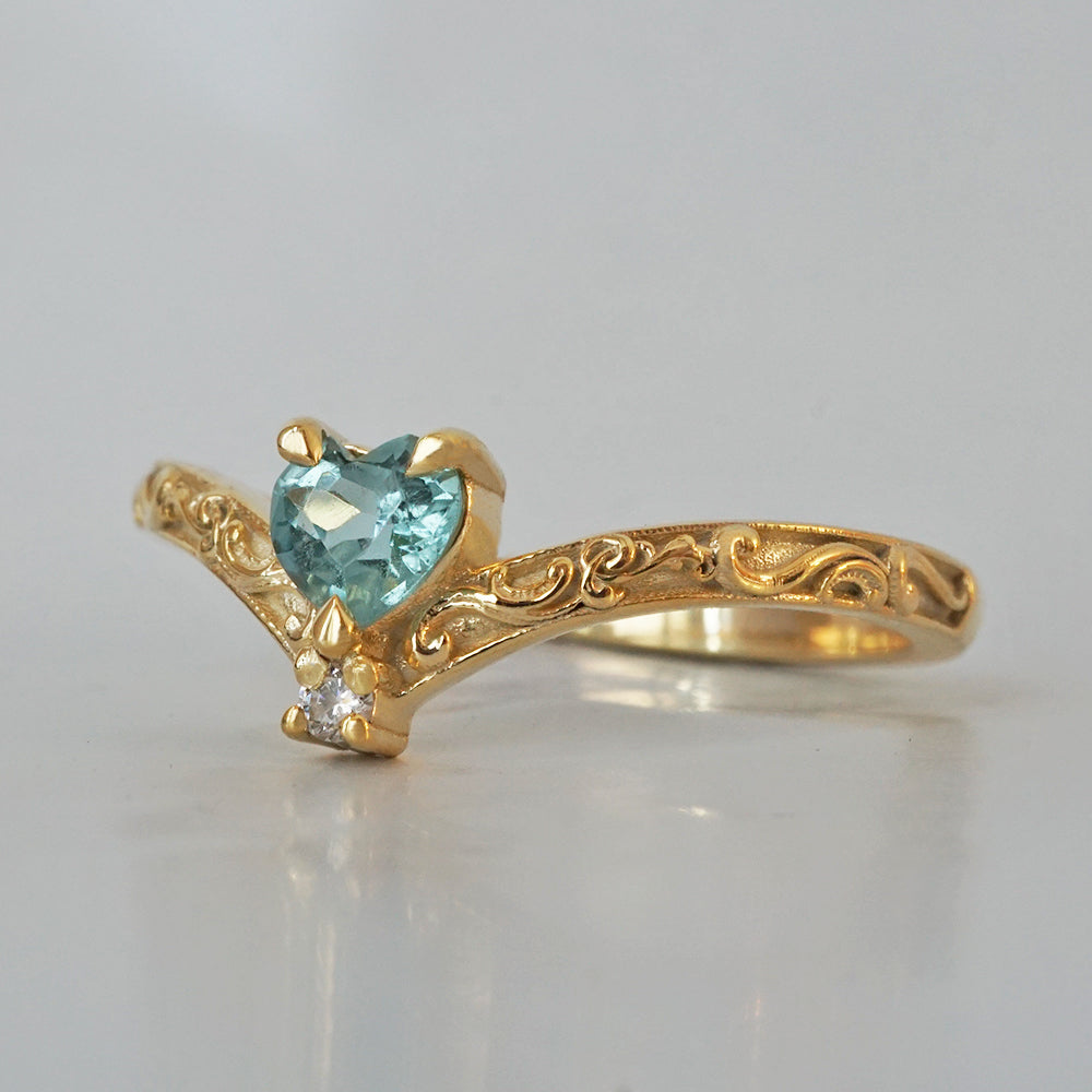 One Of A Kind: Teal Tourmaline Dusktide Diamond Ring in 14K and 18K Gold -