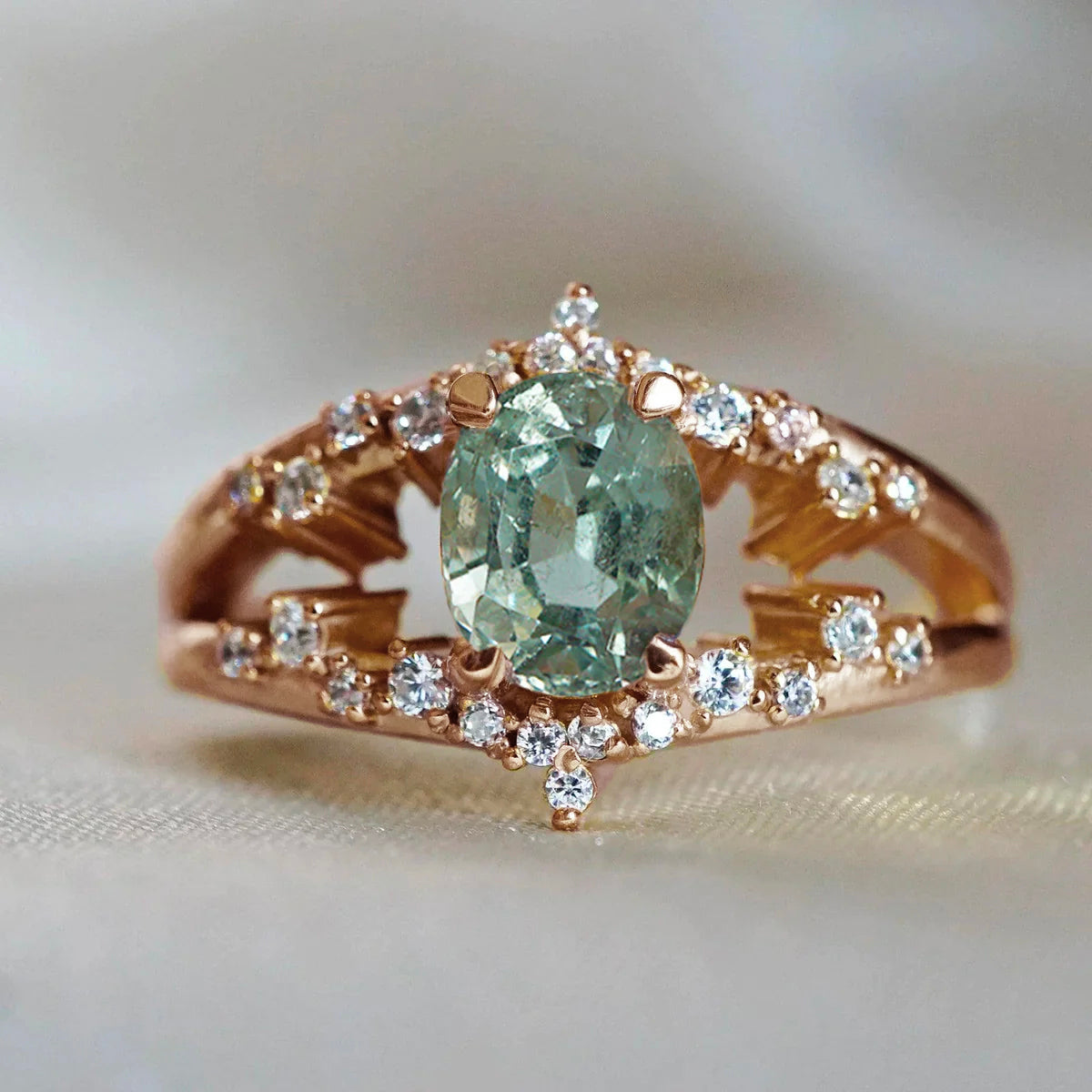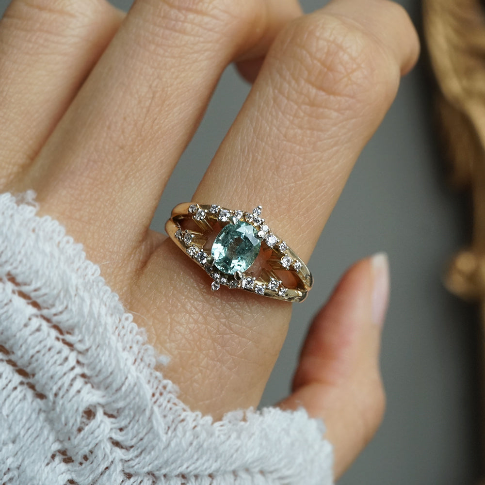 One Of A Kind: Teal Tourmaline Dusktide Diamond Ring in 14K and 18K Gold