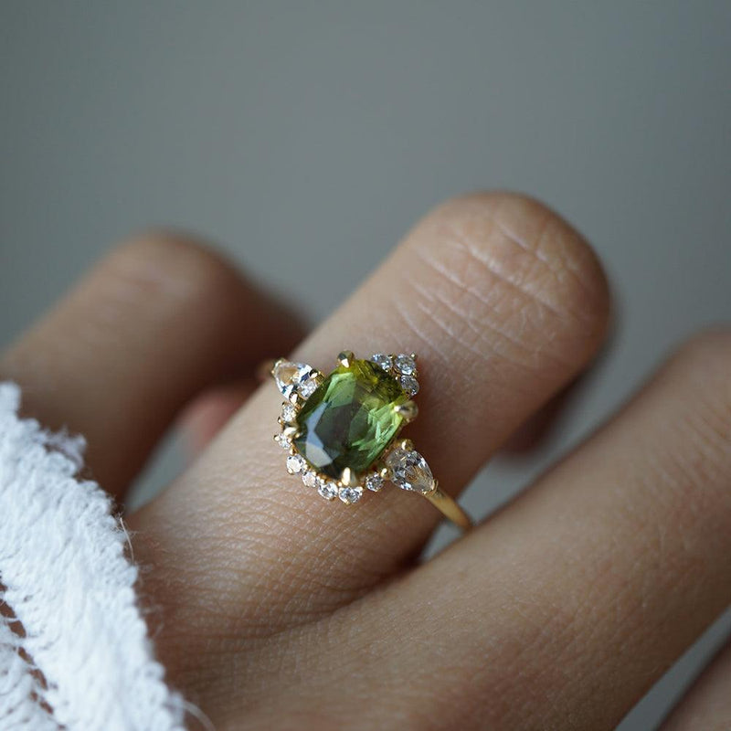 Limited Edition: Green Tourmaline Marcelline Diamond Ring in 14K and 18K Gold