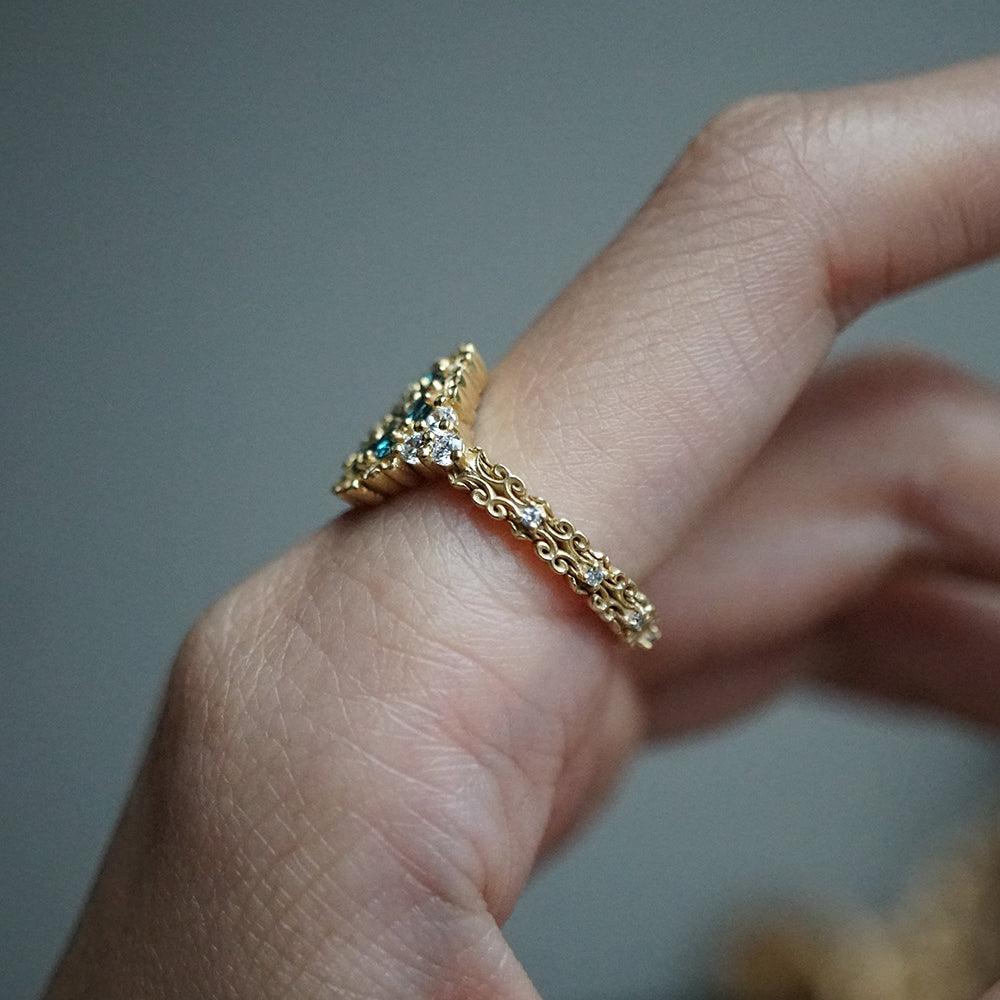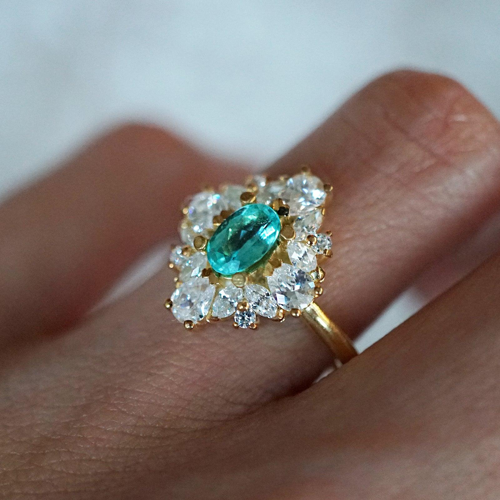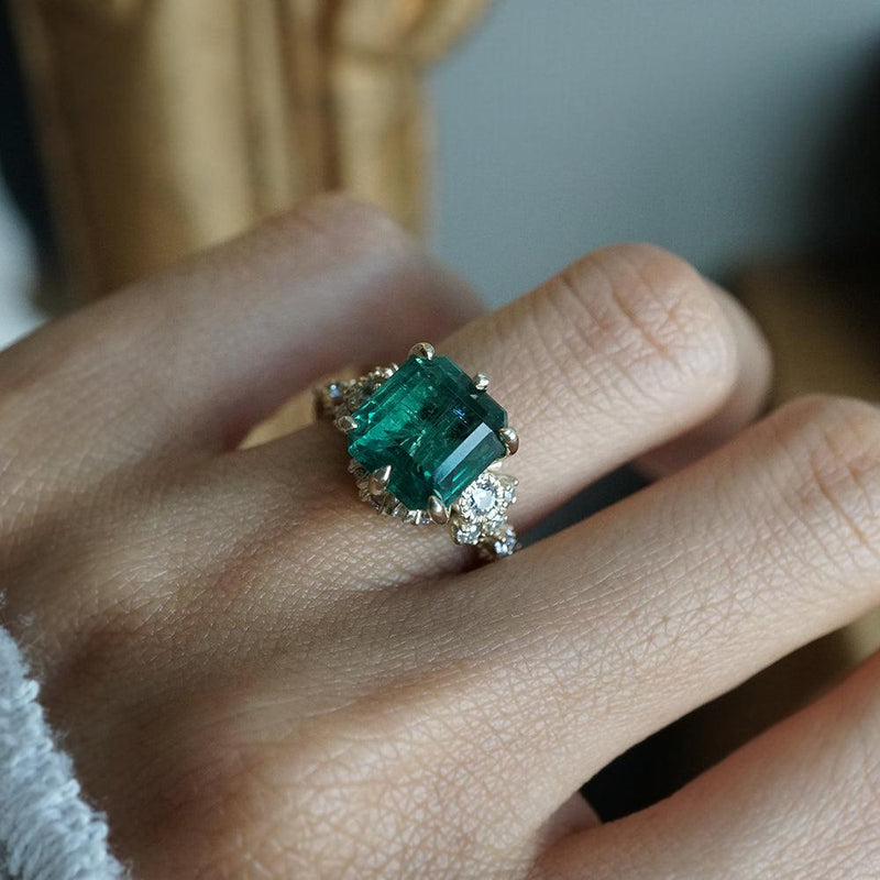 One Of A Kind: Crown Of Eos Emerald Diamond Ring in 14K and 18K Gold