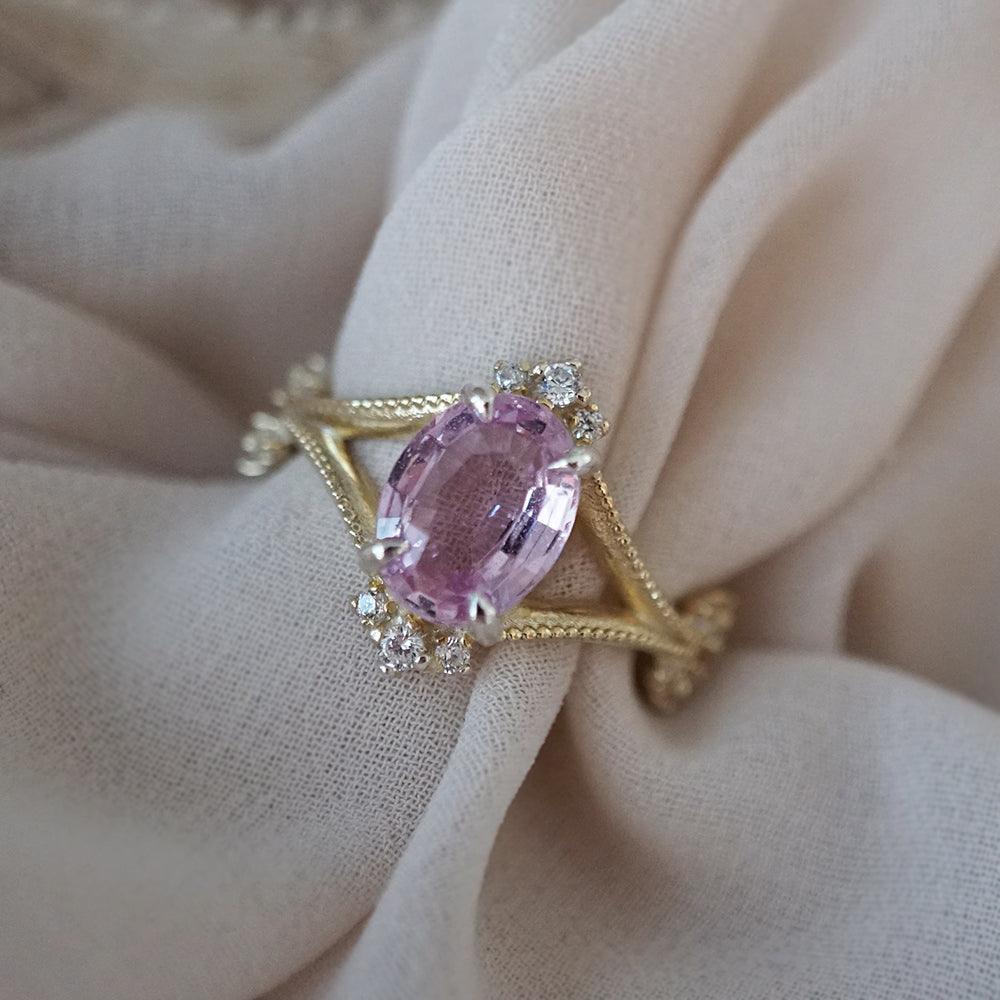 Limited Edition: Oval Rubellite Rosalia Diamond Ring in 14K and 18K Gold