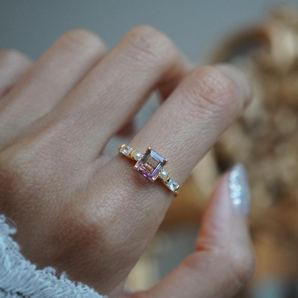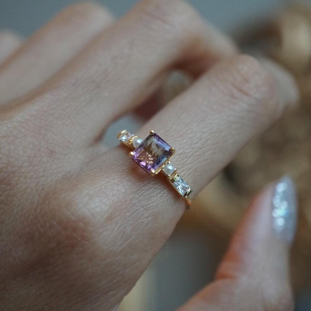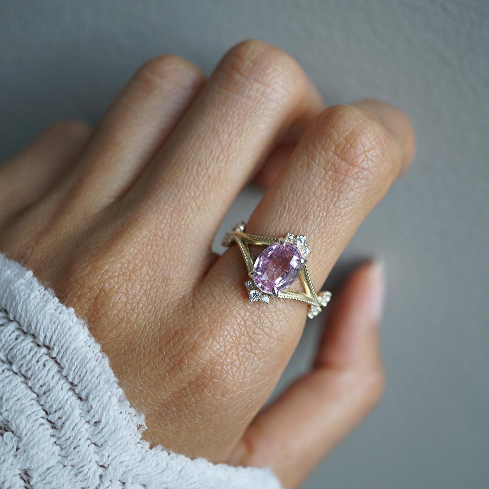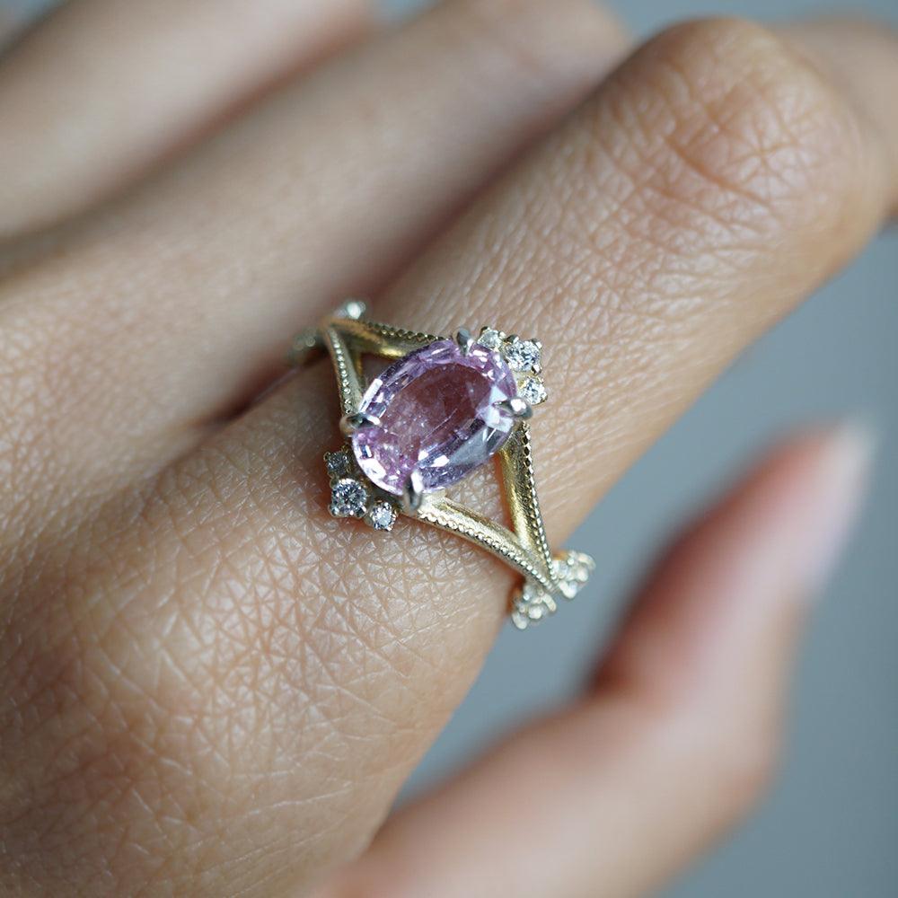 Limited Edition: Amaranthine Violet Grey Spinel Ring in 14K and 18K Gold -