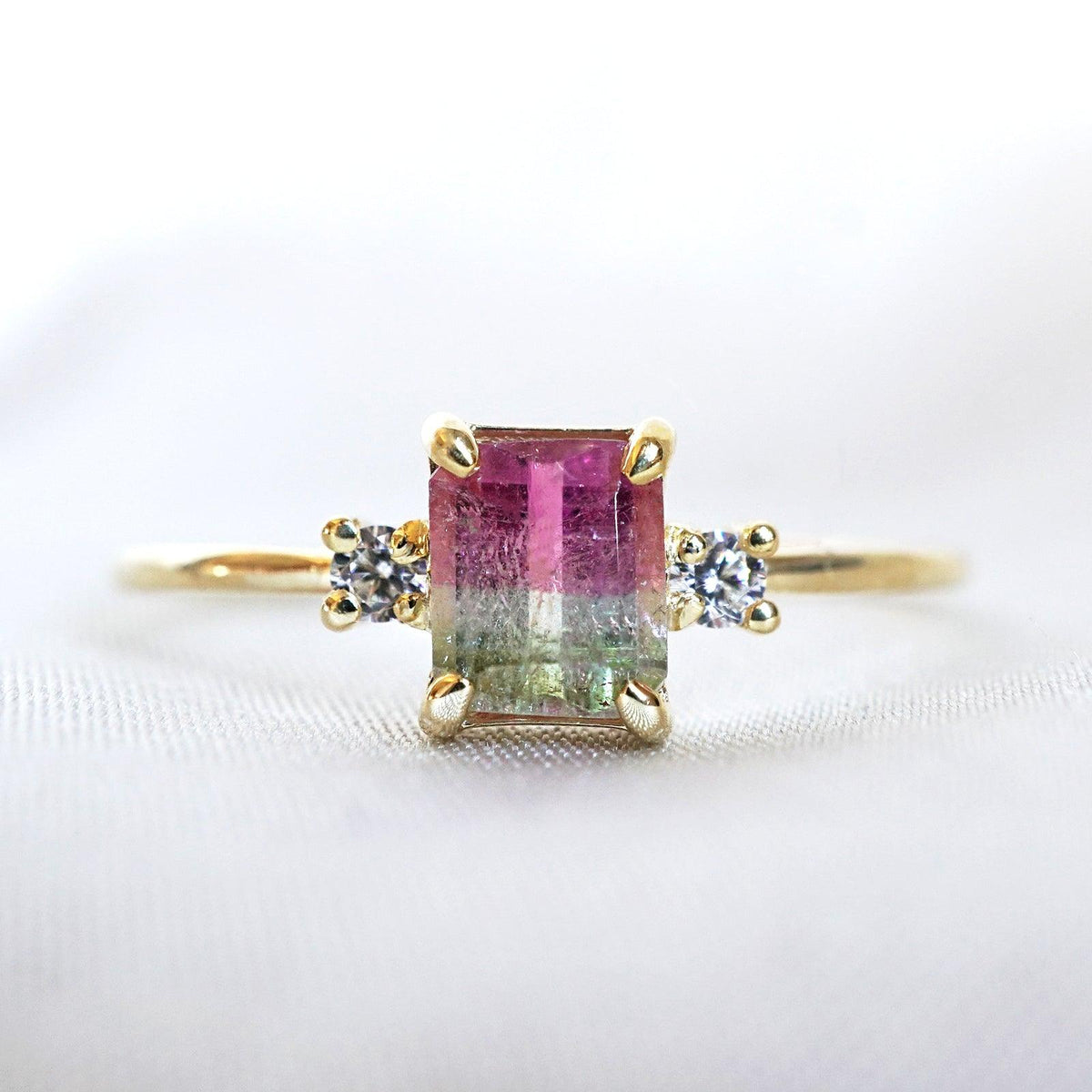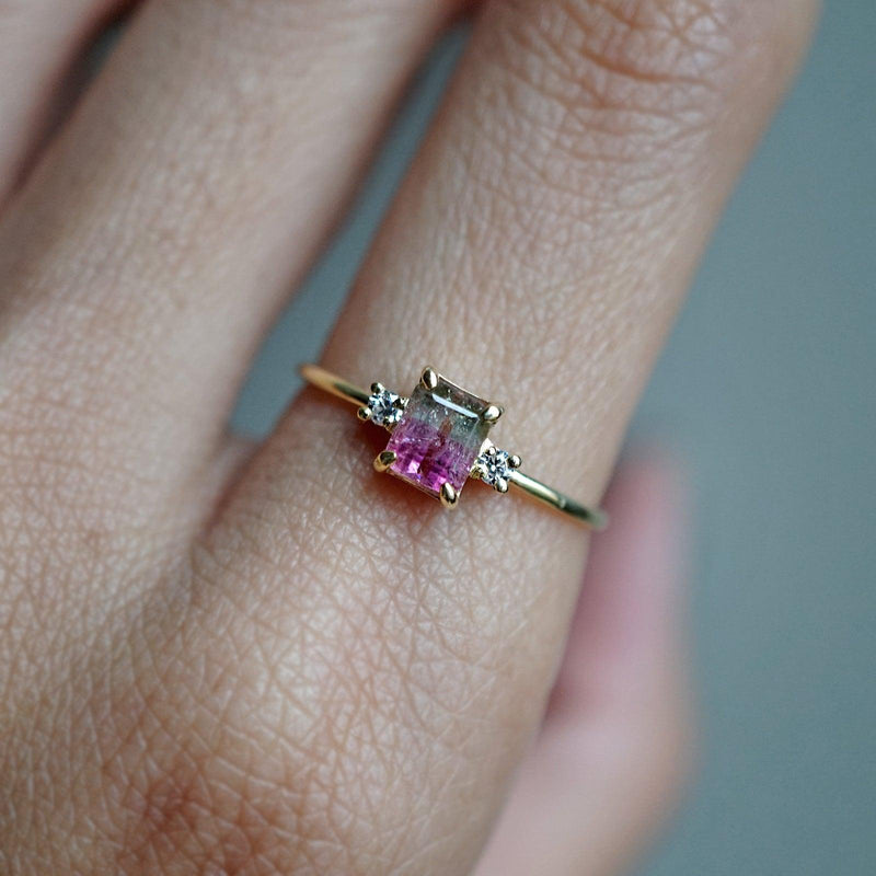 One Of A Kind: Bicolor Tourmaline Veil Diamond Ring in 14K and 18K Gold