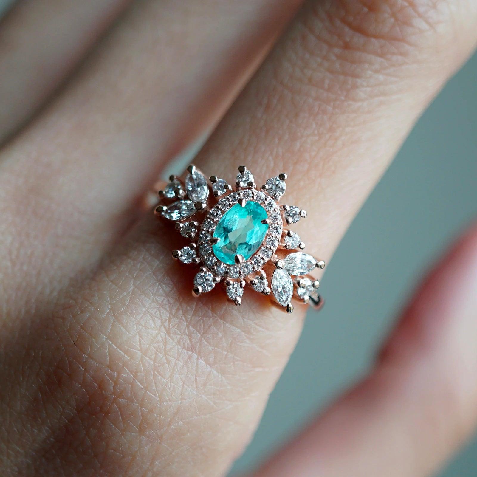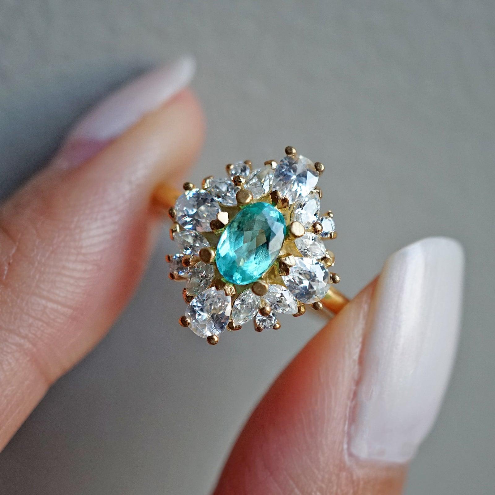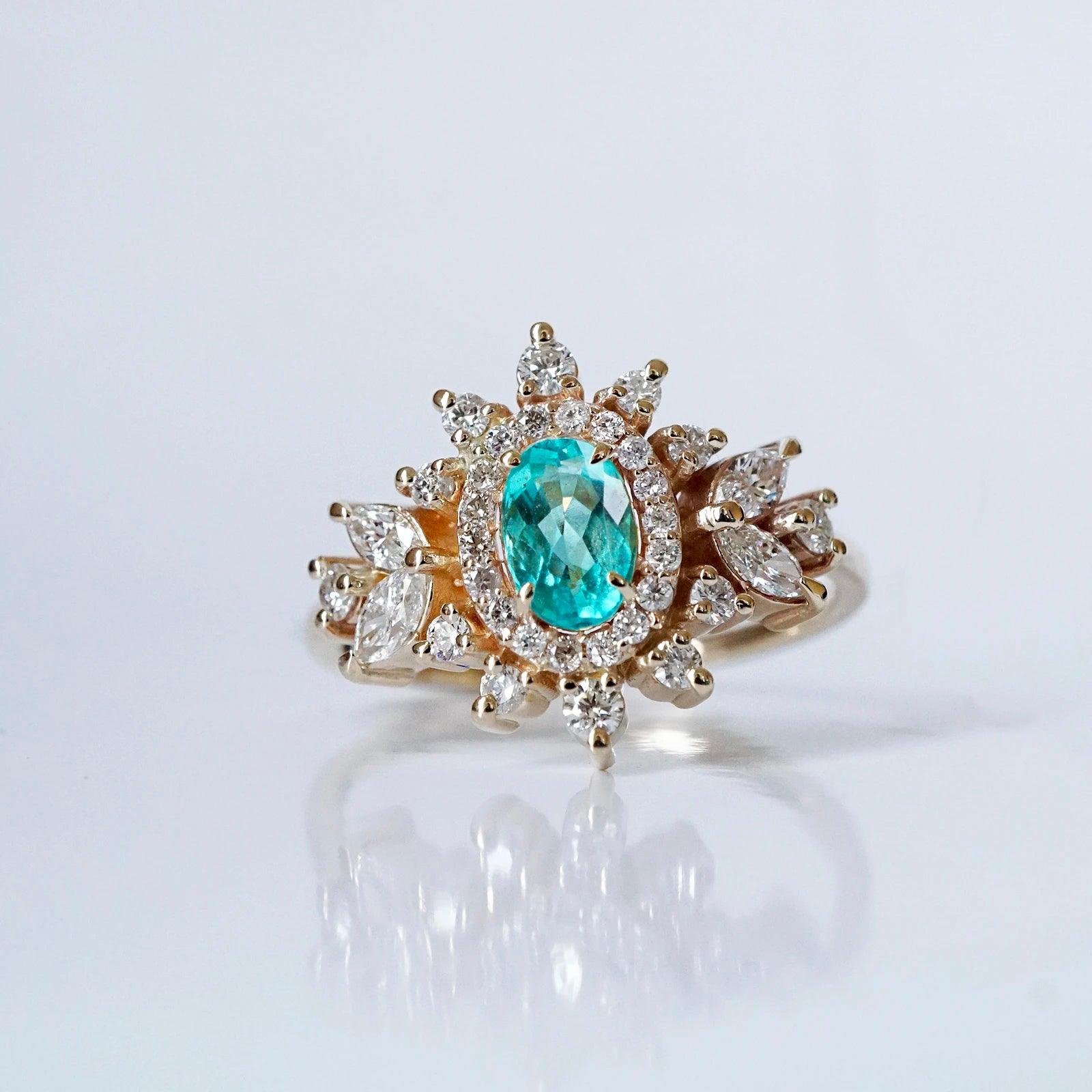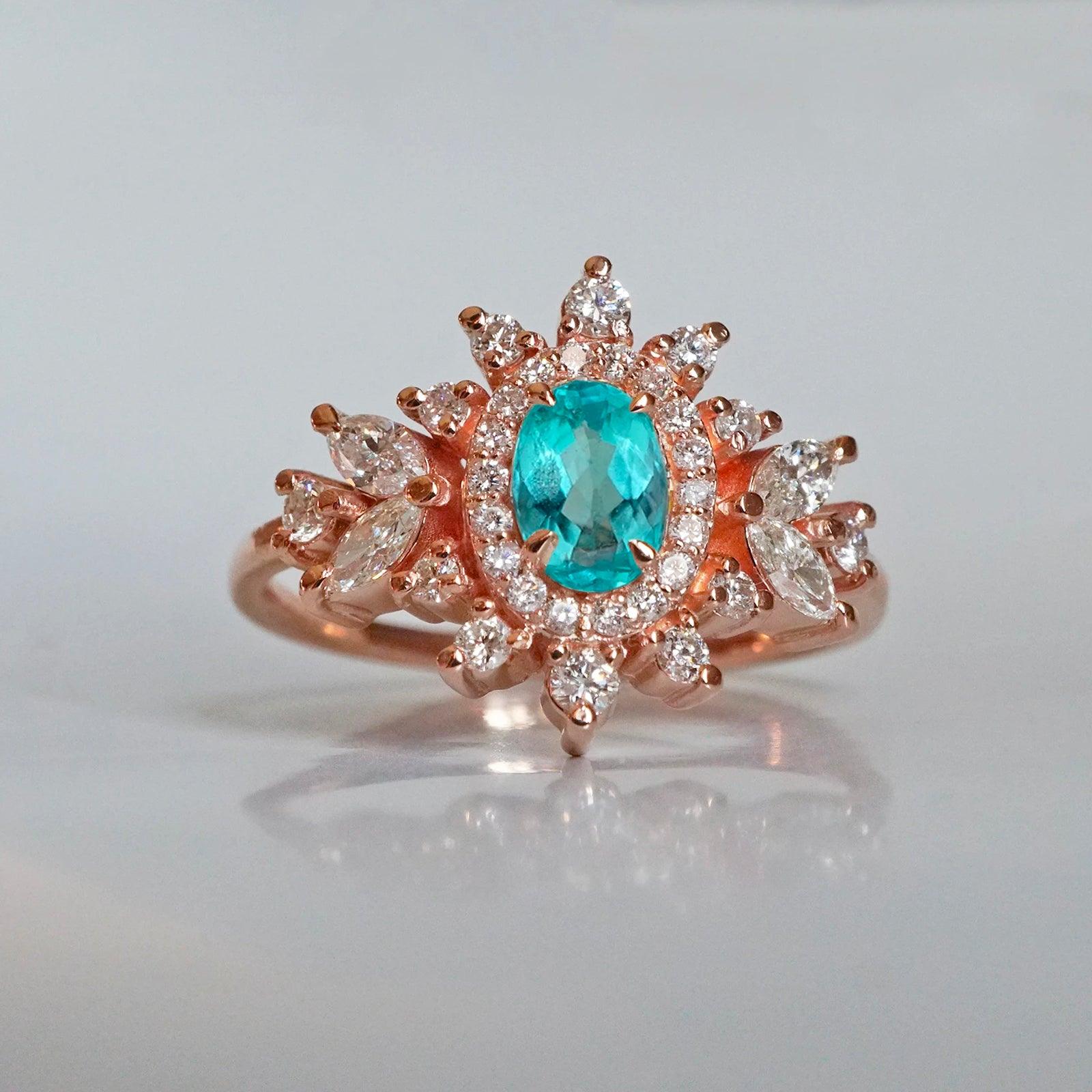One Of A Kind: Paraiba Tourmaline Ophira Diamond Ring in 14K and 18K Gold