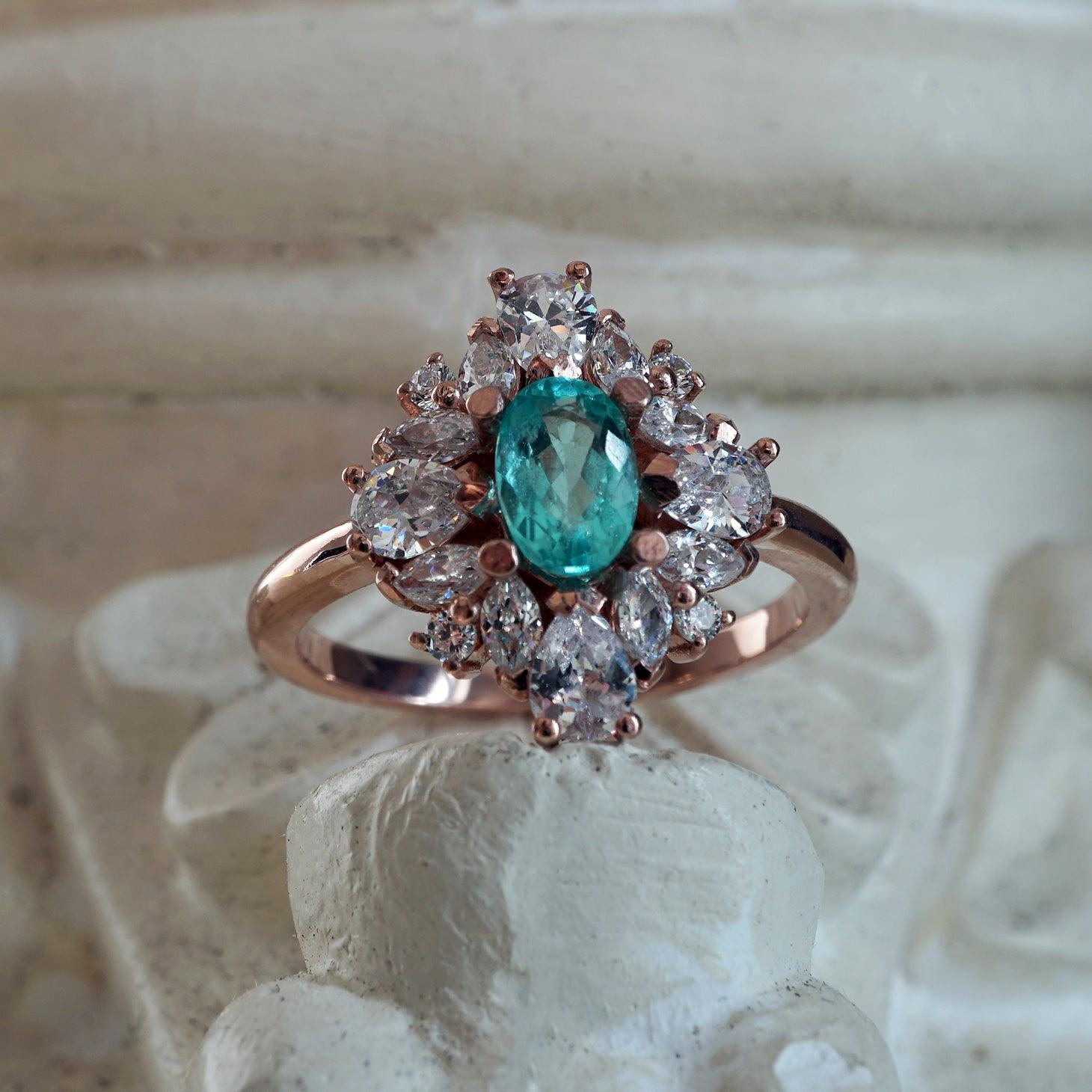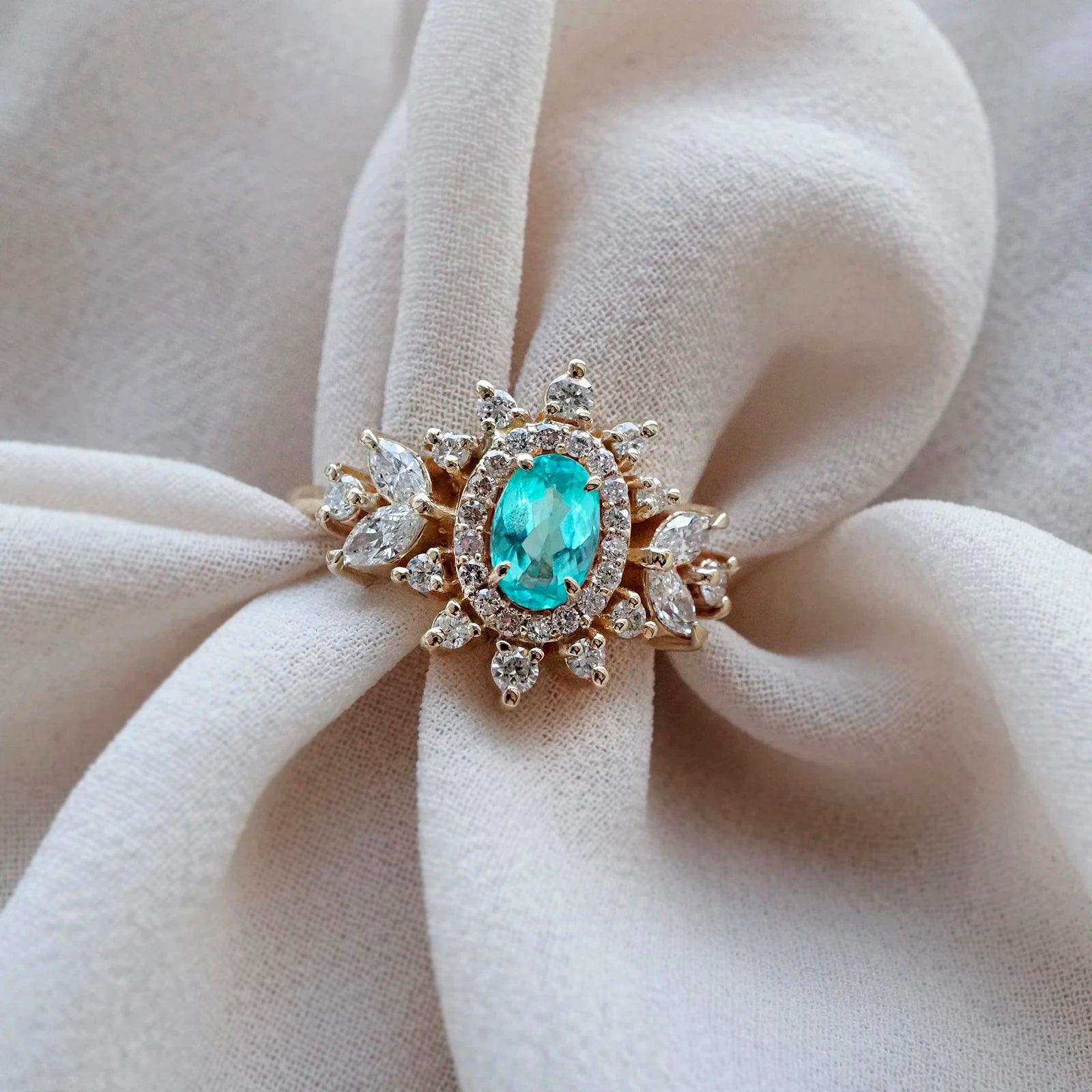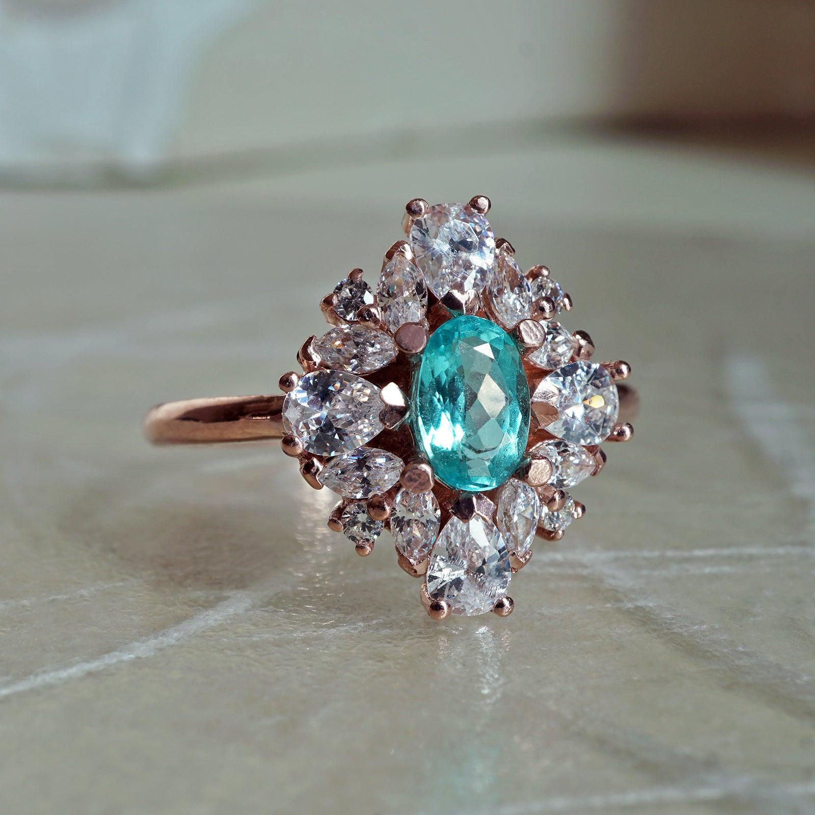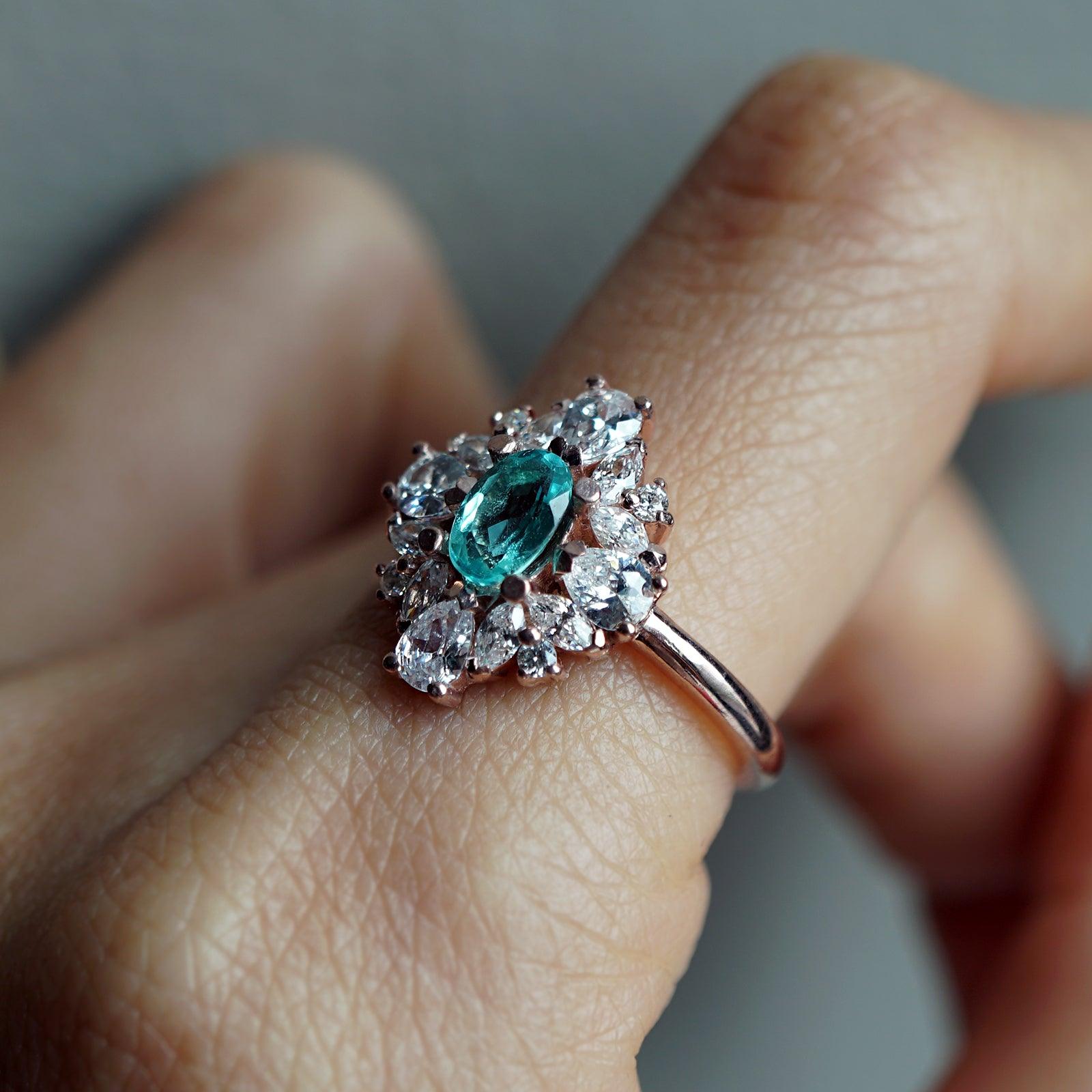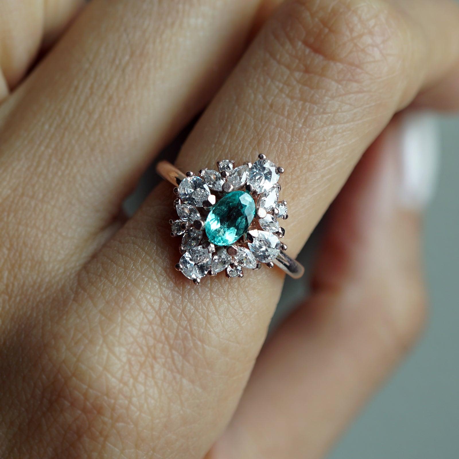 One Of A Kind: Paraiba Tourmaline Ophira Diamond Ring in 14K and 18K Gold