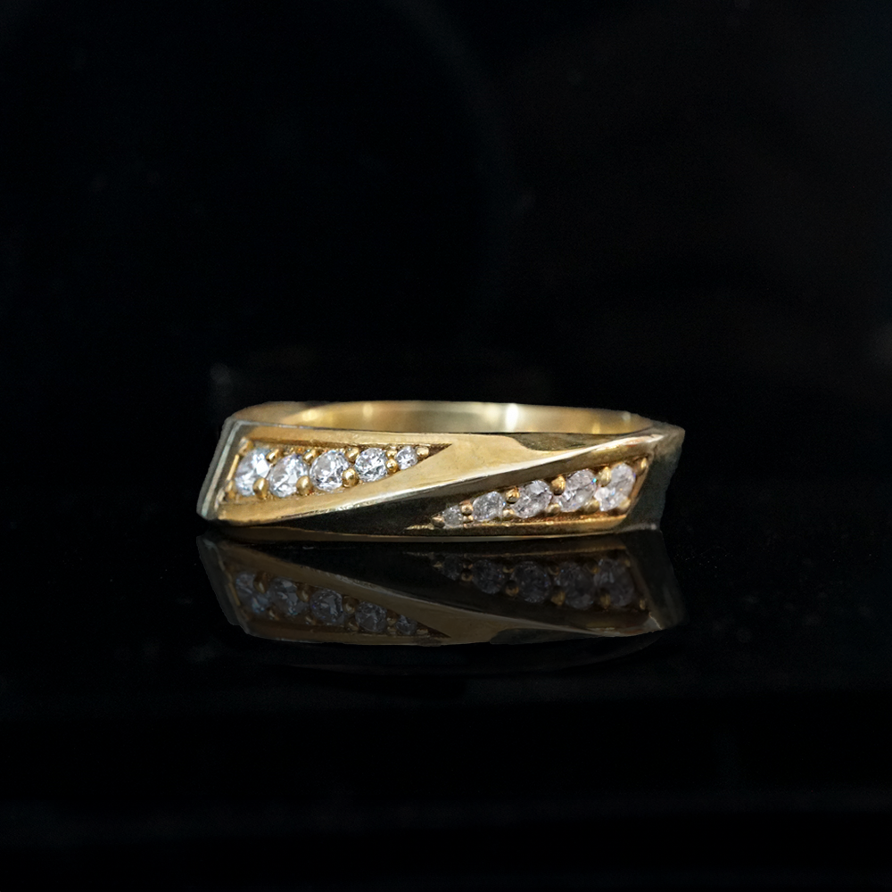 The Spiral Diamond Ring captures understated elegance in motion. Its twisted bevel band glimmers with a trail of natural white diamonds, creating a fluid, sculptural form that catches the light from every angle.
