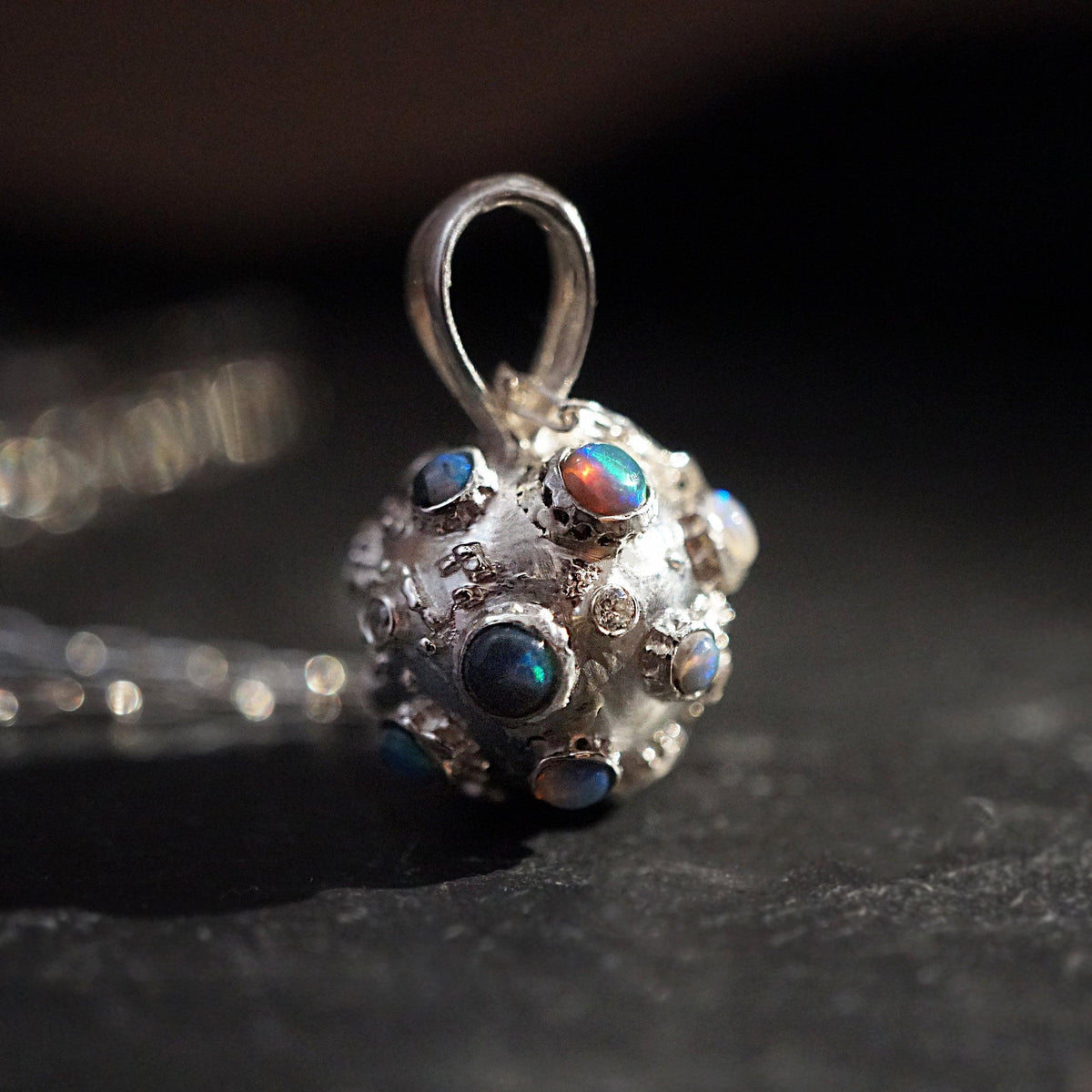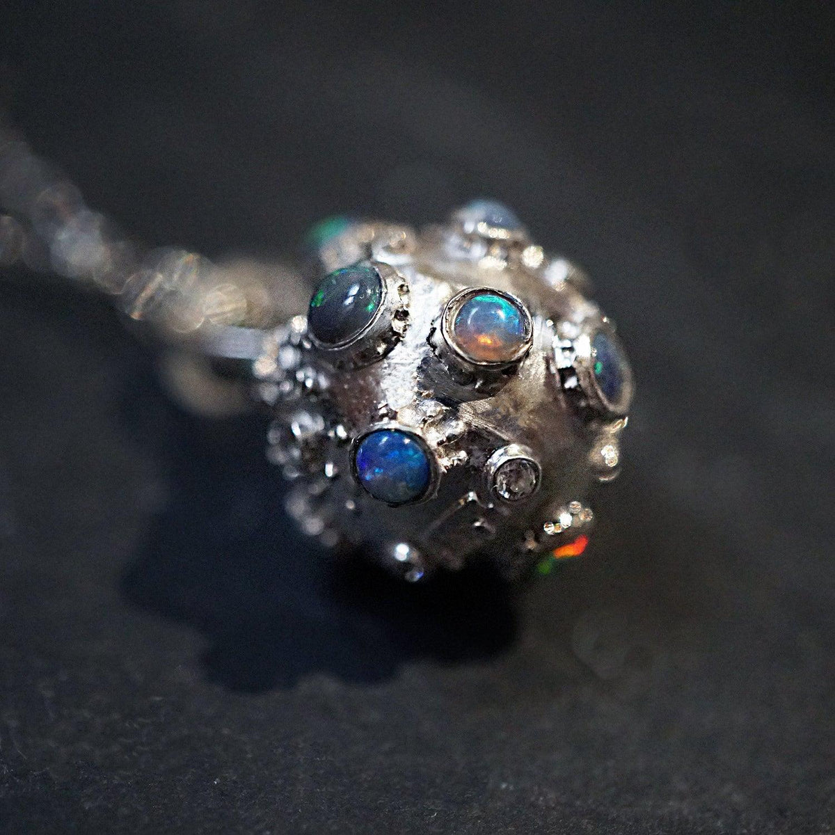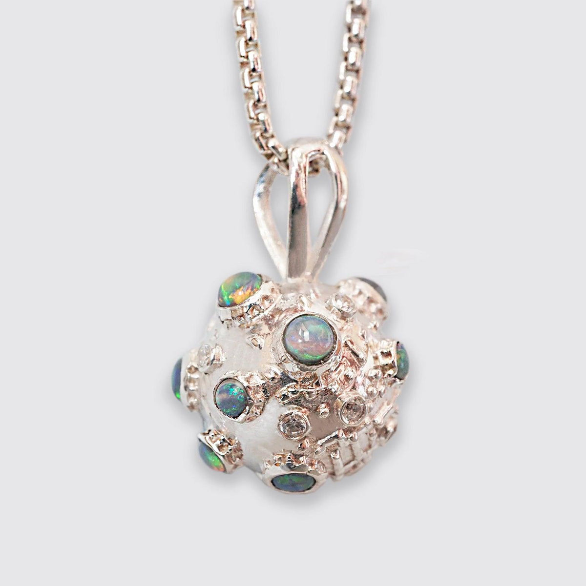 Inspired by the meteorite, this stylish pendant is made in your choice of sterling silver or 10K solid white gold with rare black Australian Opals and natural white diamonds. Wearable art that's perfect for everyday wear.