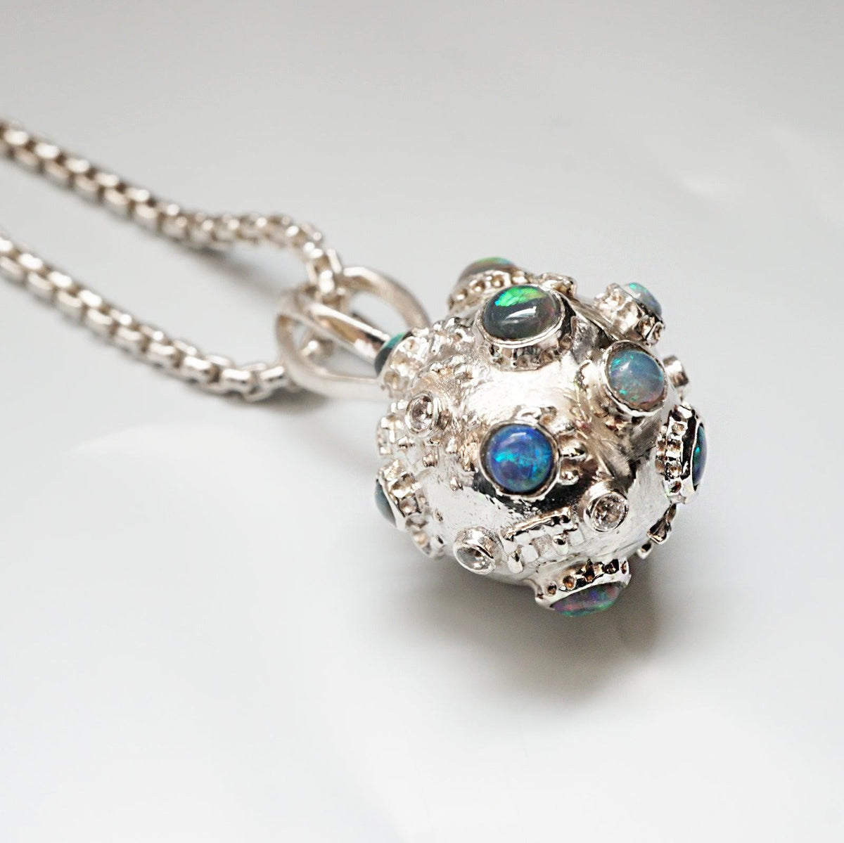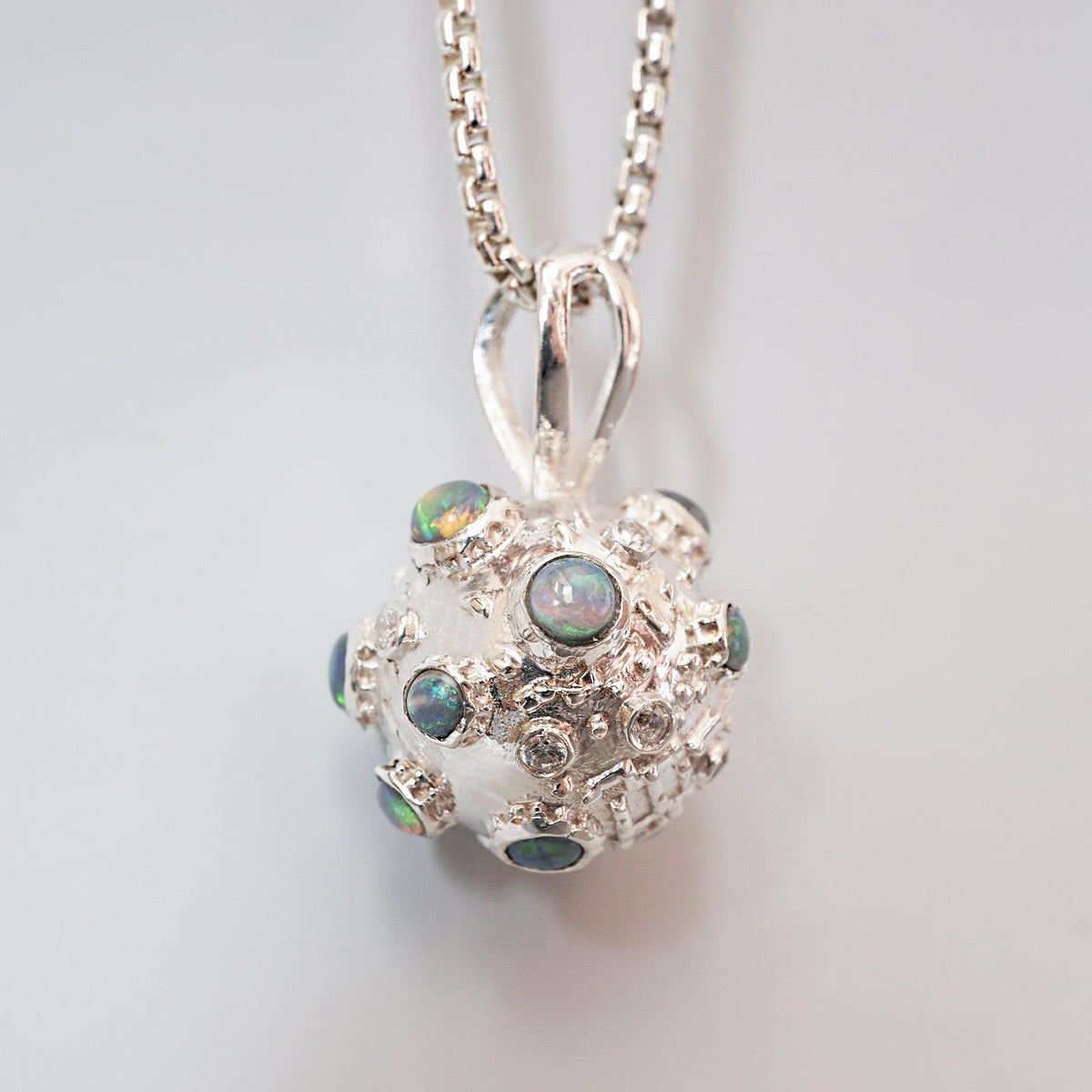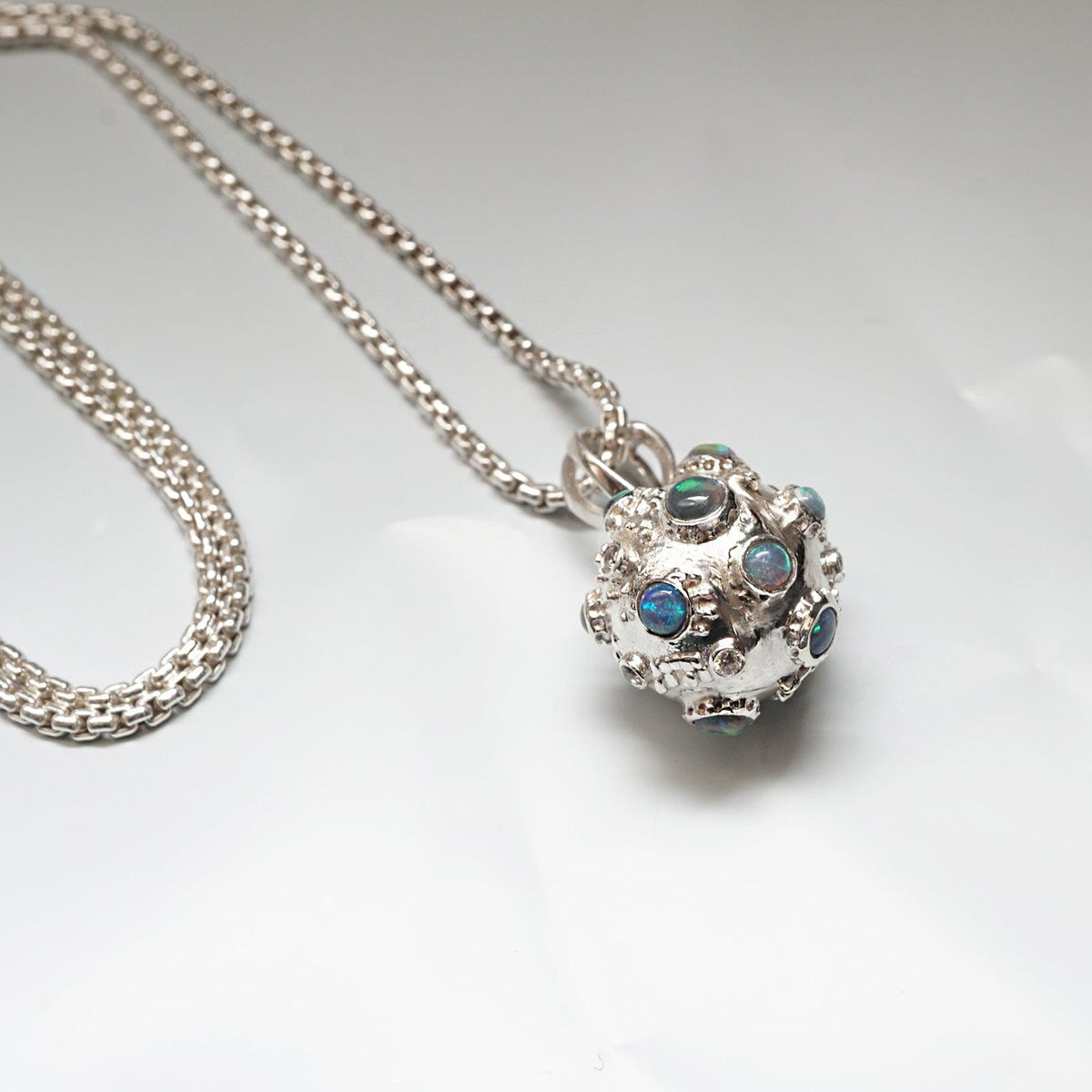 Inspired by the meteorite, this stylish pendant is made in your choice of sterling silver or 10K solid white gold with rare black Australian Opals and natural white diamonds. Wearable art that's perfect for everyday wear.
