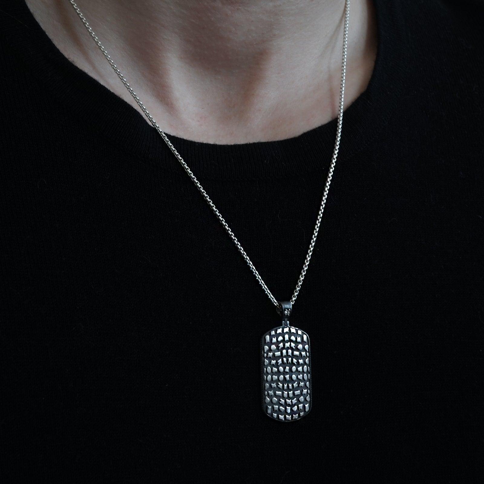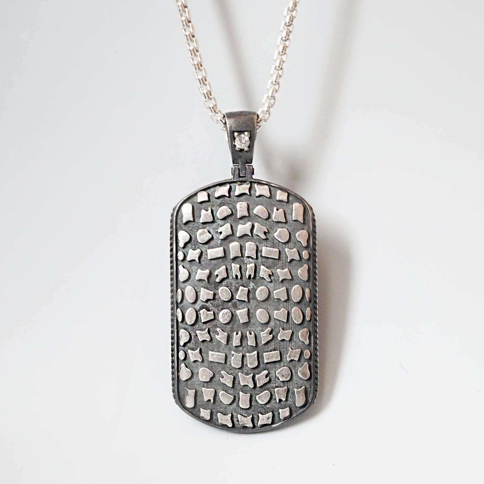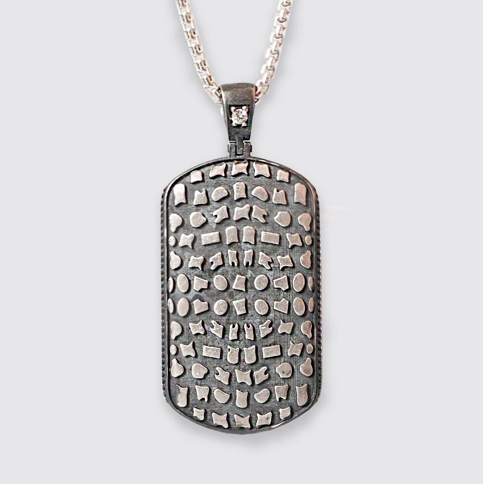 Inspired by the quiet rhythm of stone pavements, this dog tag necklace serves as a reminder to take life one step at a time. Crafted in sterling silver, the pendant is framed with milgrain detailing and accented by a natural white diamond on the bail for a subtle touch of brilliance.