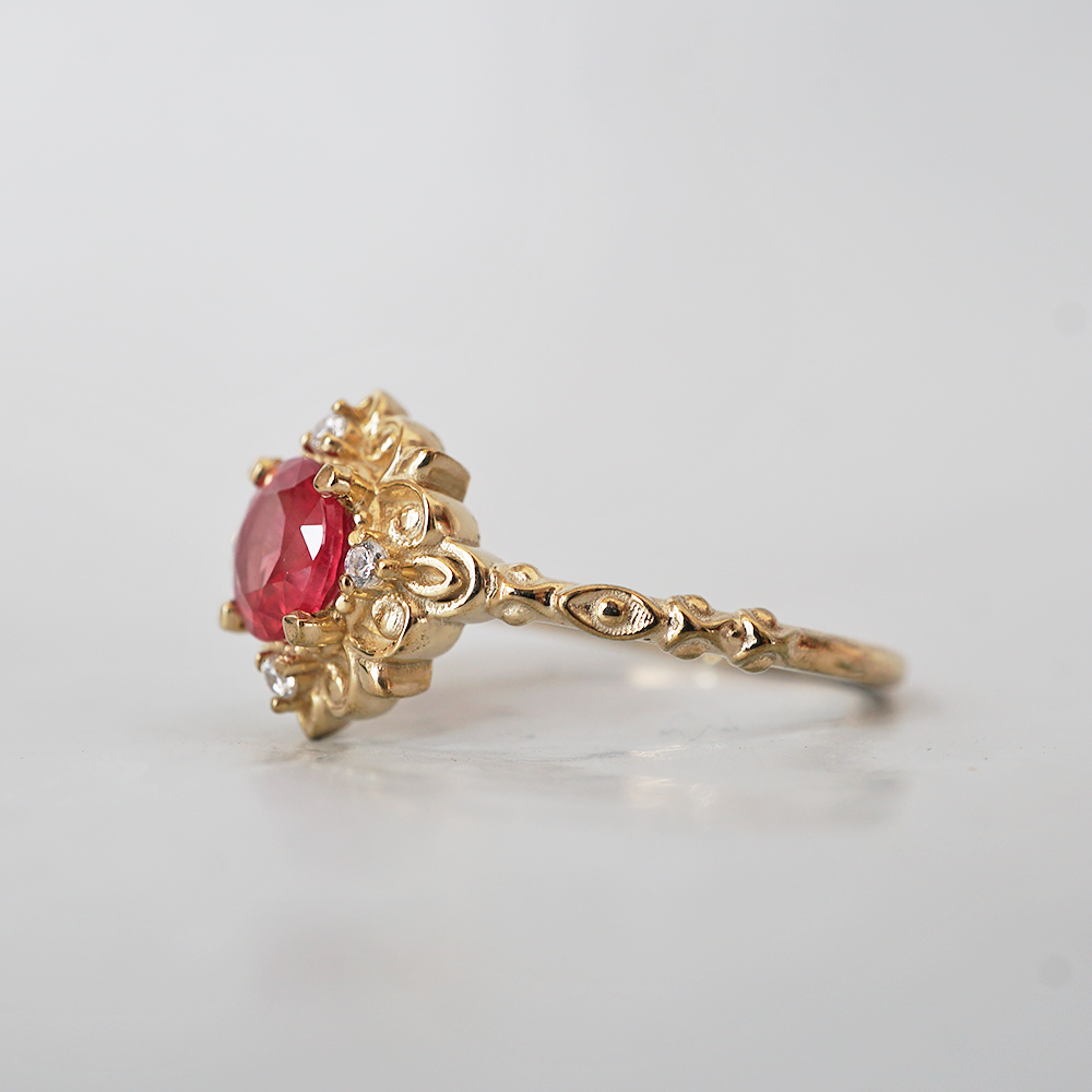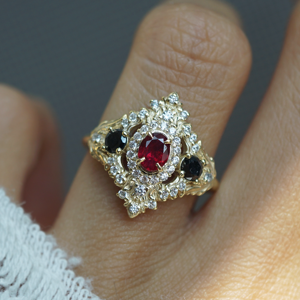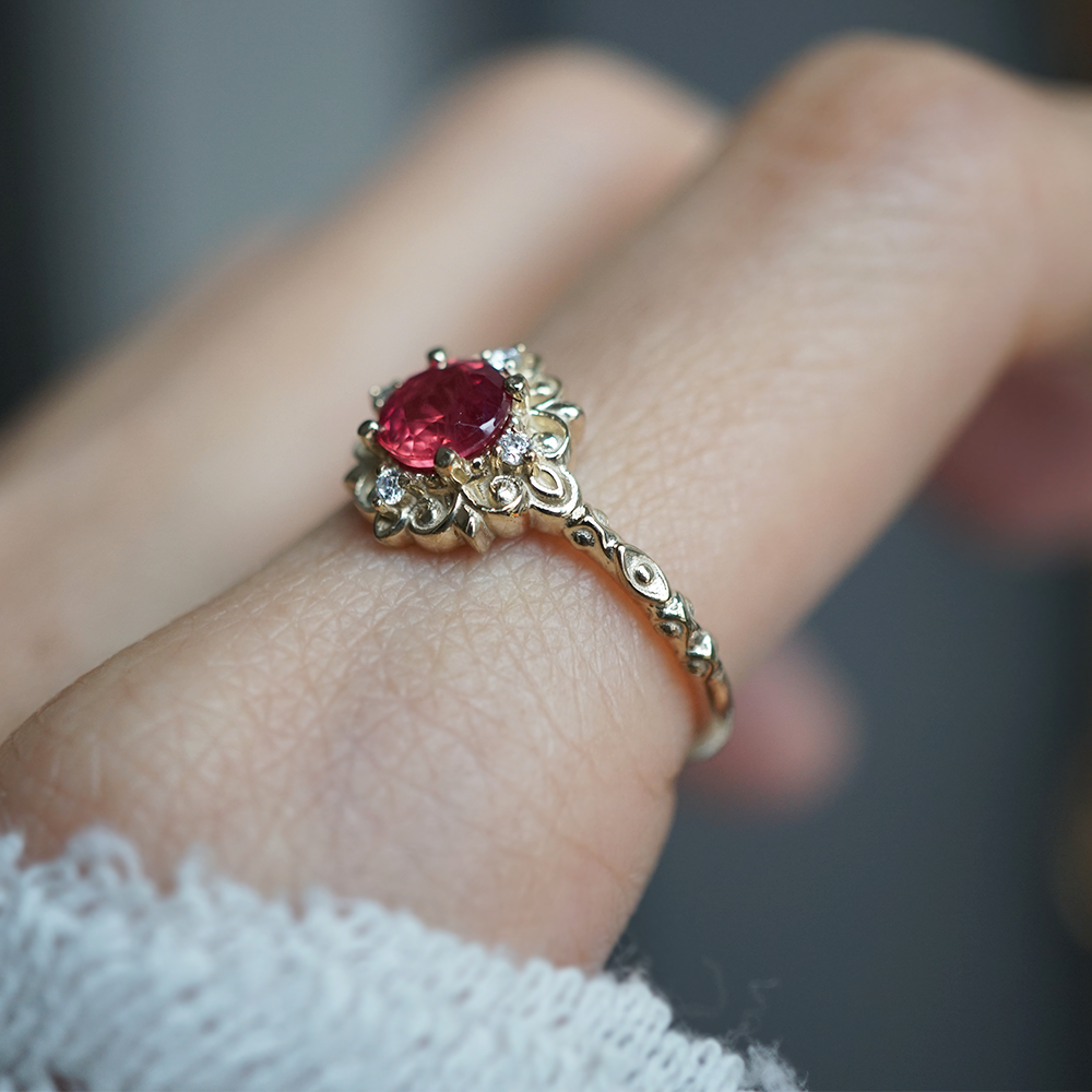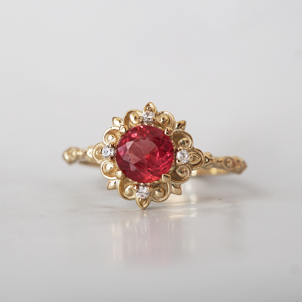 One Of A Kind: Red Spinel Emberveil Diamond Ring in 14K and 18K Gold
