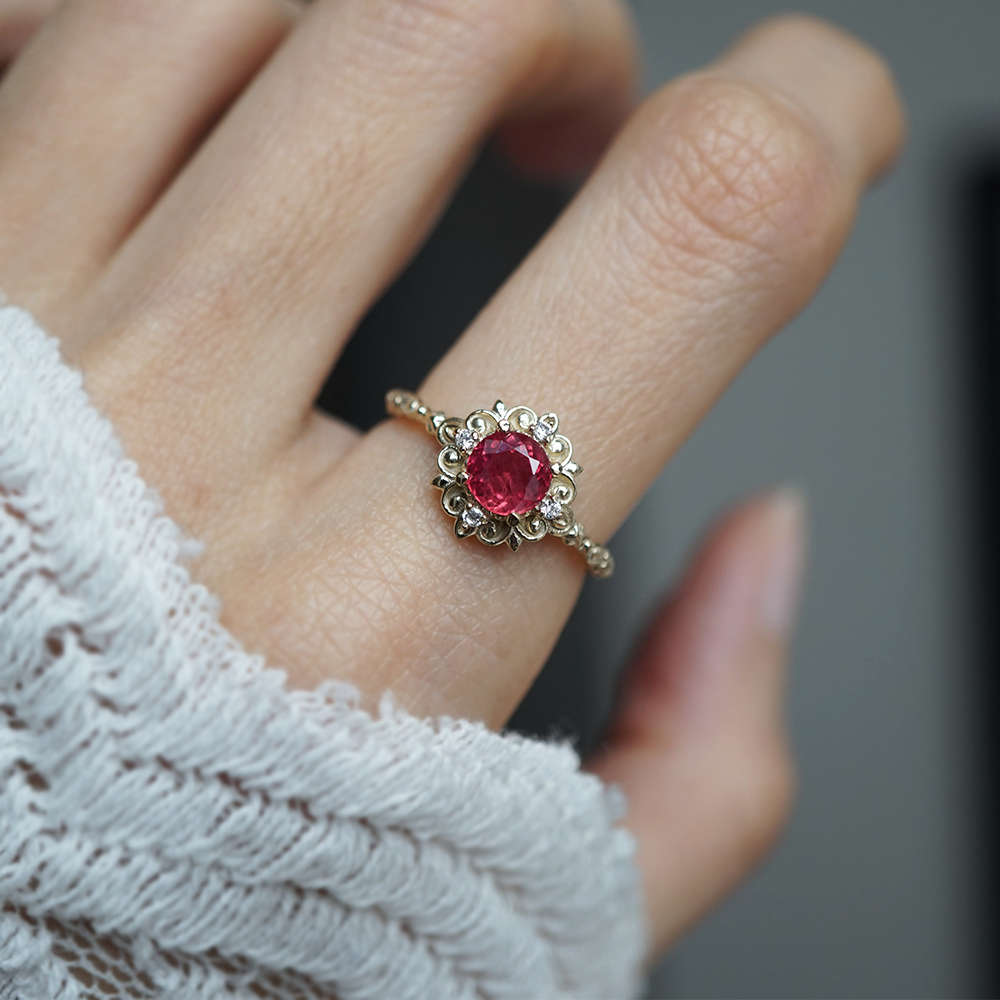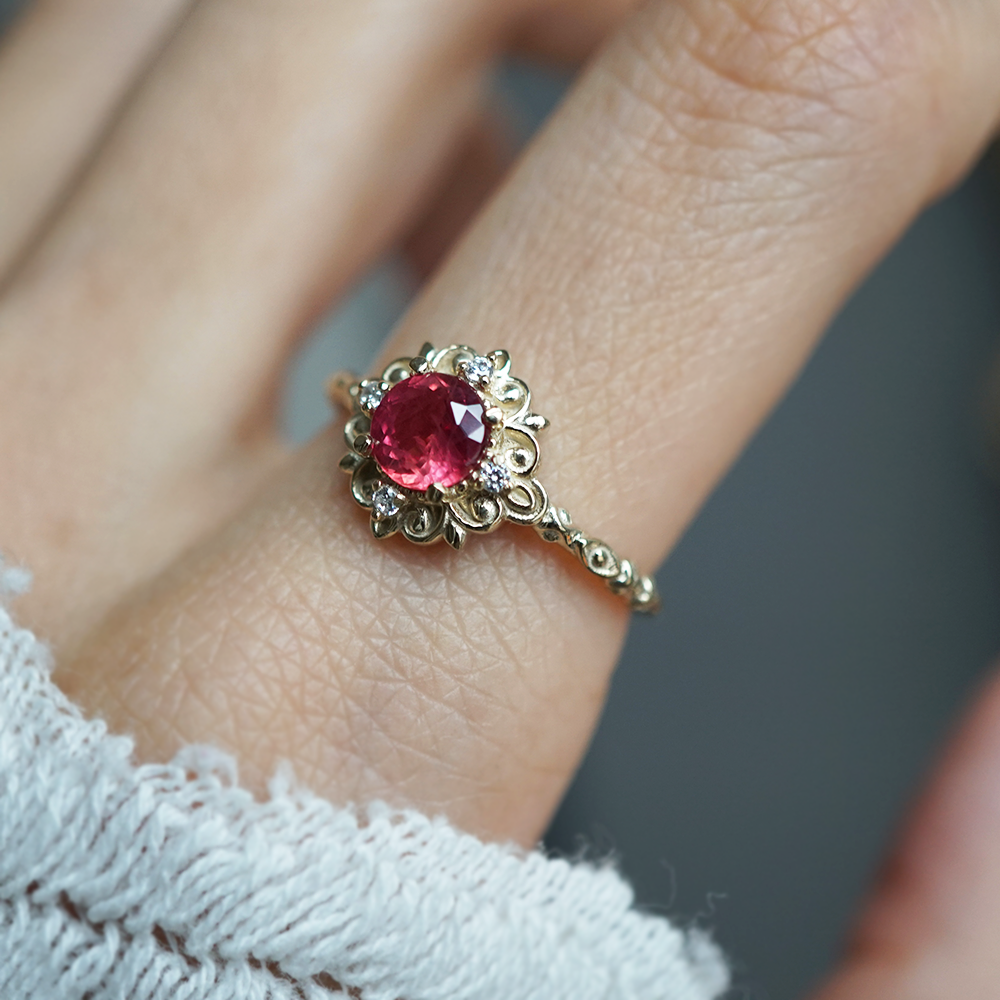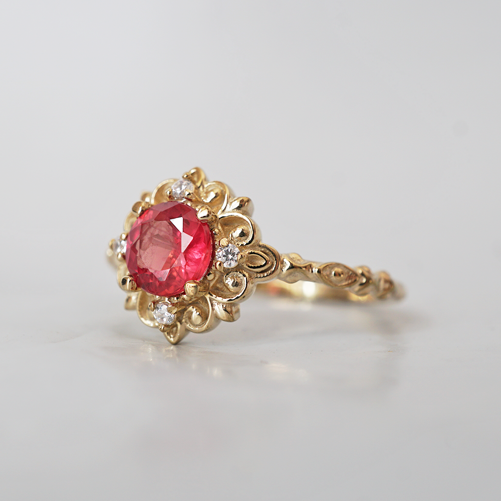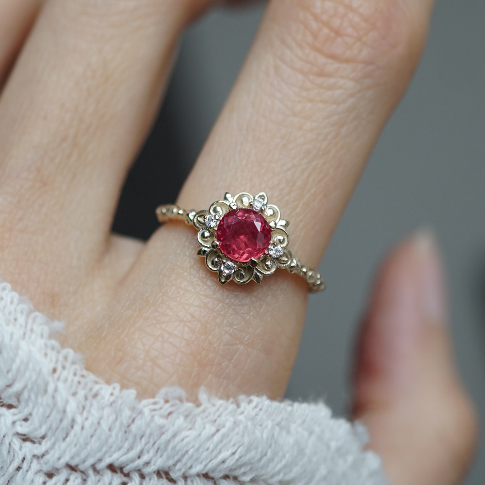 One Of A Kind: Red Spinel Emberveil Diamond Ring in 14K and 18K Gold