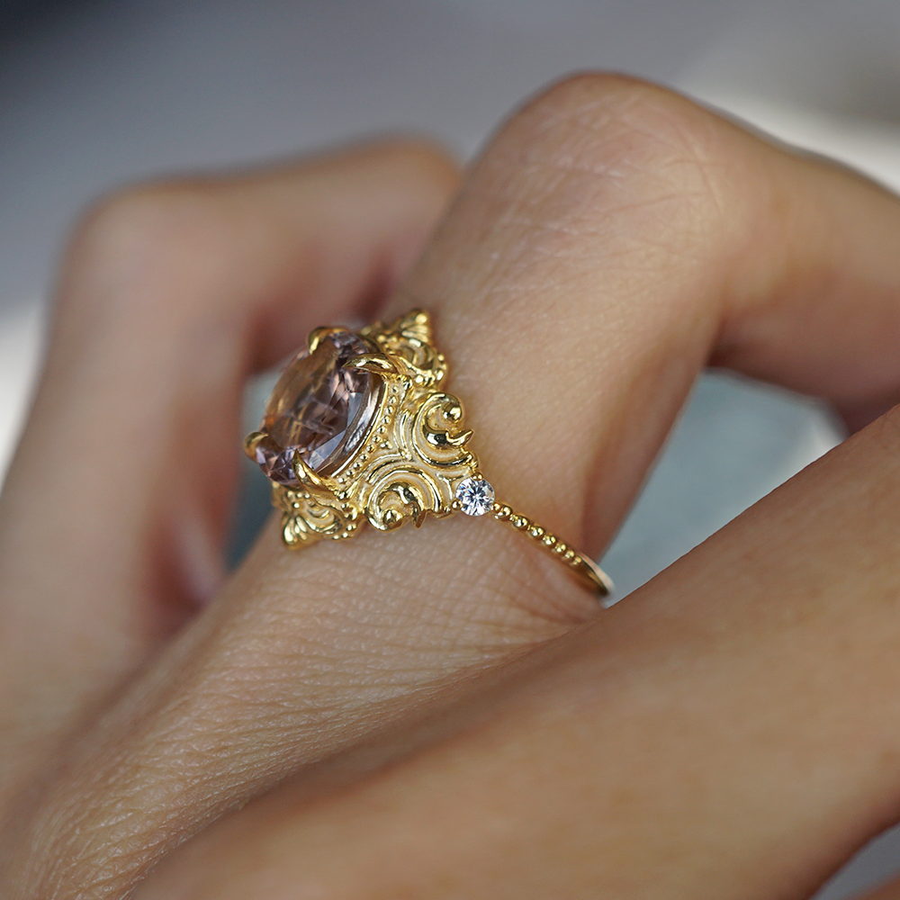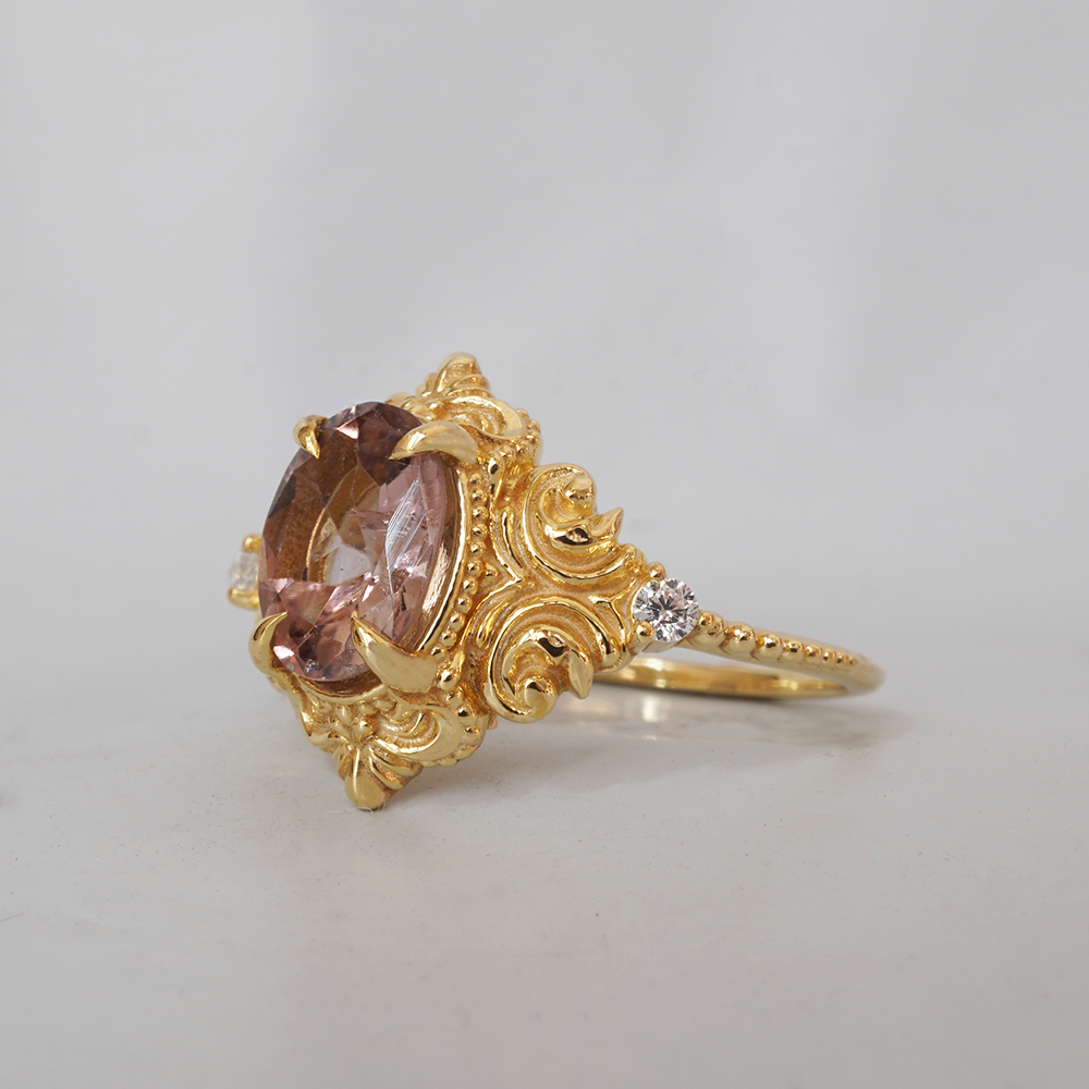 Limited Edition: Oval Rubellite Rosalia Diamond Ring in 14K and 18K Gold