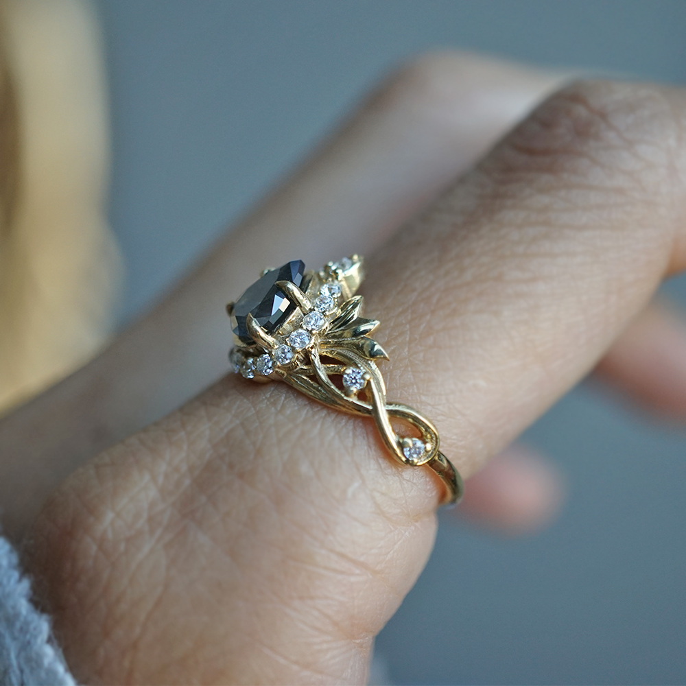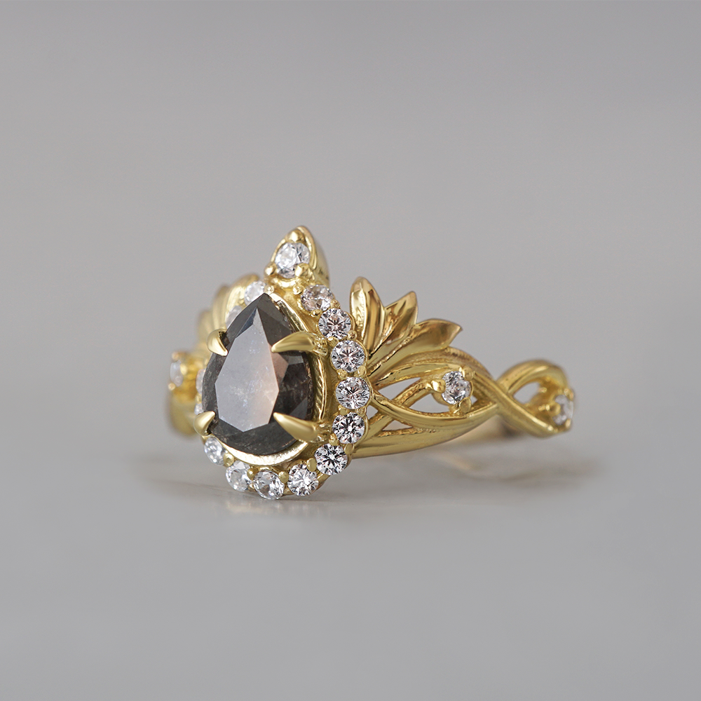 Salt & Pepper Diamond Vita Noire Diamond Ring in 14K and 18K Gold -