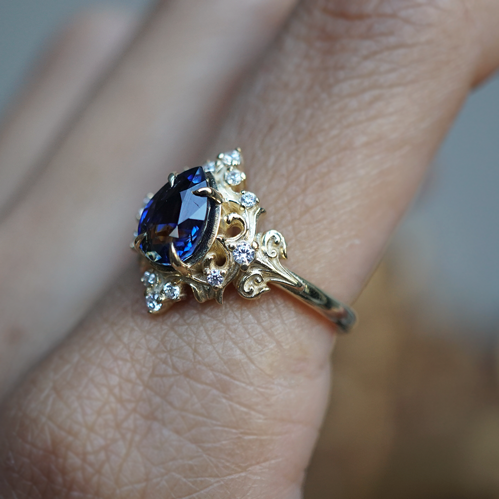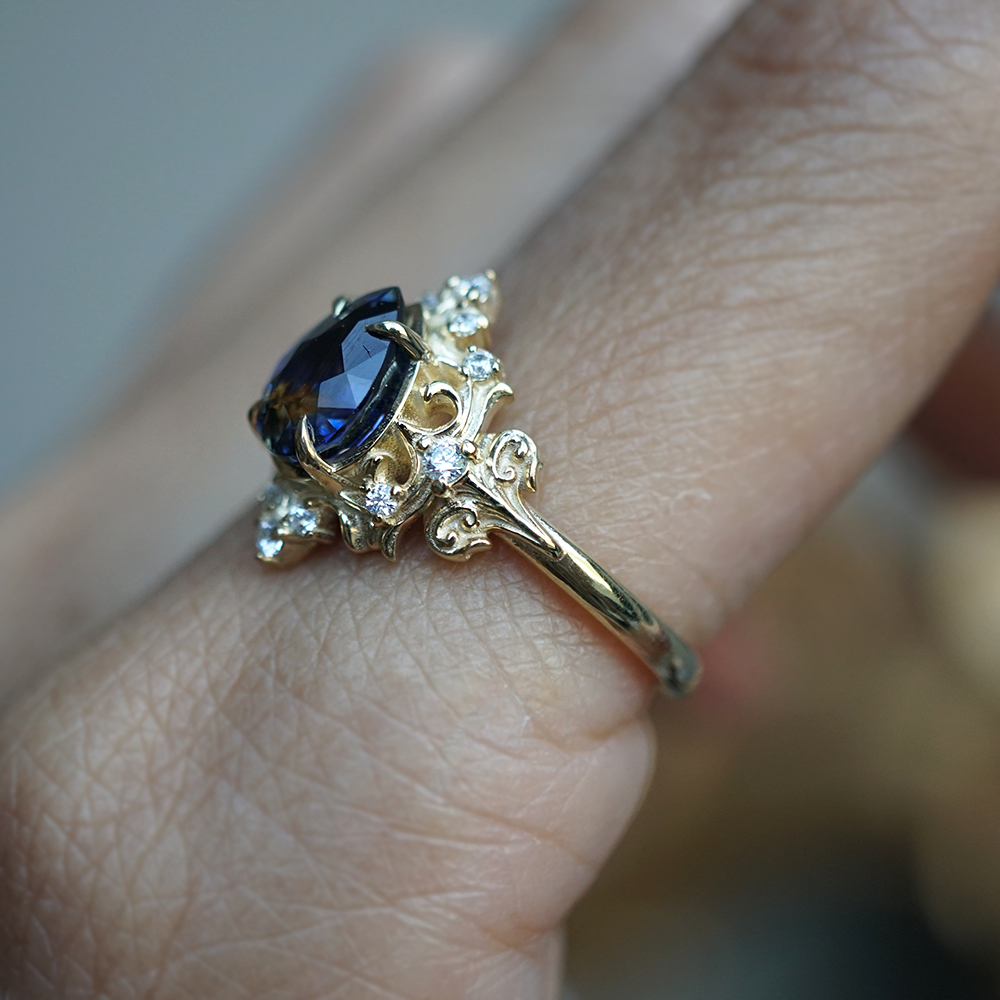 One Of A Kind: Blue Spinel Miraj Diamond Ring in 14K and 18K Gold