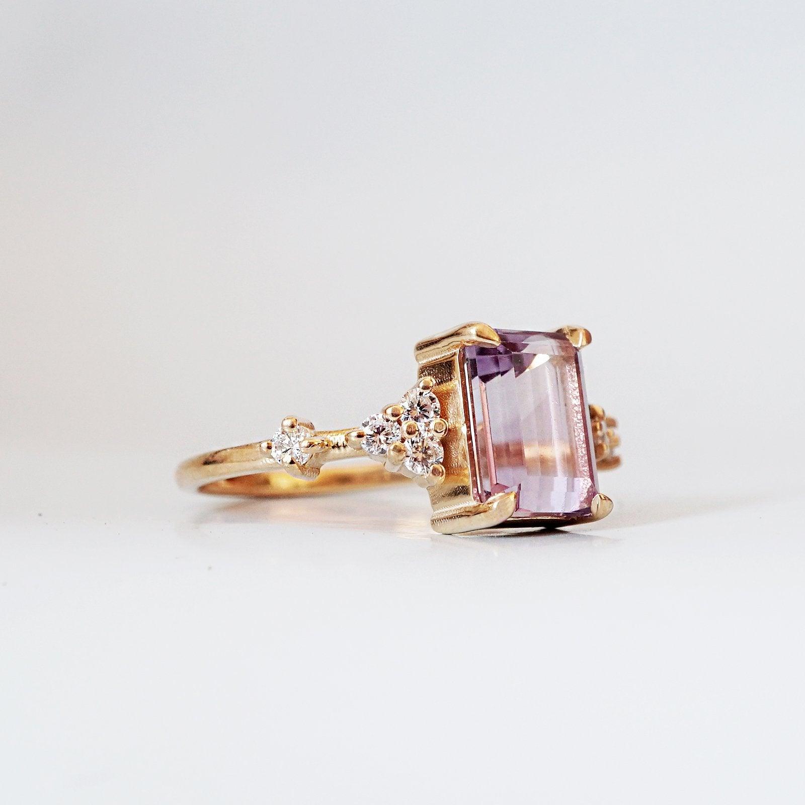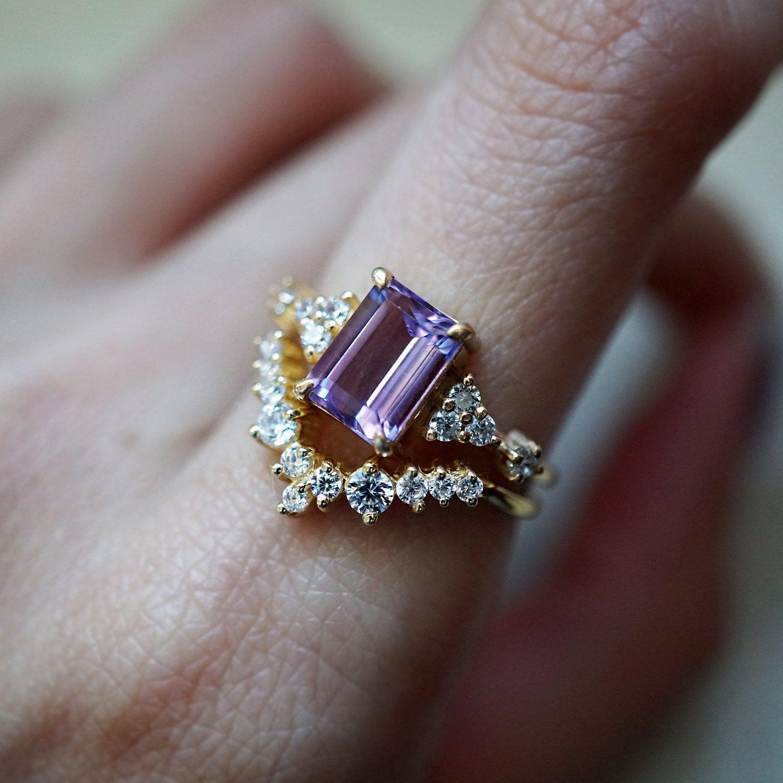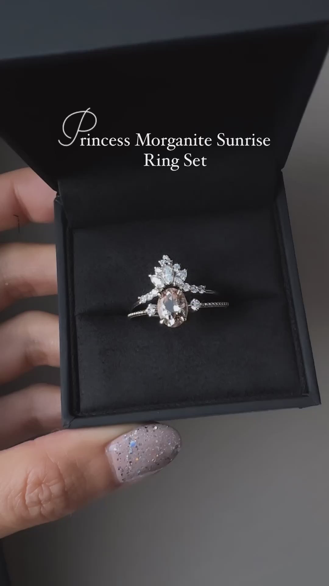 Princess Morganite Sunrise Ring Set in 14K Gold -