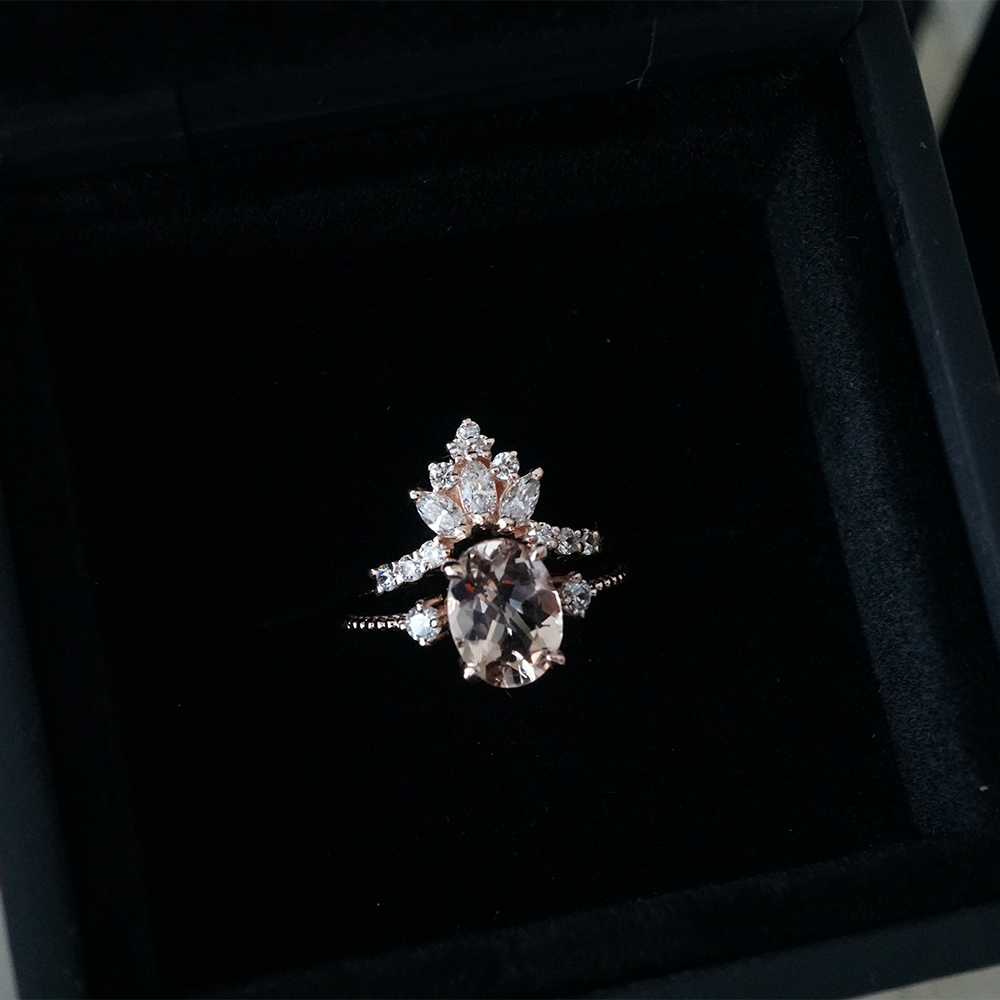 Morganite Peachy Diamond Rose Set in 14K Gold -