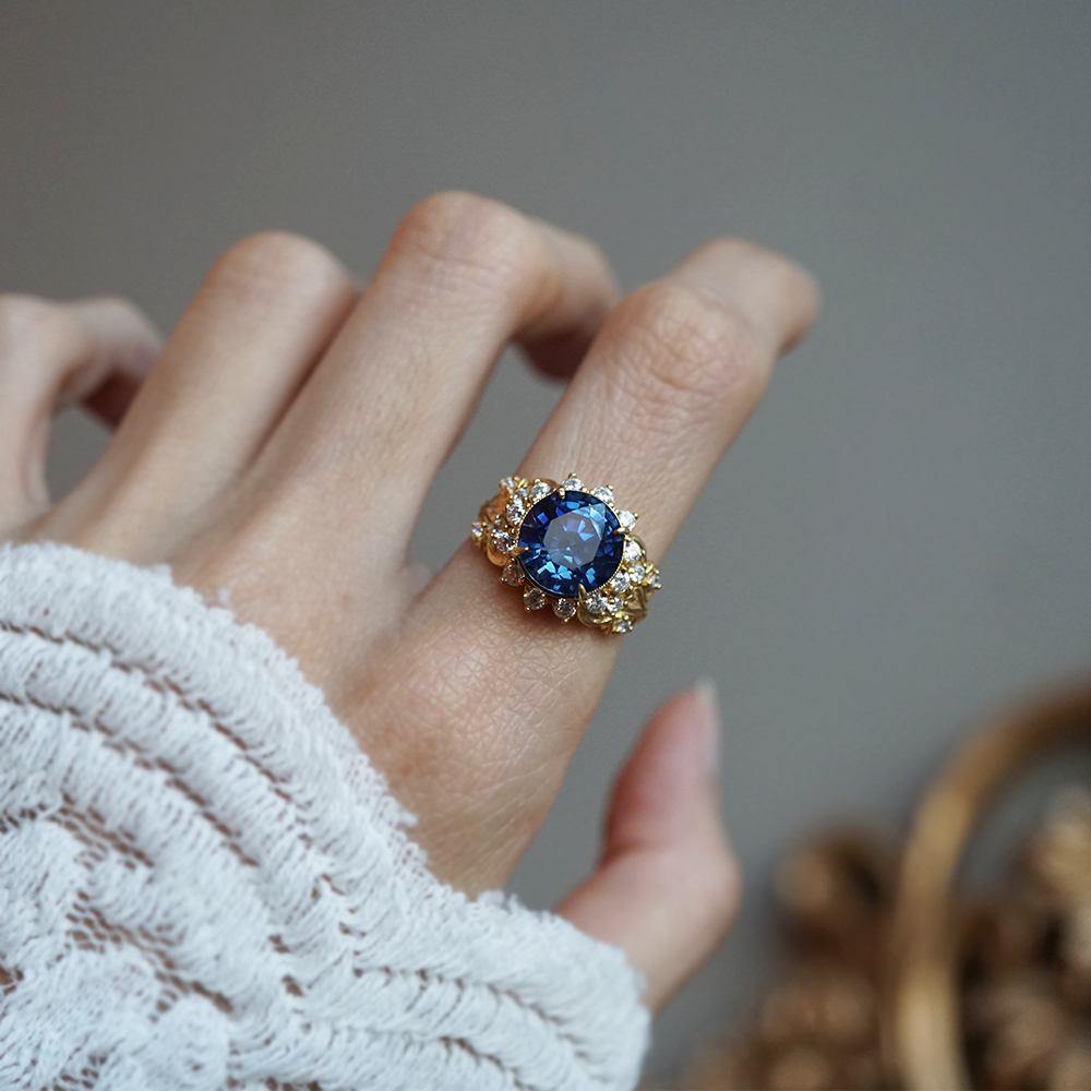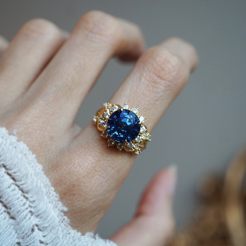 One Of A Kind: Ceylon Blue Sapphire Imperial Diamond Ring in 14K and 18K Gold, 5.17ct