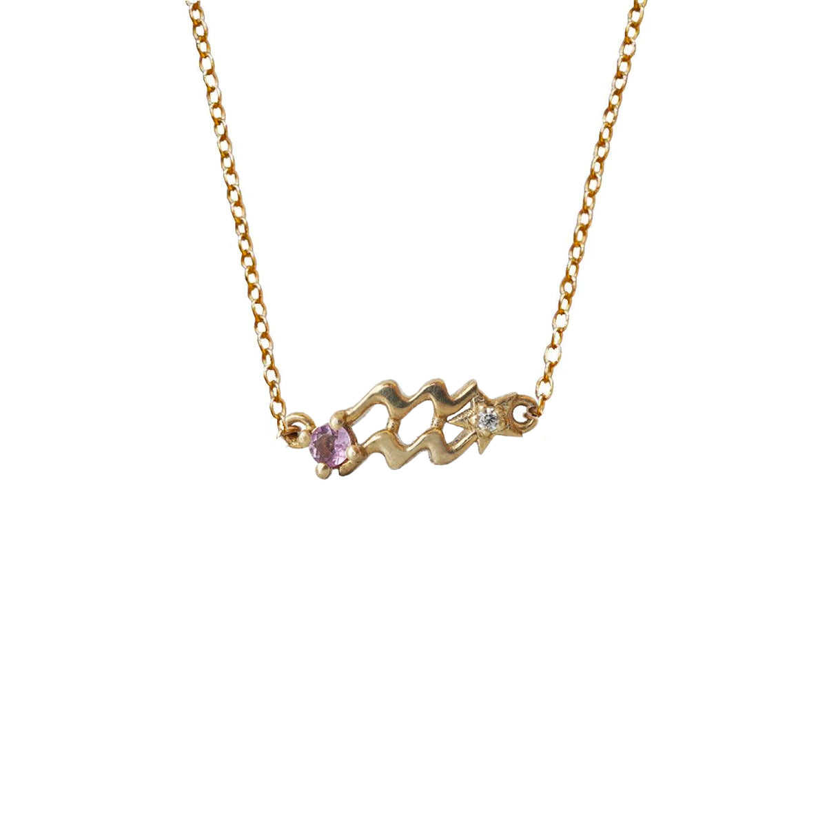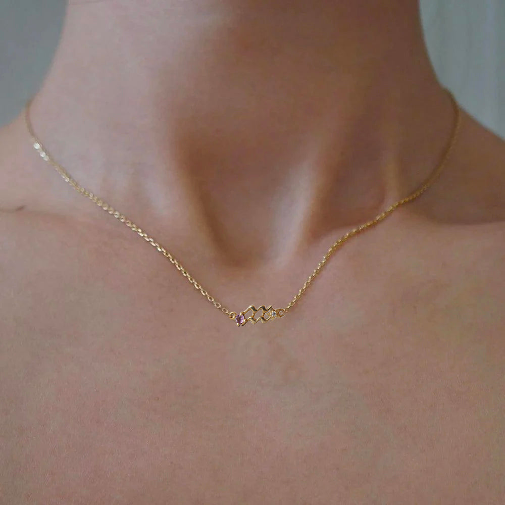 14K Aquarius Horoscope Birthstone Necklace (Amethyst + Garnet)