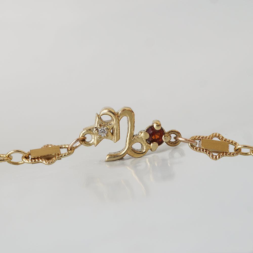 14K Capricorn Horoscope Birthstone Bracelet (Garnet + Blue Topaz)