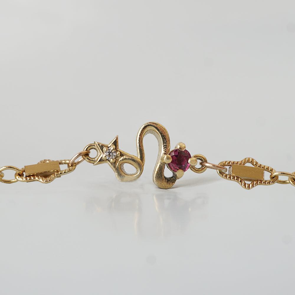 14K Cancer Horoscope Birthstone Bracelet (Pearl + Ruby) -