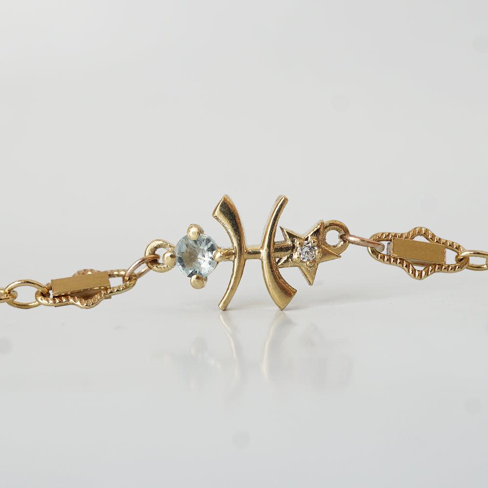 14K Aries Horoscope Birthstone Bracelet (Diamond + Aquamarine) -
