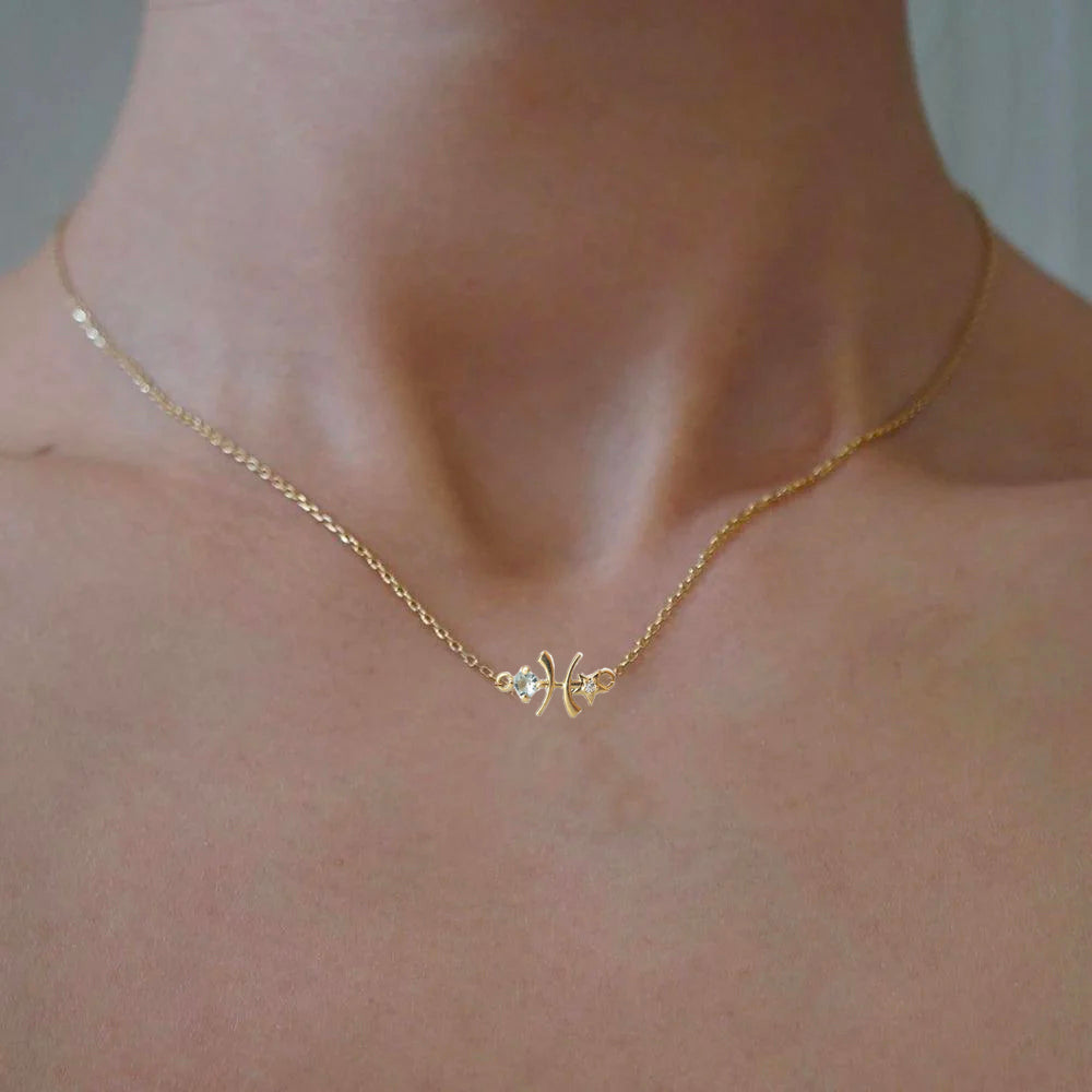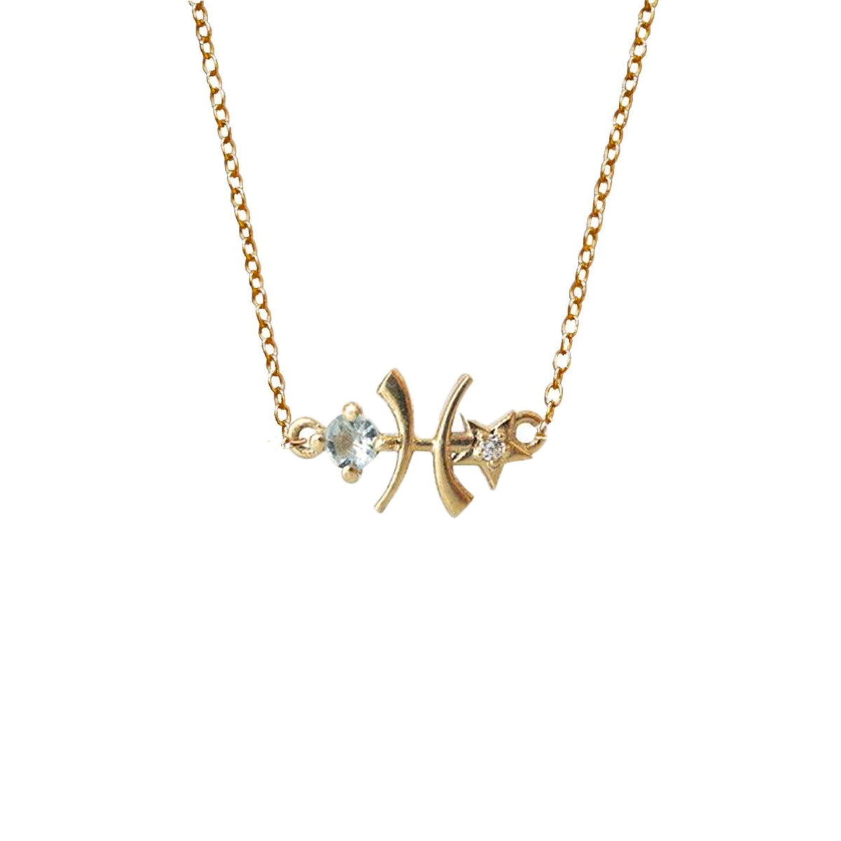 14K Pisces Horoscope Birthstone Necklace (Aquamarine + Amethyst)