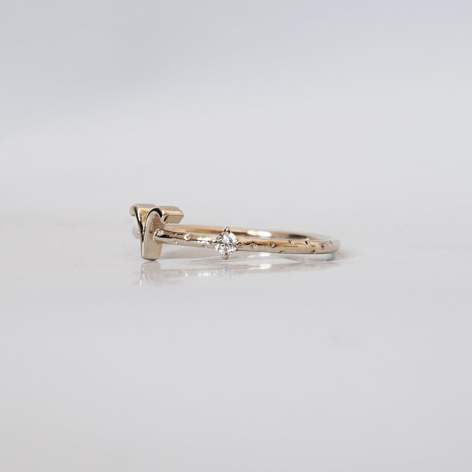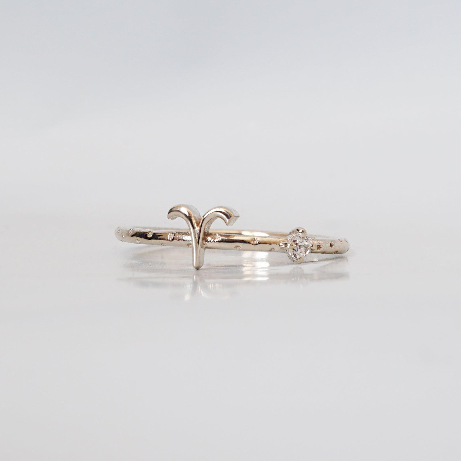14K Aries Horoscope Birthstone Ring (Diamond + Aquamarine) -
