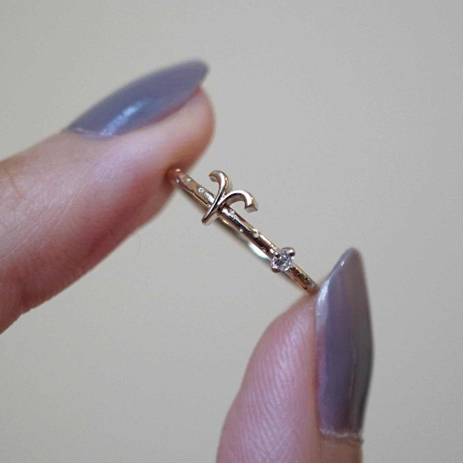 14K Aries Horoscope Birthstone Ring (Diamond + Aquamarine)