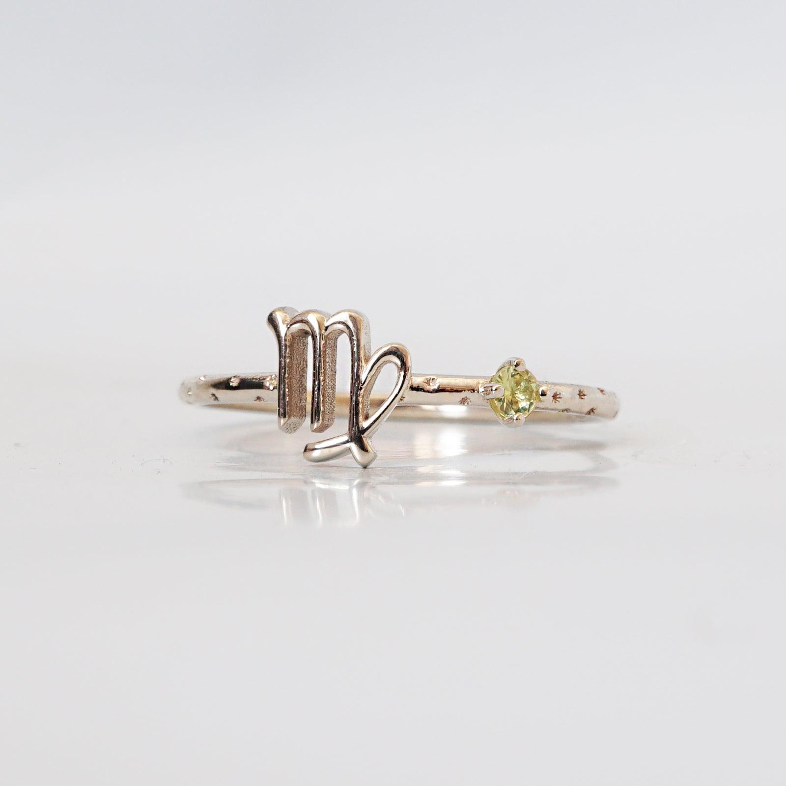 14K Virgo Horoscope Birthstone Ring (Sapphire + Peridot)