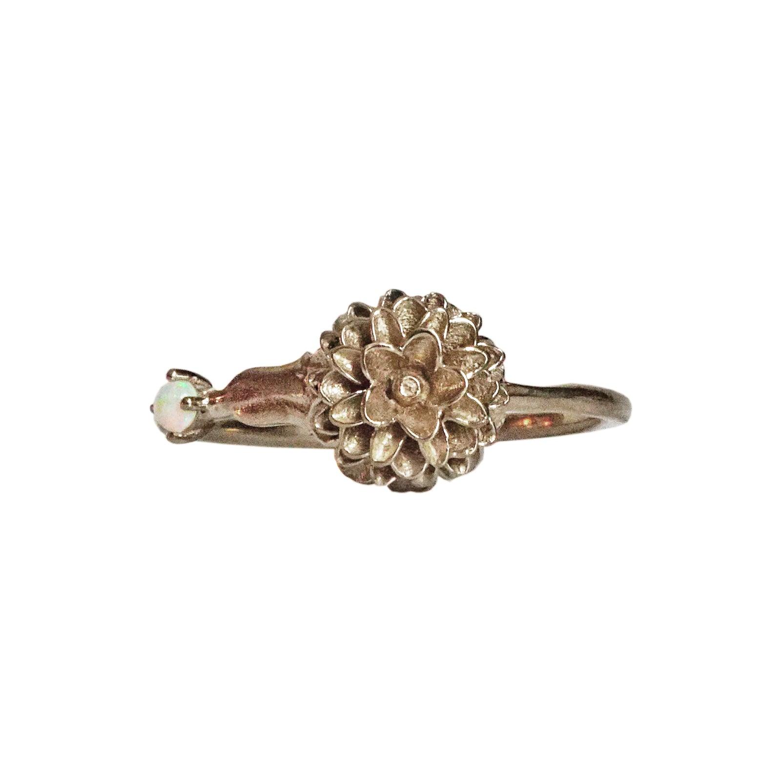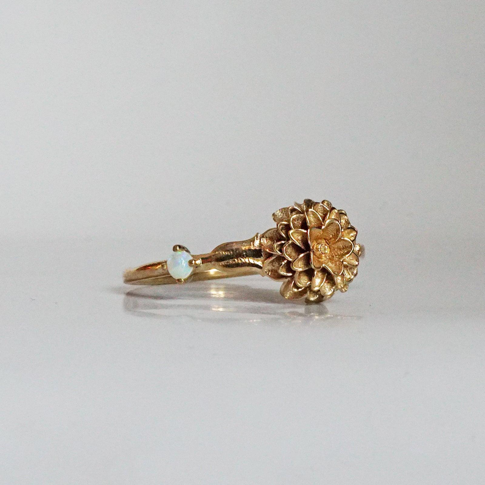 Our special collection of birth flower rings are inspired by the love of wearing something meaningful. Each birth flower is adorned with that month's birthstone. October's birth flower is Marigold and the birthstone is opal.