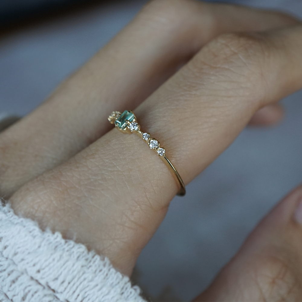 Limited Edition: Dainty Alexandrite Twinkle Baguette Ring in 14K Gold