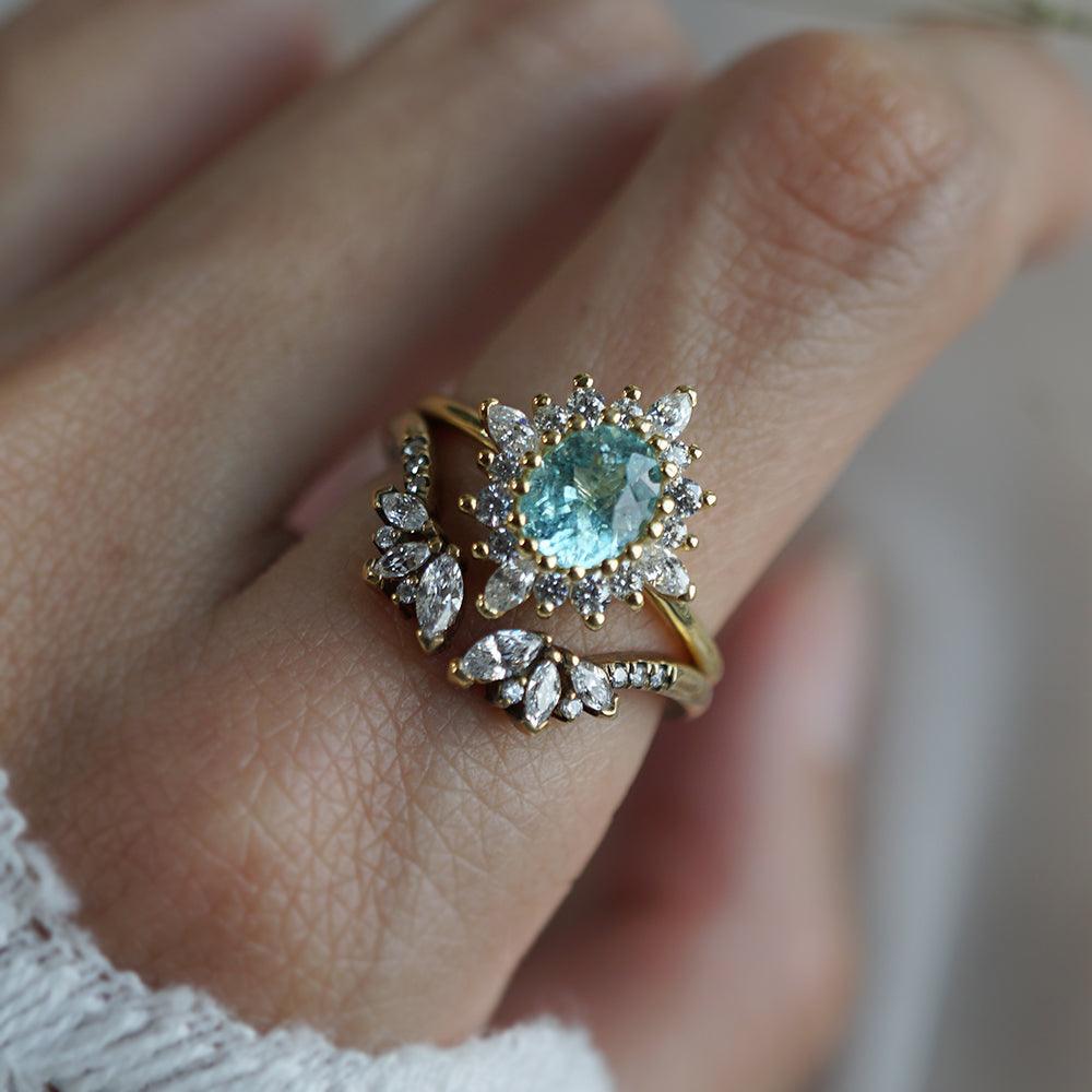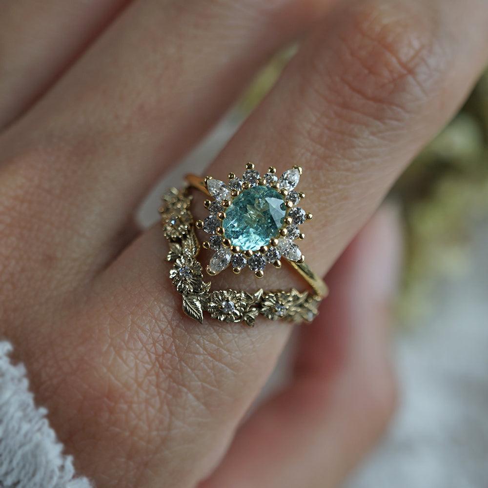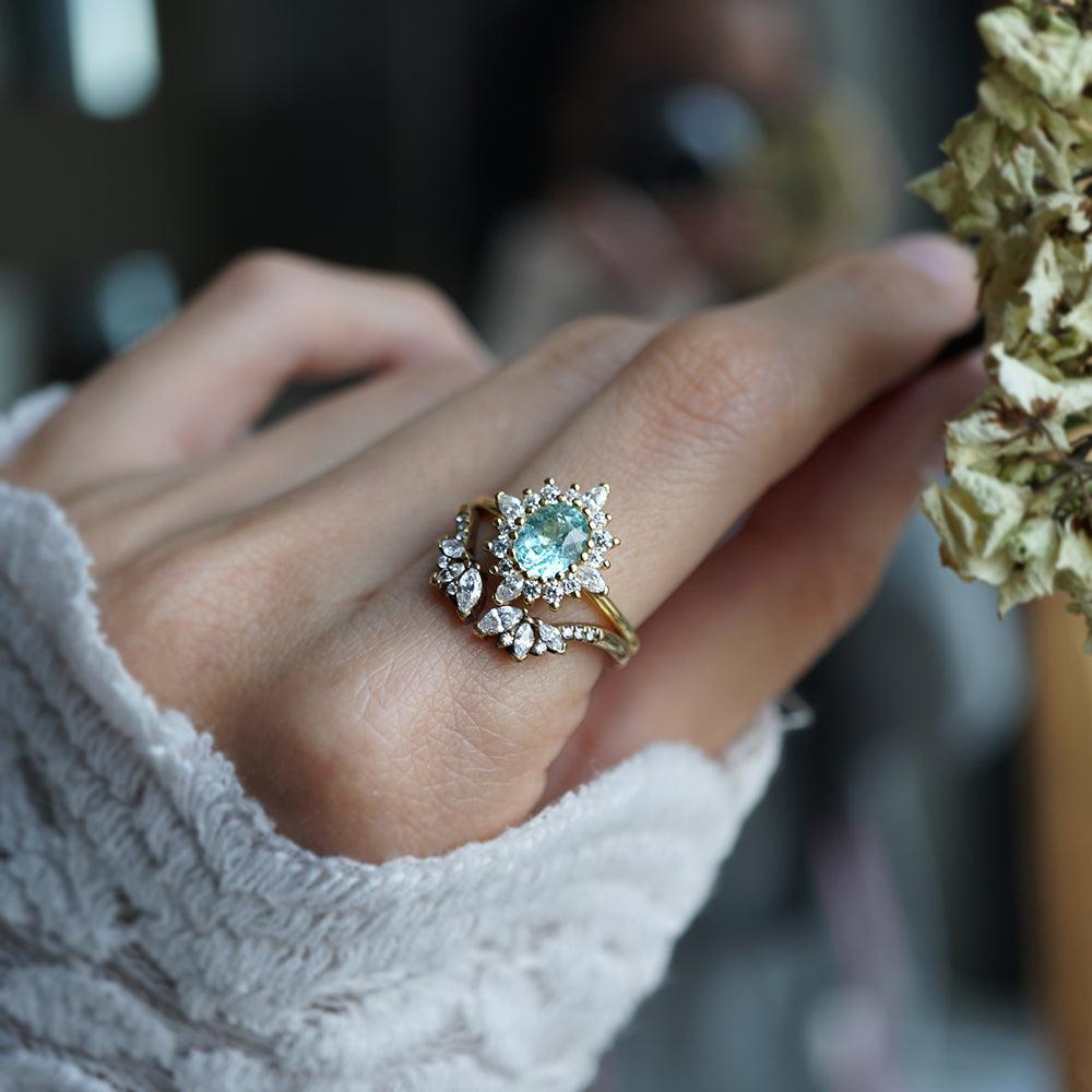 One Of A Kind: Oval Paraiba Tourmaline Mirage Diamond Ring in 14K and 18K Gold