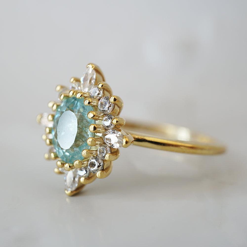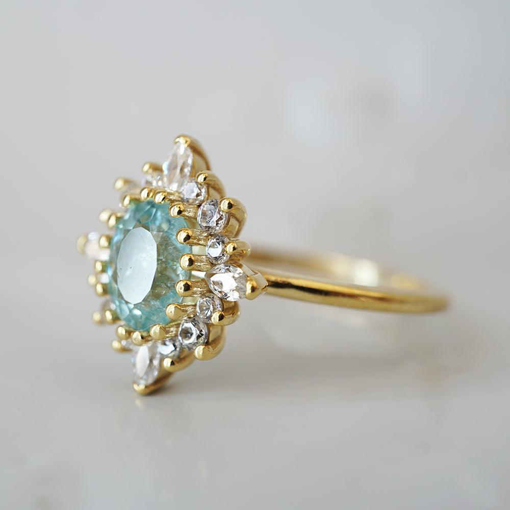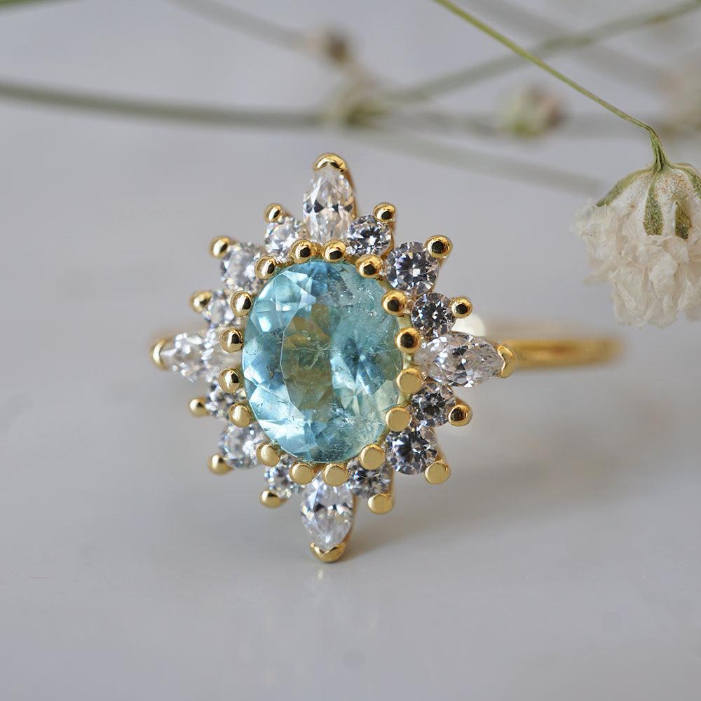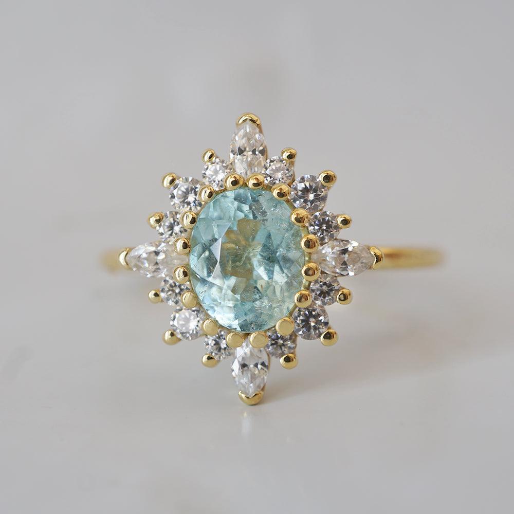 One Of A Kind: Oval Paraiba Tourmaline Mirage Diamond Ring in 14K and 18K Gold