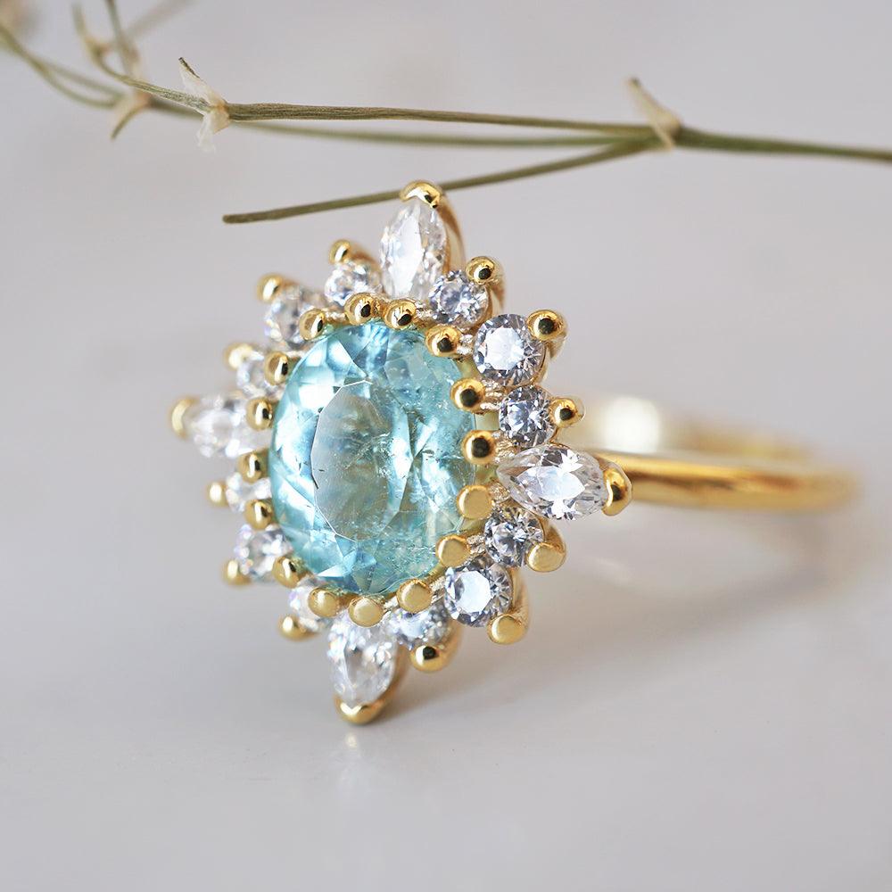 The paraiba tourmaline is one of the most sought-after gems in the world. The Paraiba Tourmaline Mirage Diamond Ring captures that rare magic in its purest form.