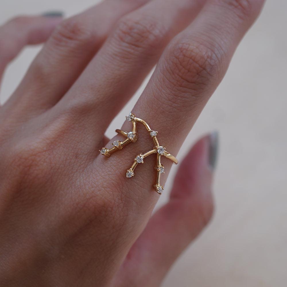Aquarius signs (January 20 - February 18). Aquarius is known to be truthful, curious, affectionate, and imaginative. Our Constellation rings are available in 14K solid gold, with CZ.